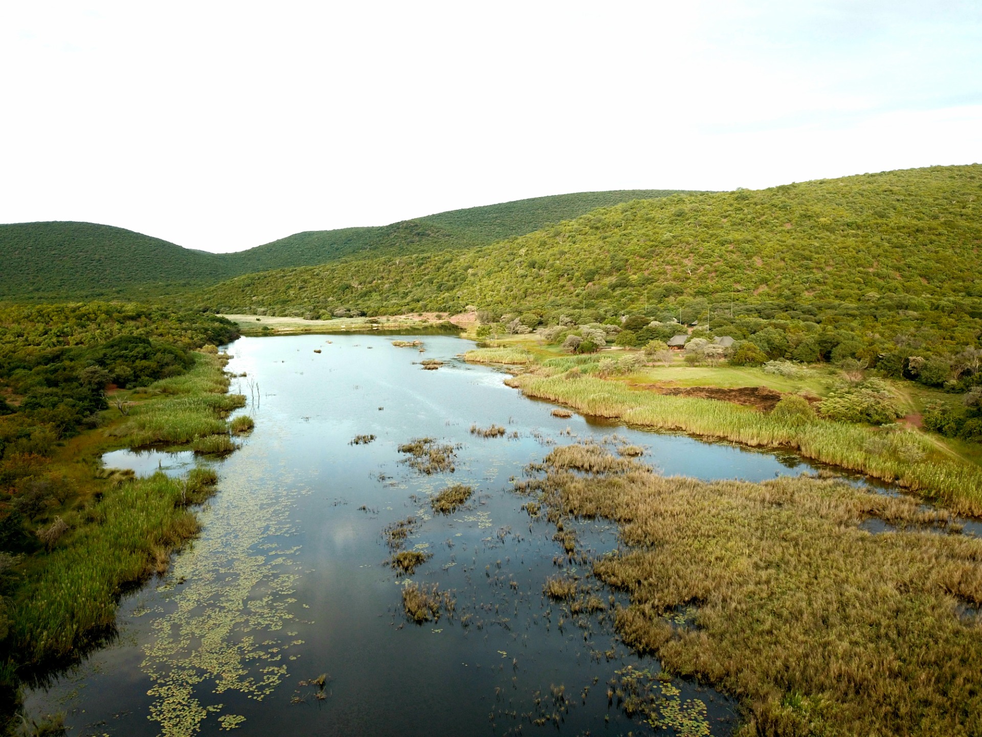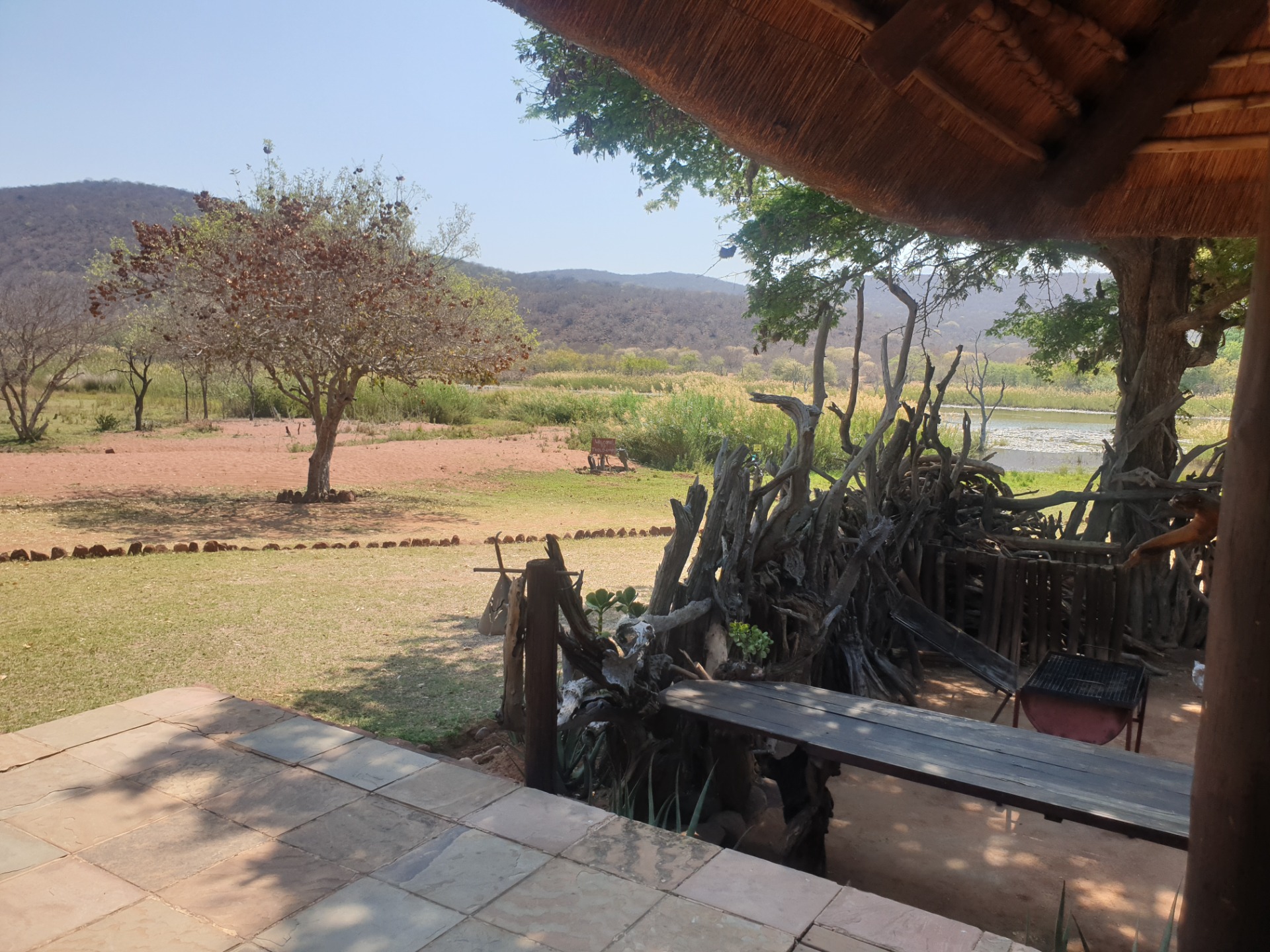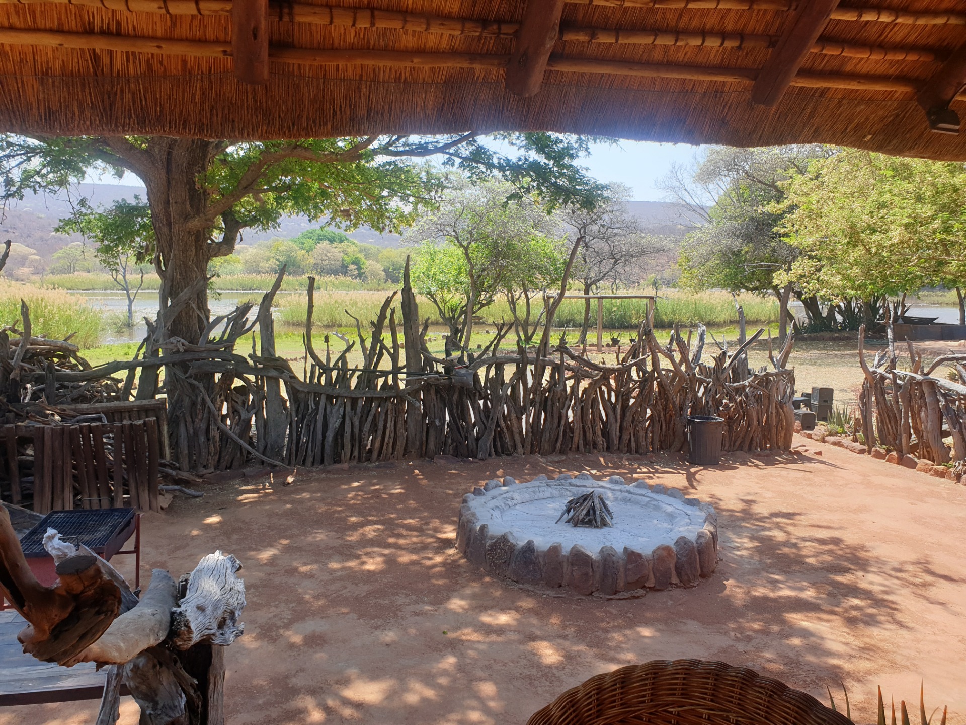 The large veranda overlooks the dam and flows into the braai boma and swimming pool.