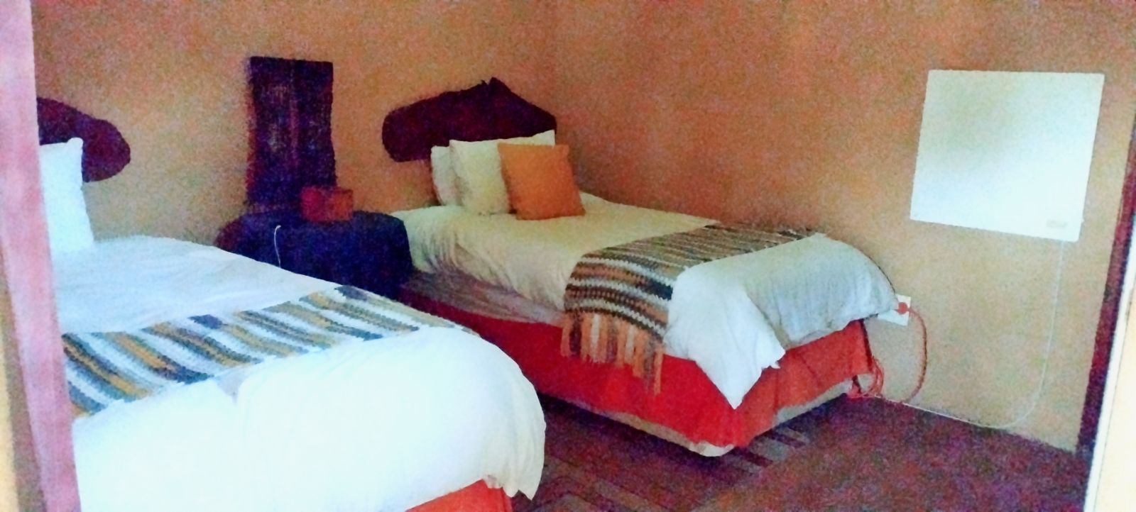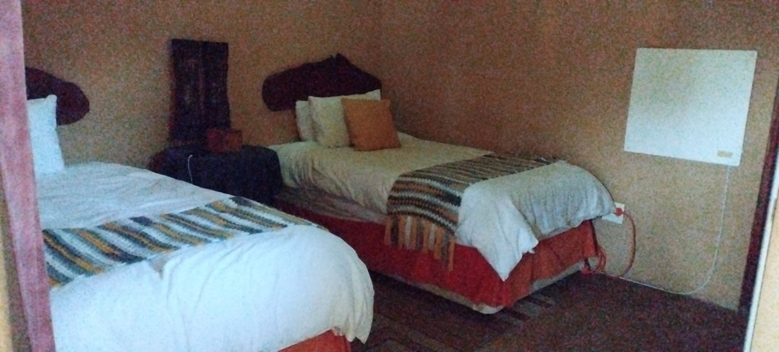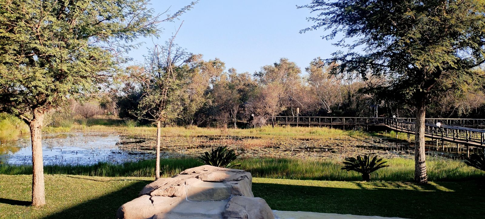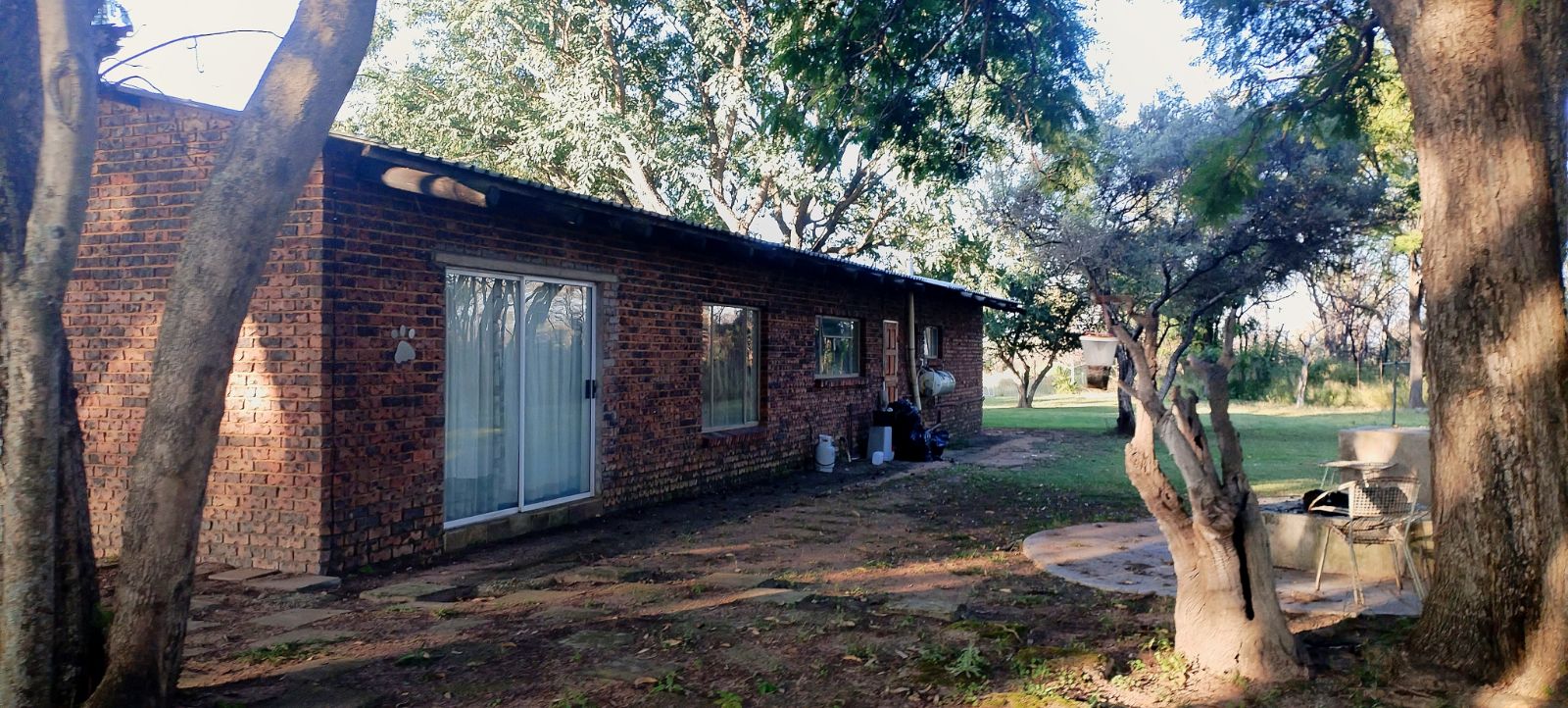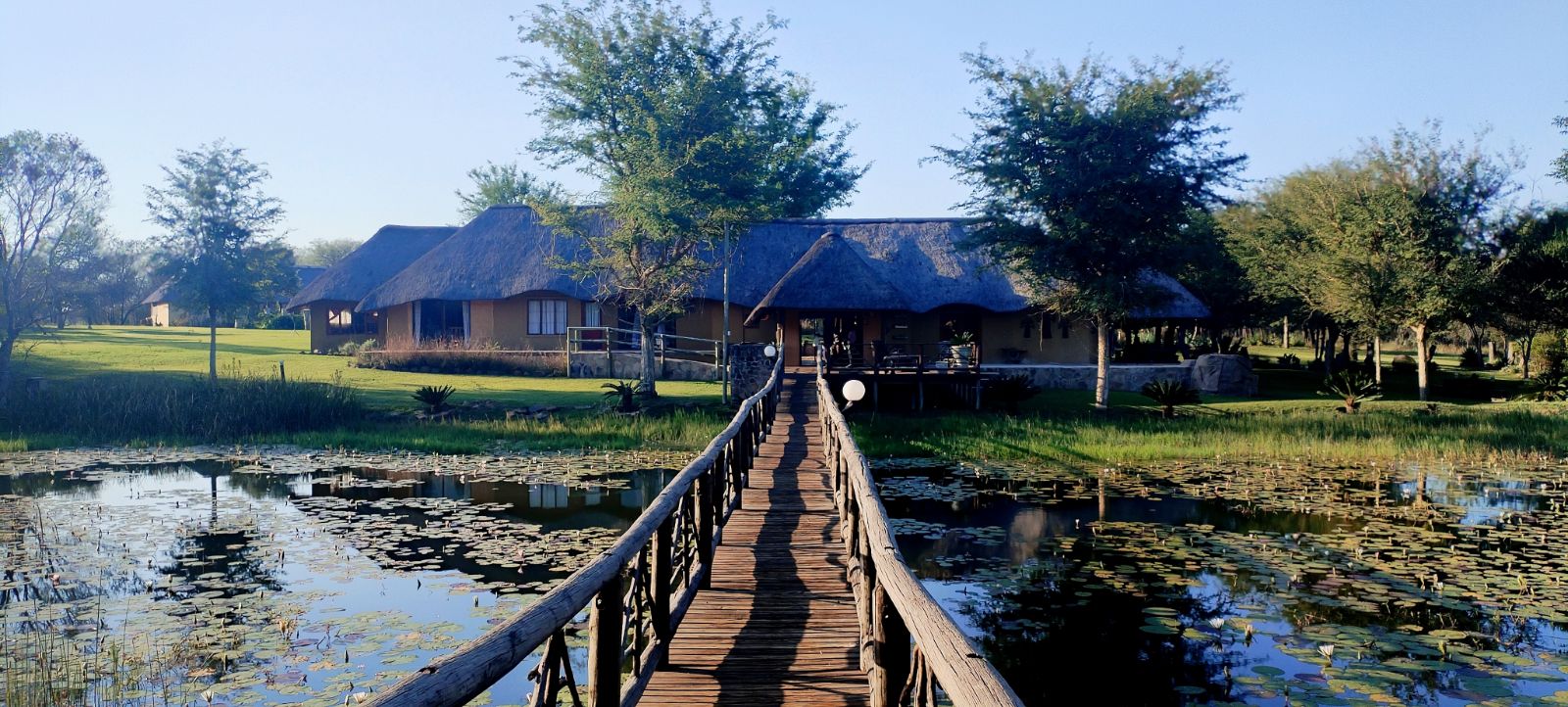 Rustic Finishes: Thatched roofs, wooden doors, cement crete floors & 23cm concrete walls — authentic bush lodge character