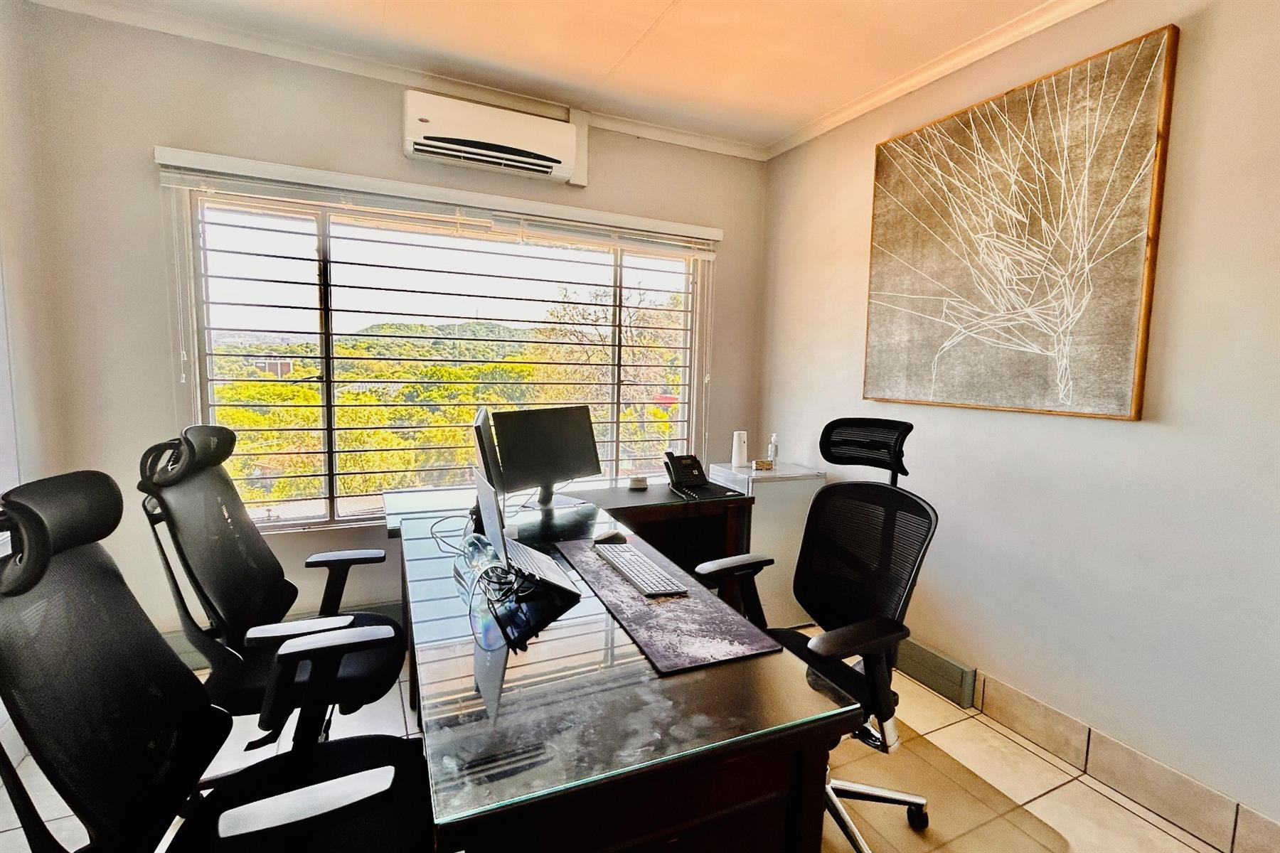 7 air-conditioned offices, including:1 executive office with a private bathroom and coffee station1 double/ extra large office ideal for collaboration4 offices with panoramic views of Pretoria`s Old EastA large open-plan office on the sub-ground level, conveniently located opposite the reception area