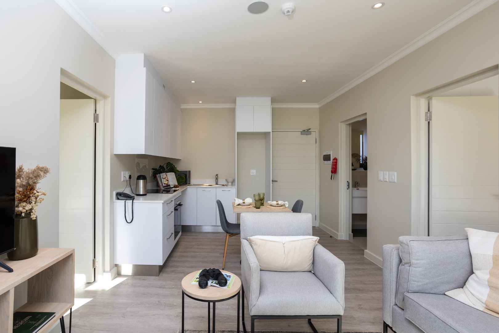 This two-bedroom, two-bathroom suite forms part of the Paarl Rock Block of Luxury Suites and has an open-plan living and dining area and one open parking space.