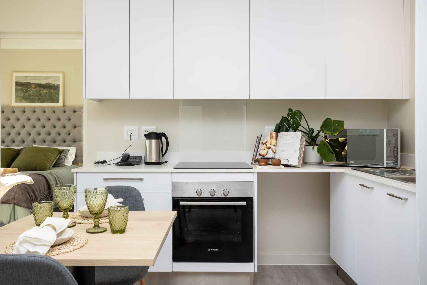 High-end finishes include air conditioning, double-glazed windows, an electric oven and ceramic hob with extractor, LED lights, a high-speed fibre connection, engineered stone countertops, Hans Grohe taps and Geberit sanitaryware.