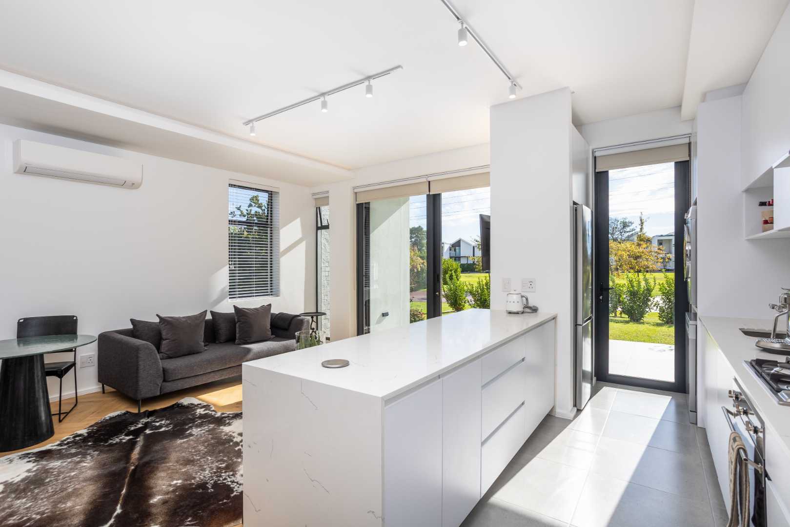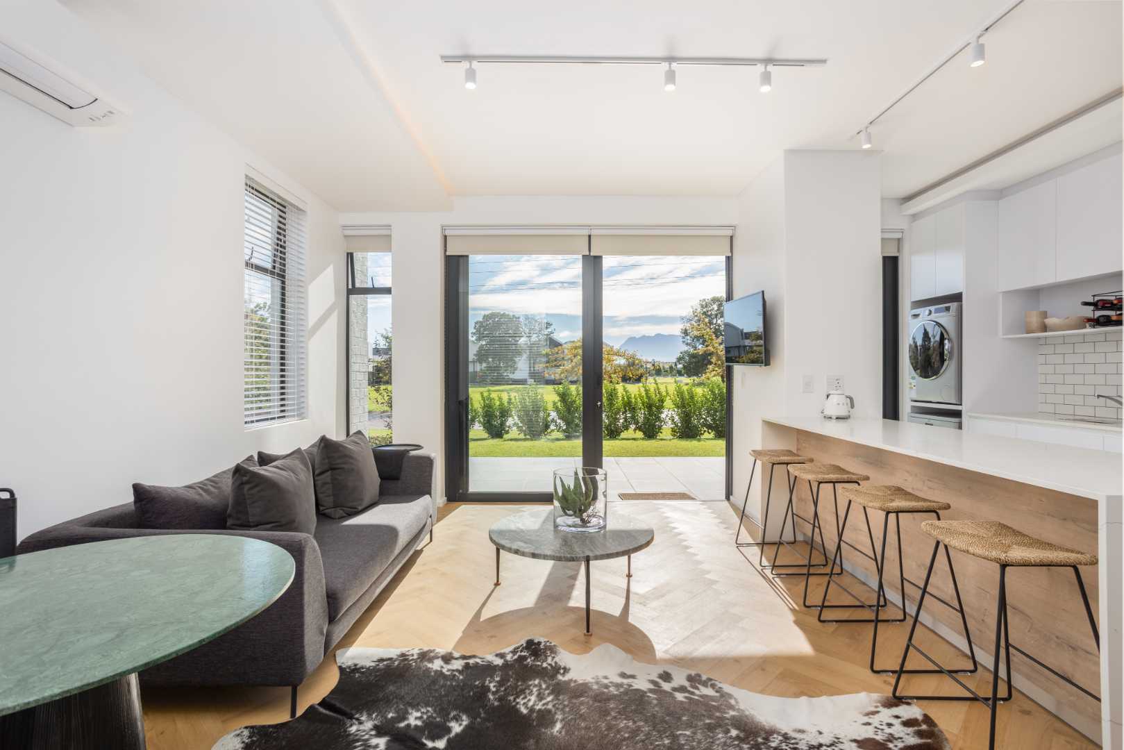 This elegant apartment is the epitome of modern refinement, perfectly positioned in the heart of South Africa's top wellness estate. Designed by award-winning architect Stefan Antoni. The space blends architectural lines with contemporary finishes and a seamless flow of natural light. The polo pad offers an open plan living area and warm wooden floors add a touch of timeless charm, while large windows bathe the interior in golden sunlight, creating an uplifting and serene atmosphere. The kitchen has high-end appliances, including a fridge or freezer, washing machine or dryer and dishwasher.