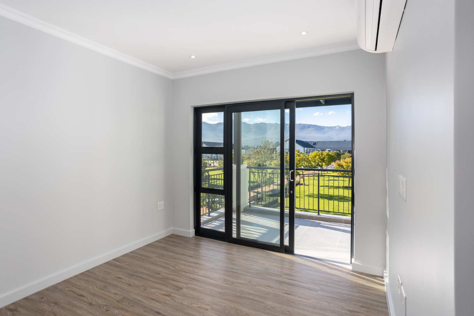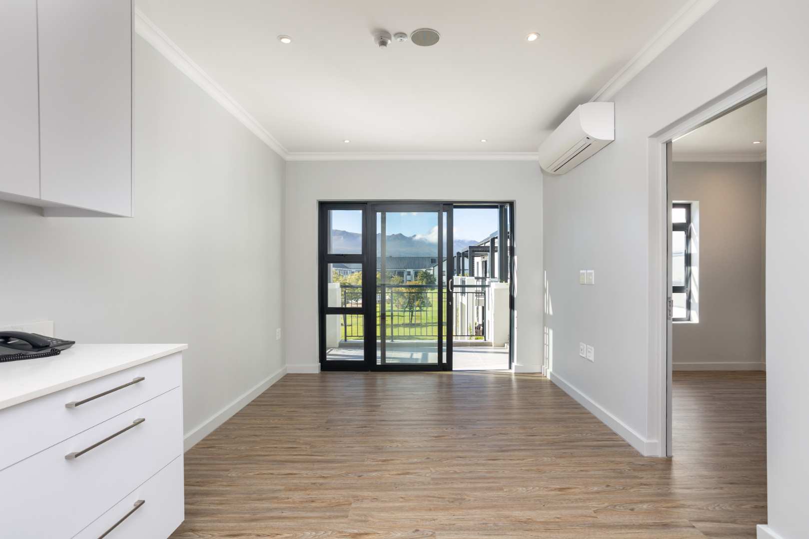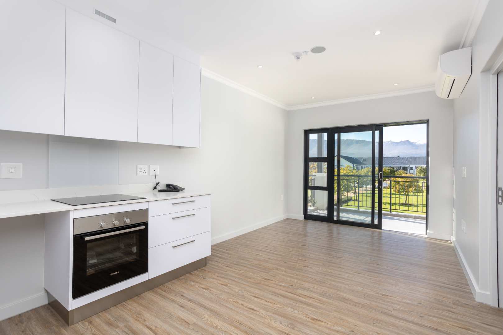 This Val de Vie Evergreen Luxury Suite offers a generously sized bedroom with built-in cupboards, a contemporary bathroom and an open-plan living and dining area. The kitchen is fitted with ample storage, engineered stone countertops, an electric oven, and a ceramic hob with an extractor. Large sliding doors extend to a covered patio or balcony, ideal for relaxed days spent with friends and family.