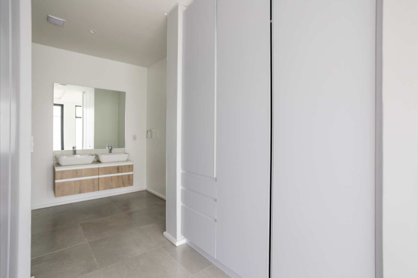 Both bedrooms feature built-in cupboards and en-suite bathrooms, with the main bedroom offering a spacious dressing area and contemporary bathroom finishes. Designed by renowned architect Stefan Antoni, Polo Village combines clean architectural lines with elegant interiors, creating apartments that feel both sophisticated and comfortable.