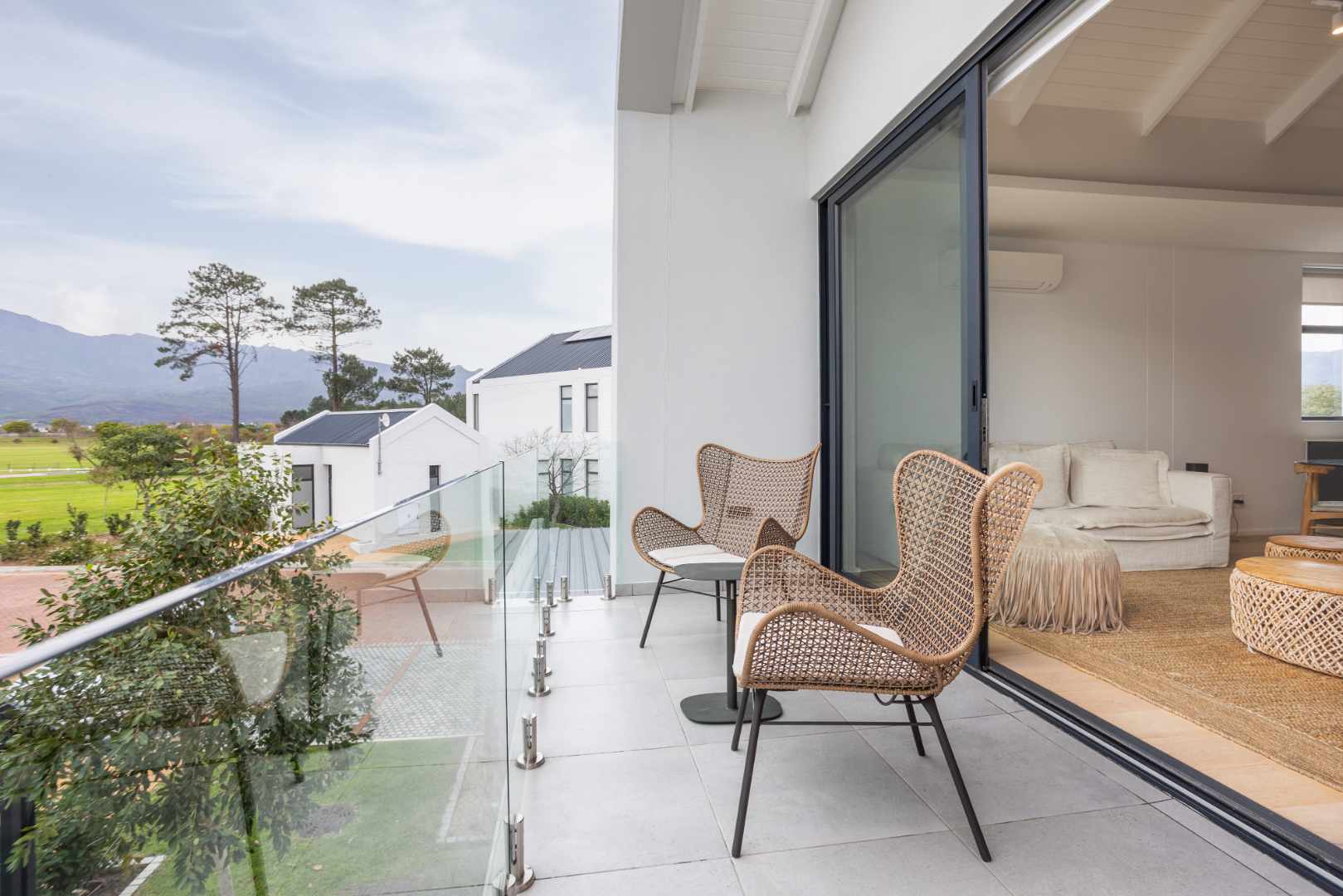 This top-floor apartment in Polo Village Apartments II offers uninterrupted views of the polo field and invites you to experience the distinctive lifestyle of Val de Vie Estate. Designed by Stefan Antoni, this apartment features a spacious double-volume living area with elegant wooden flooring, offering a seamless blend of luxury and comfort.