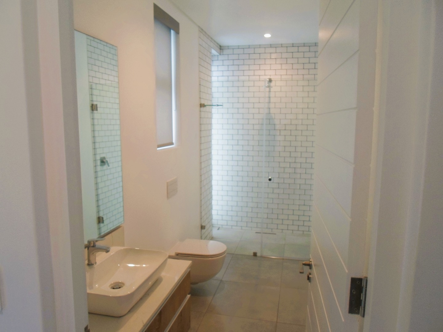 This haven of comfort boasts air conditioning in both the lounge and bedroom for year-round temperature control. Never be inconvenienced by power outages – a reliable backup system keeps the lights on. The beautiful modern bathroom features a shower, toilet, and basin, providing a spa-like experience.