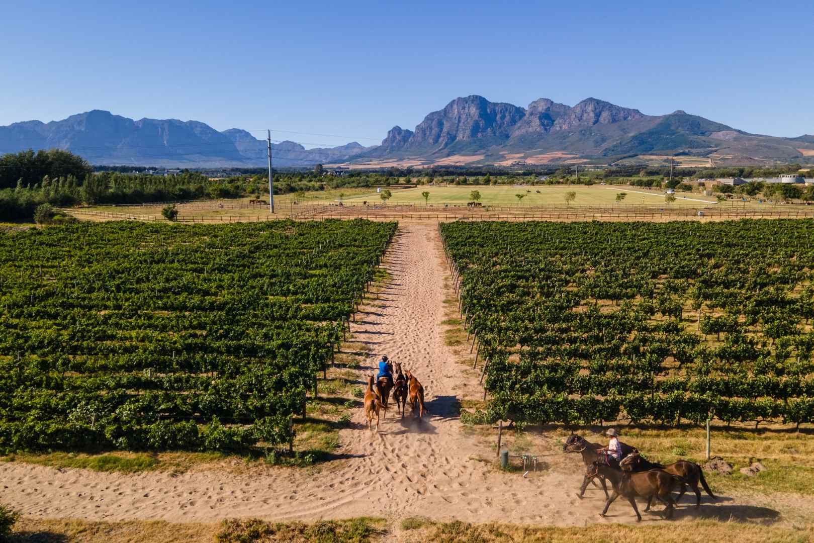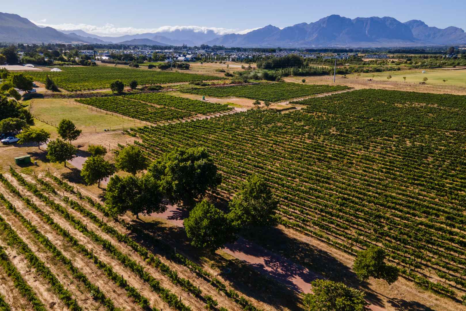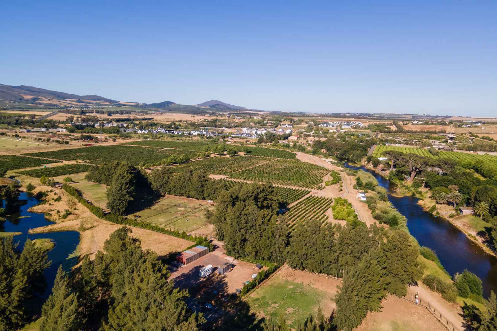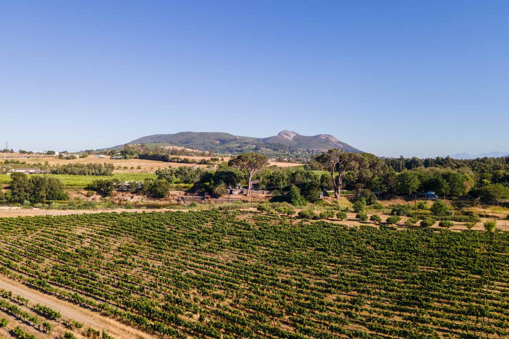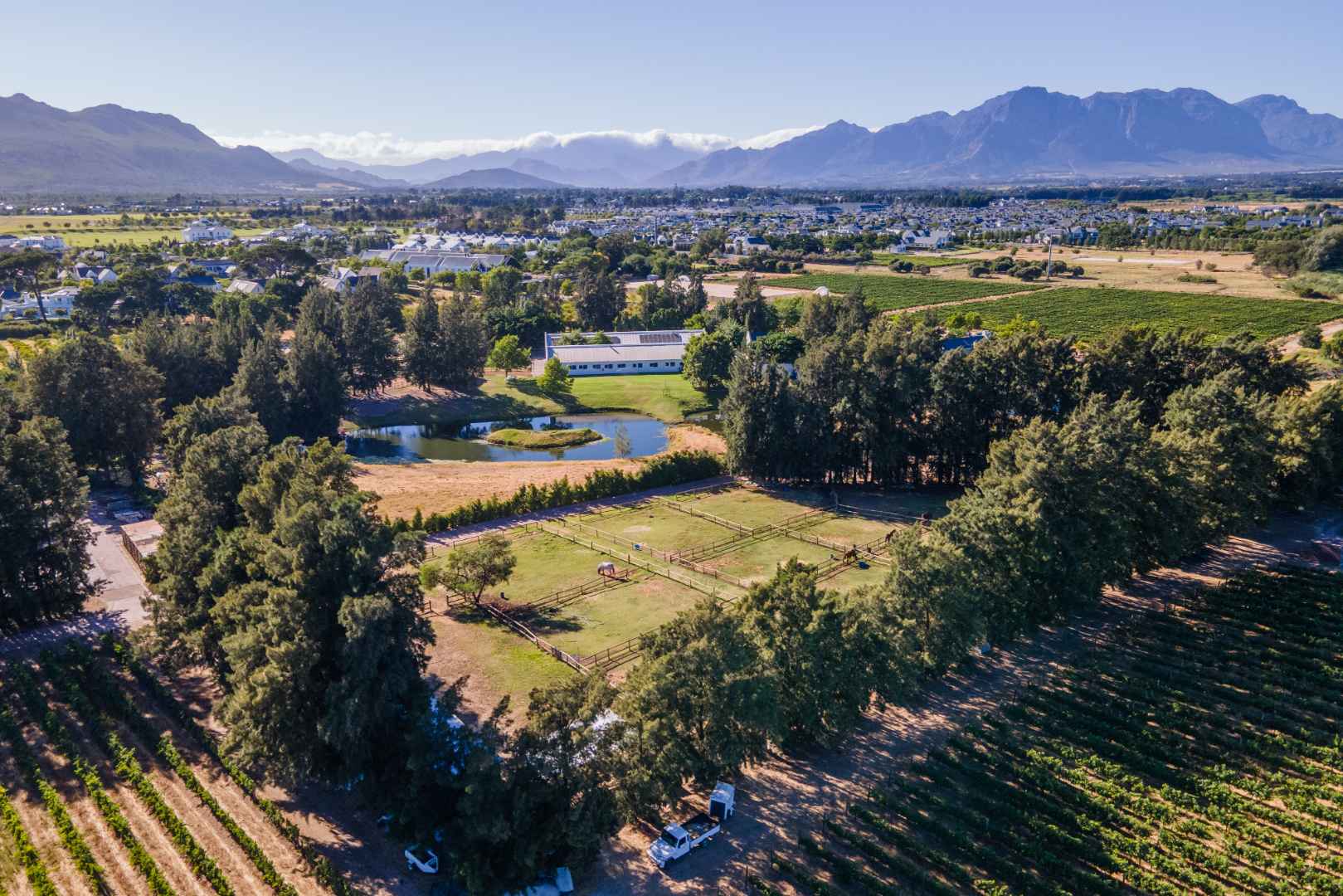 The property offers captivating views of Simonsberg, Paarl Rock, and the Franschhoek Mountains, with vineyards, open fields and the meandering Berg River creating an authentic countryside escape.
