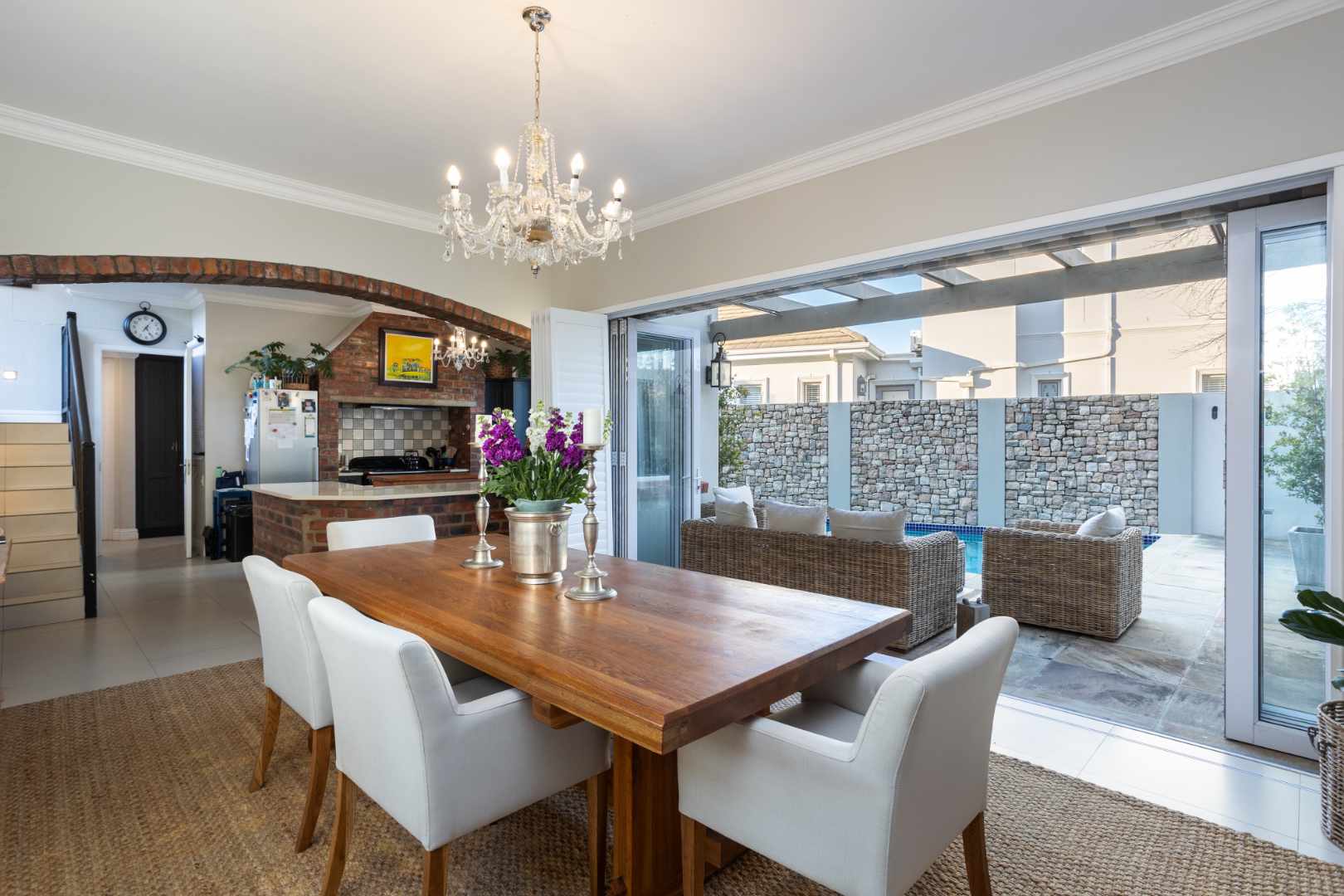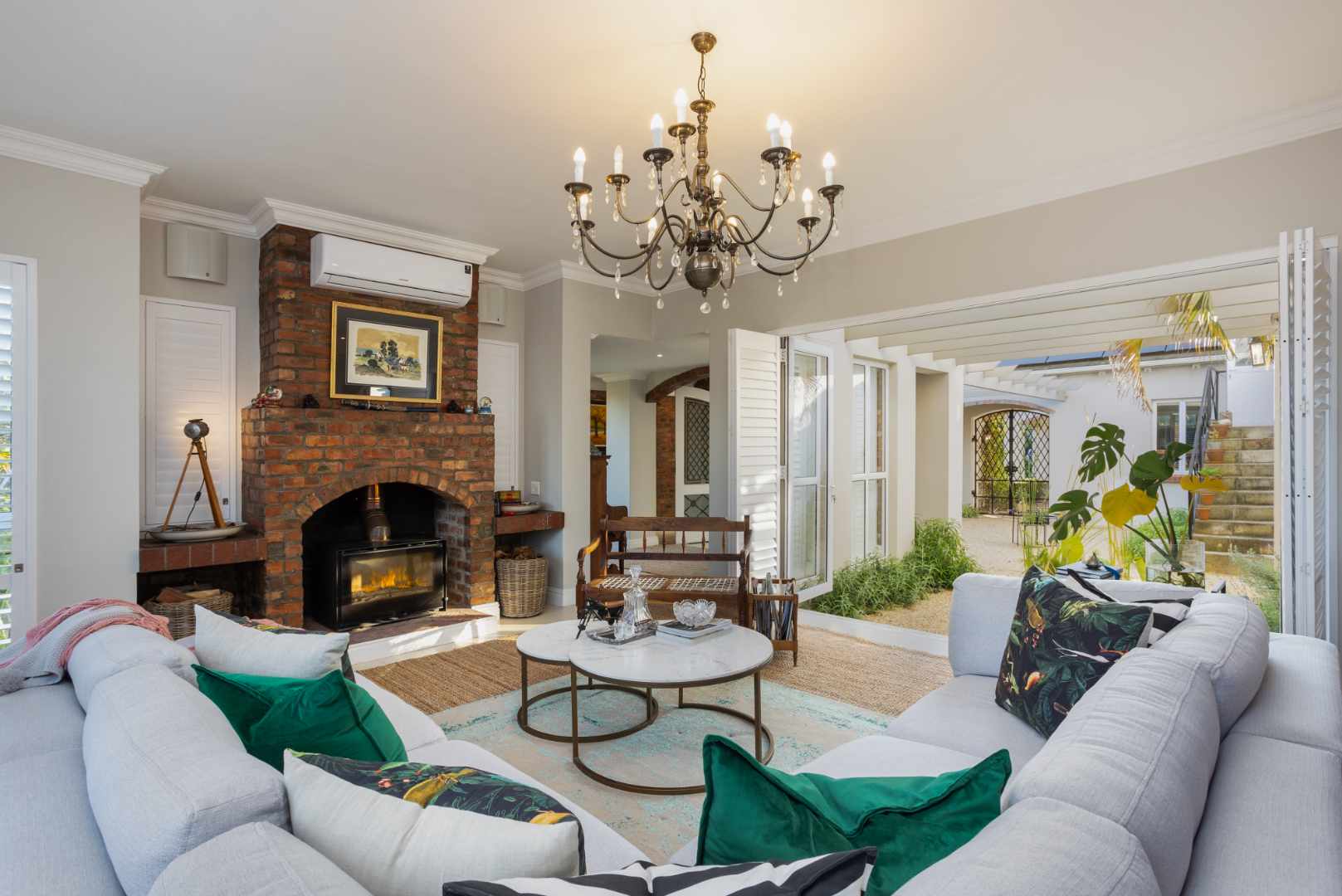 Upon entering, you are greeted by three separate living spaces. Natural light fills the rooms through large windows and strategically placed double doors, creating a warm and open atmosphere. The heart of this home is the cosy, inviting ambience of a traditional Italian kitchen complemented by modern appliances discreetly integrated to maintain that old-world charm.