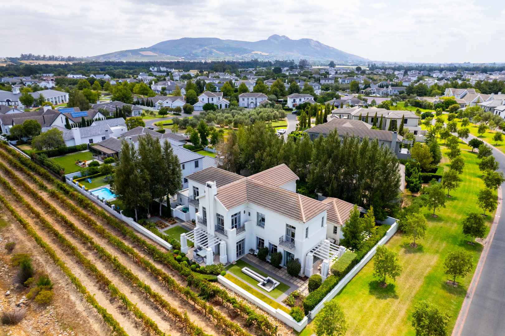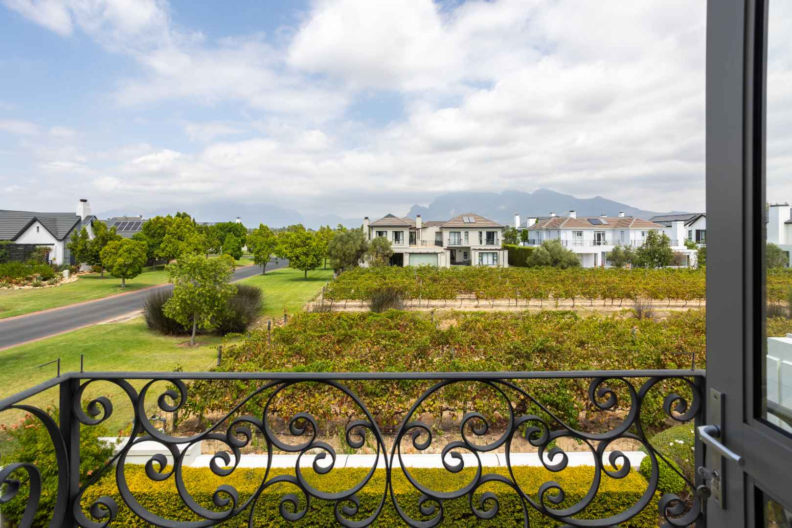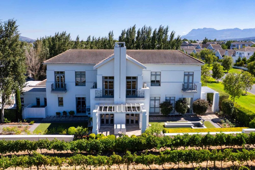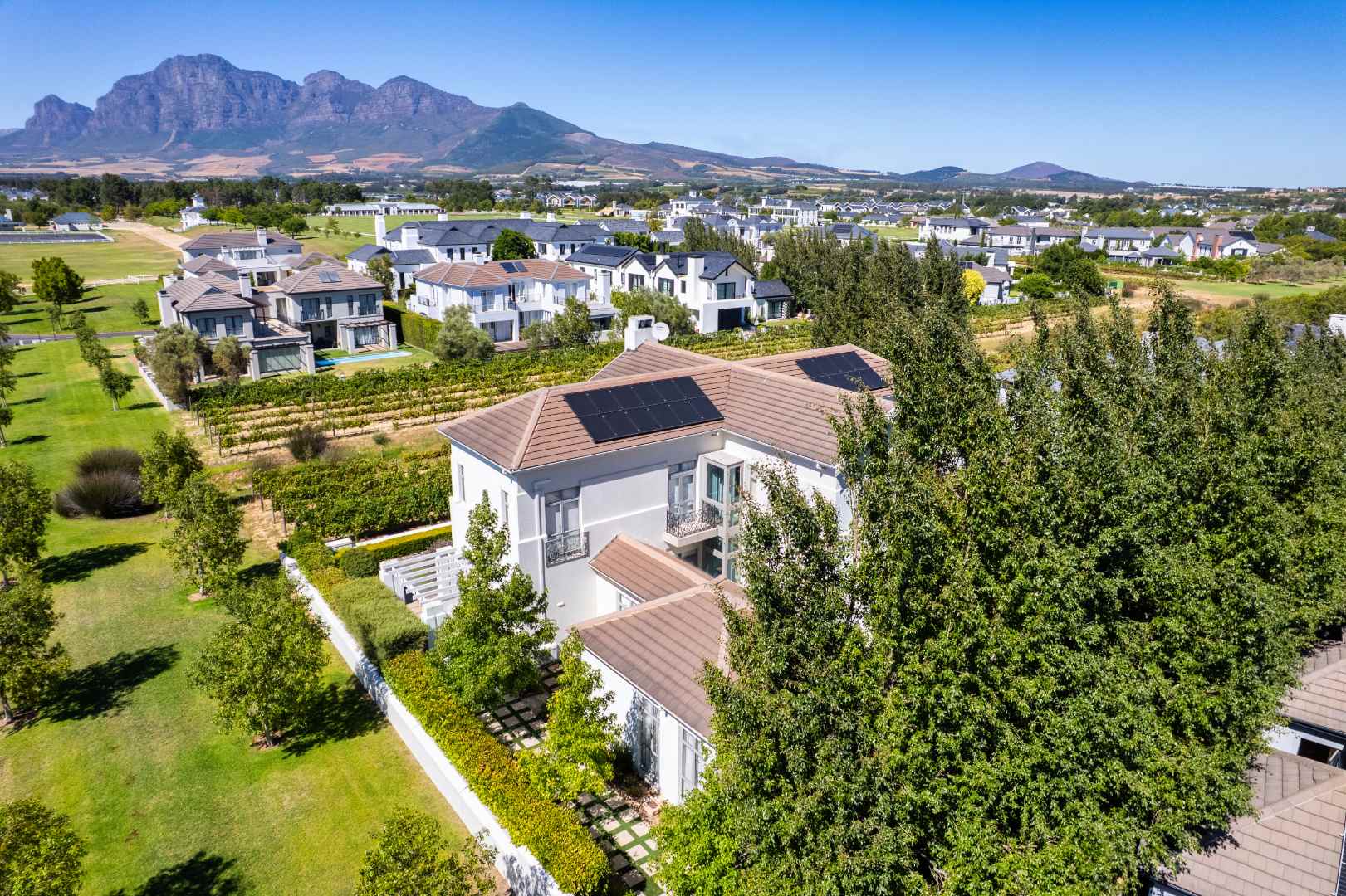 Set in a highly desirable neighbourhood on Val de Vie Estate, within walking distance of the Polo Pavilion by Back’s and the Val de Vie Sports & Leisure Centre, this exceptional home offers refined living on 1081 m2 of landscaped grounds, boasting uninterrupted views of the vineyard greenbelt and surrounding mountains. With 475.5 m2 of elegant interiors and premium finishes throughout, this home exemplifies exceptional quality and design.
