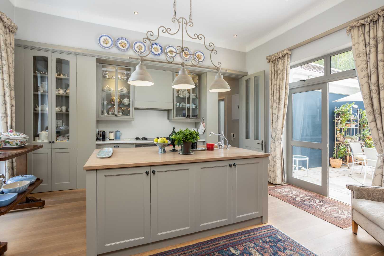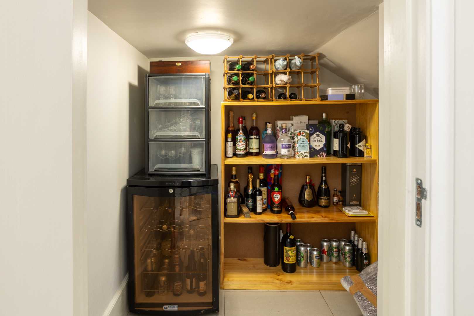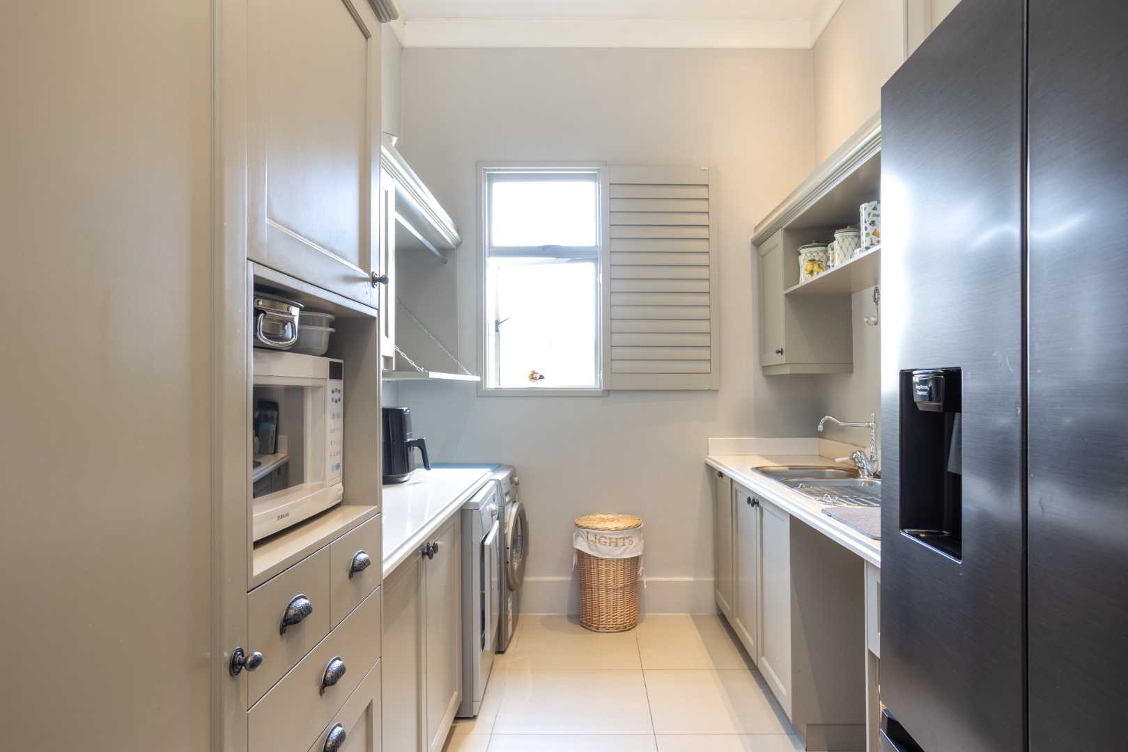 The kitchen features a large scullery and laundry room, designed for convenience and efficient use of space. A built-in indoor braai offers year-round entertainment, set against a warm and sociable atmosphere.