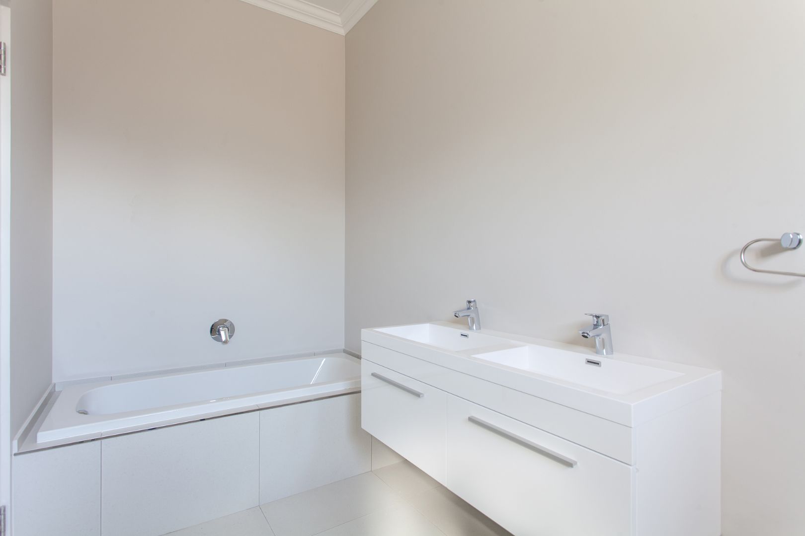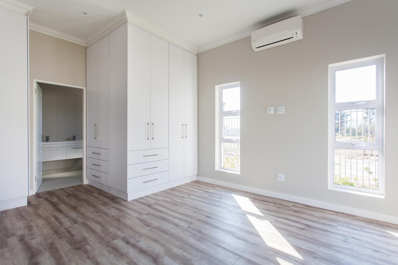 The three bedrooms are light and functional, with built-in cupboards. The main bedroom features an en-suite bathroom, and all bathrooms include simple, clean finishes. The double garage offers direct access to the home.