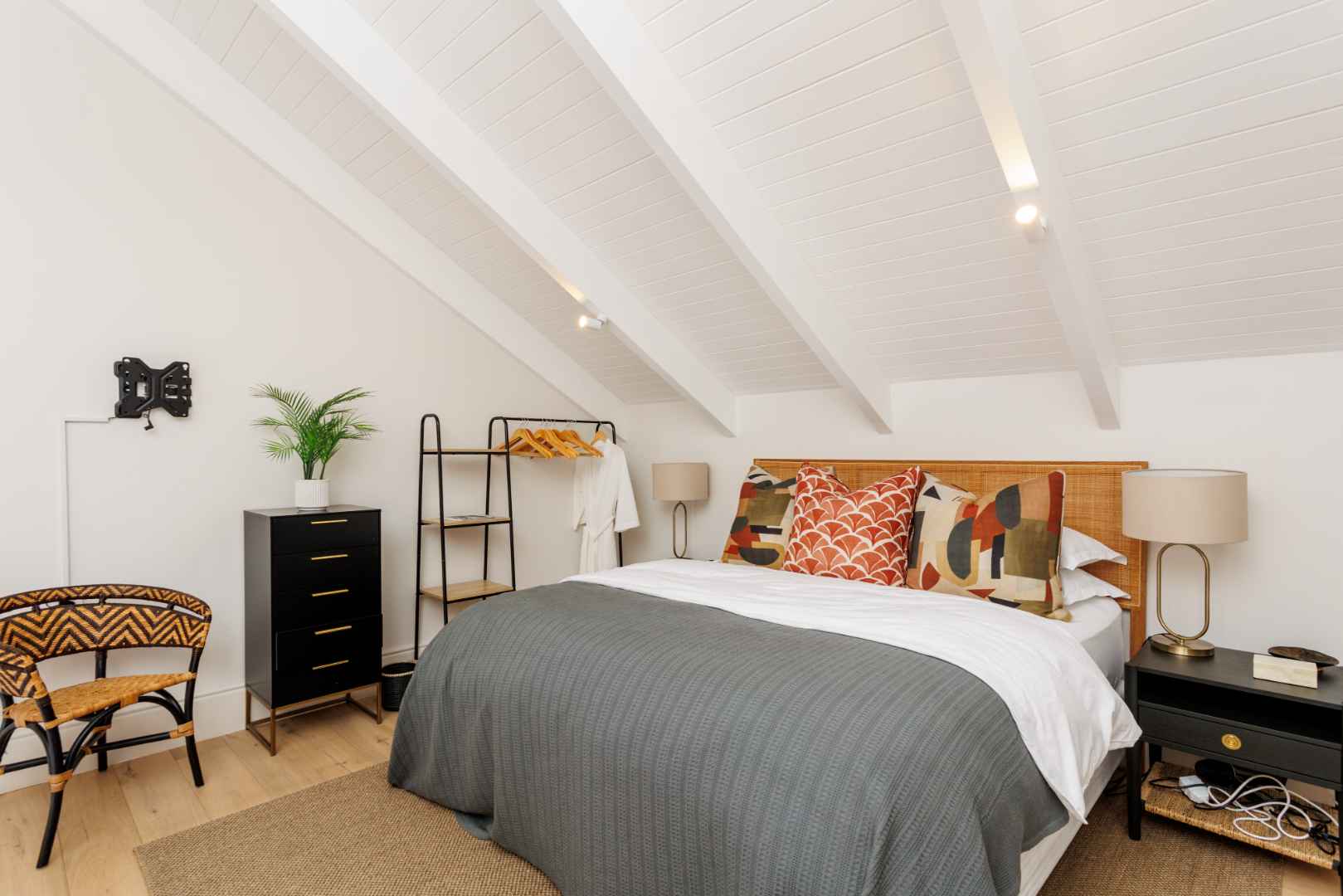 Within the landscaped garden, a self-contained two-bedroom flatlet with a lounge and a kitchenette offers independent accommodation, while a loft-style apartment above the garages provides additional living convenience.