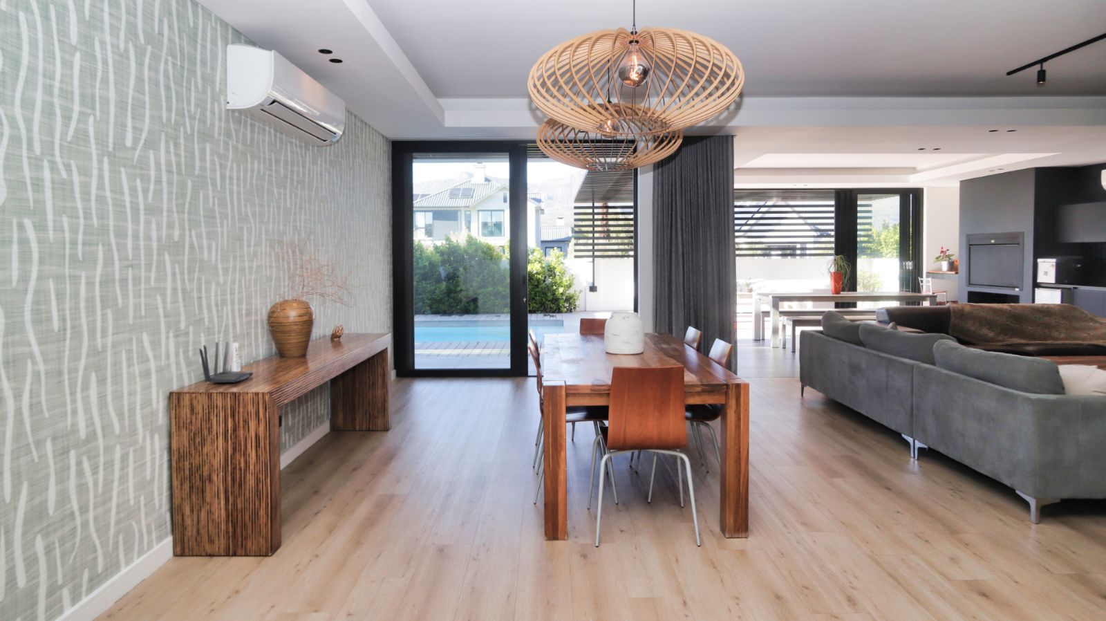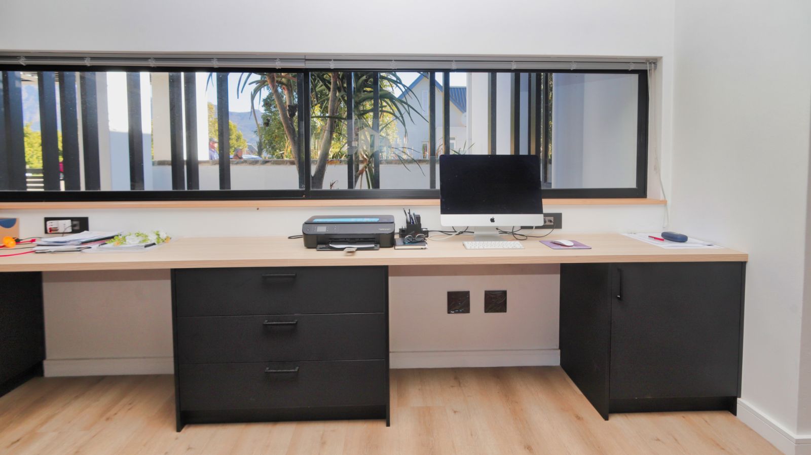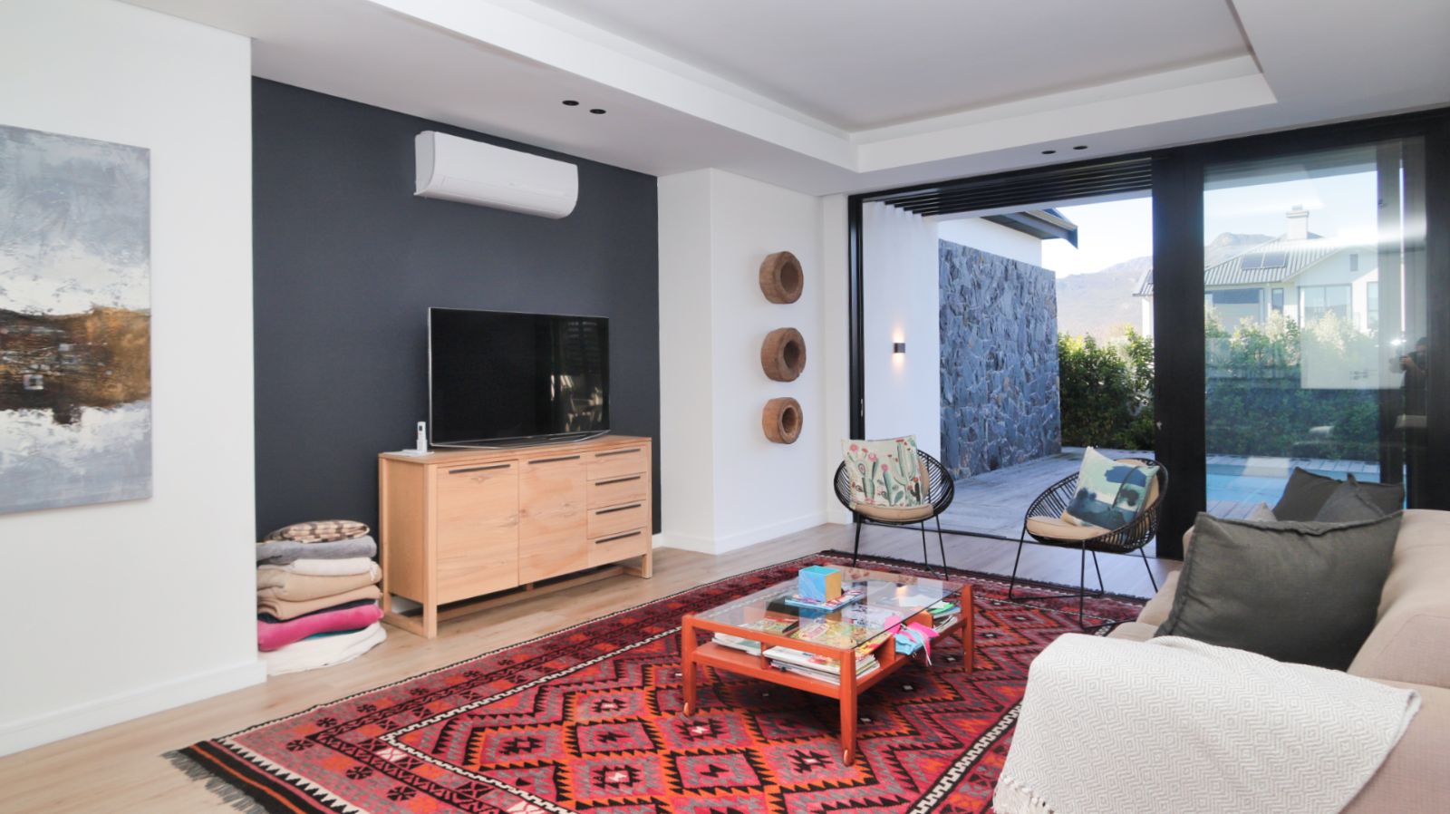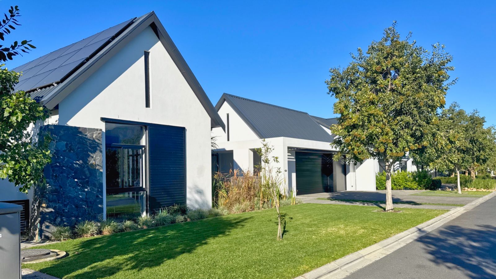 Set against the backdrop of the majestic Cape Winelands, the low-maintenance garden enhances the clean architectural lines of the home, while the newly built design ensures modern convenience and timeless elegance.