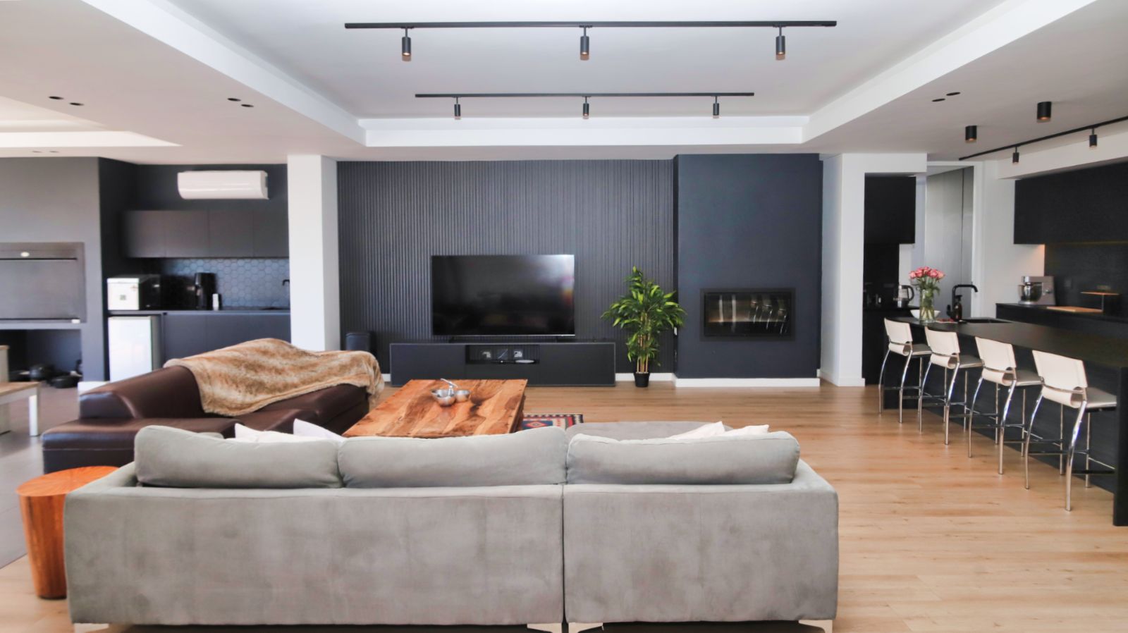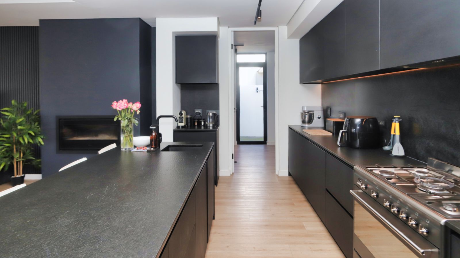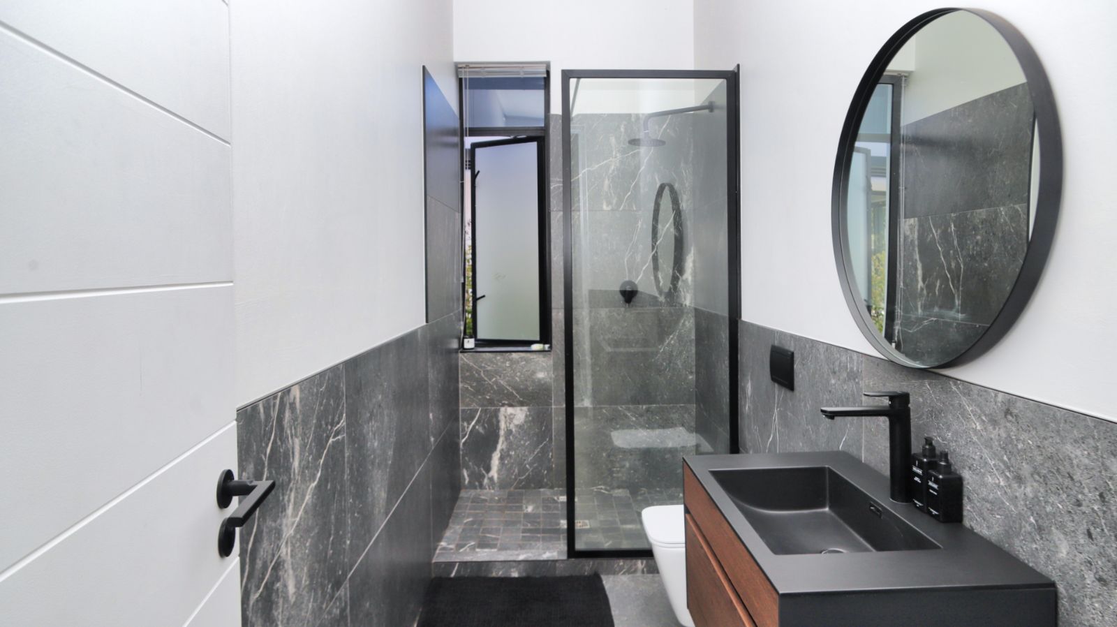 Set against the backdrop of the majestic Cape Winelands, the low-maintenance garden enhances the clean architectural lines of the home, while the newly built design ensures modern convenience and timeless elegance.