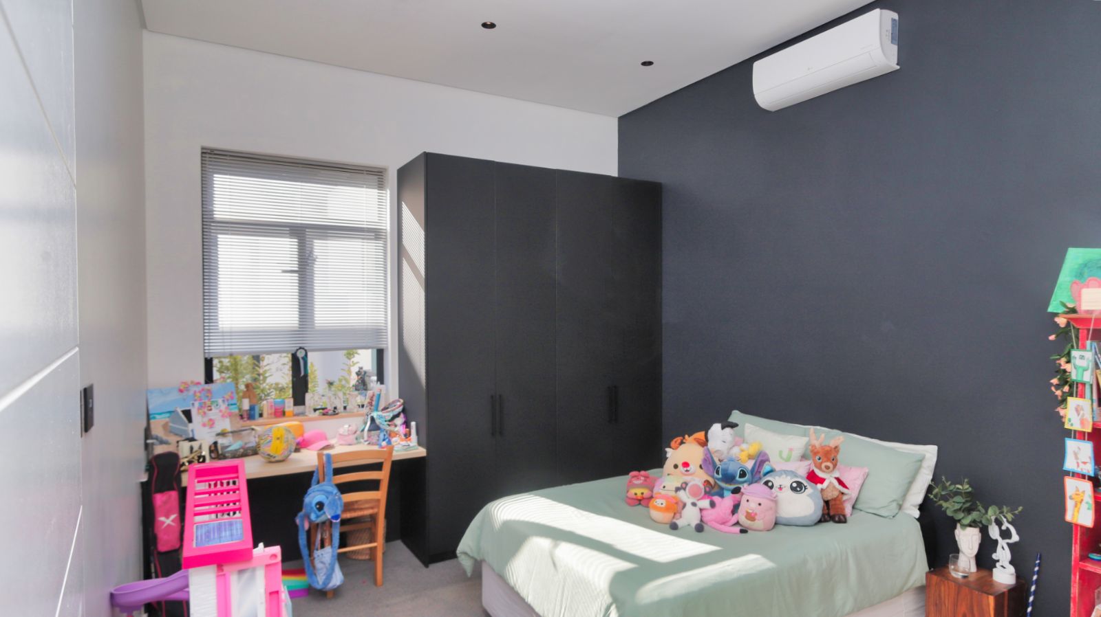 The master suite is a private retreat, with garden and pool views, plush finishes, generous cupboards and a luxurious full bathroom. Two additional bedrooms share a stylish full bathroom, while a fourth en-suite bedroom offers privacy for guests or family.