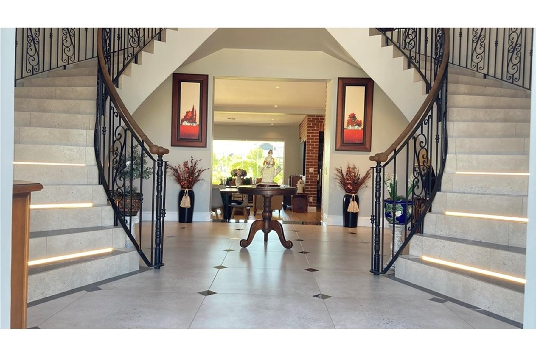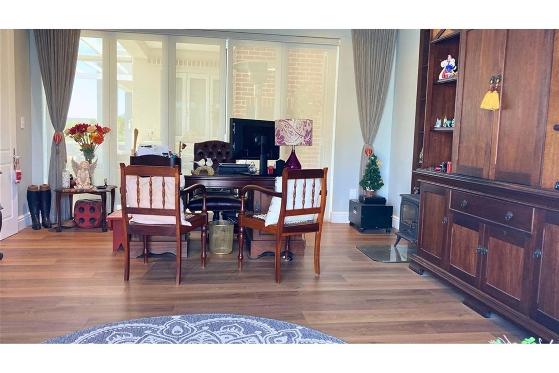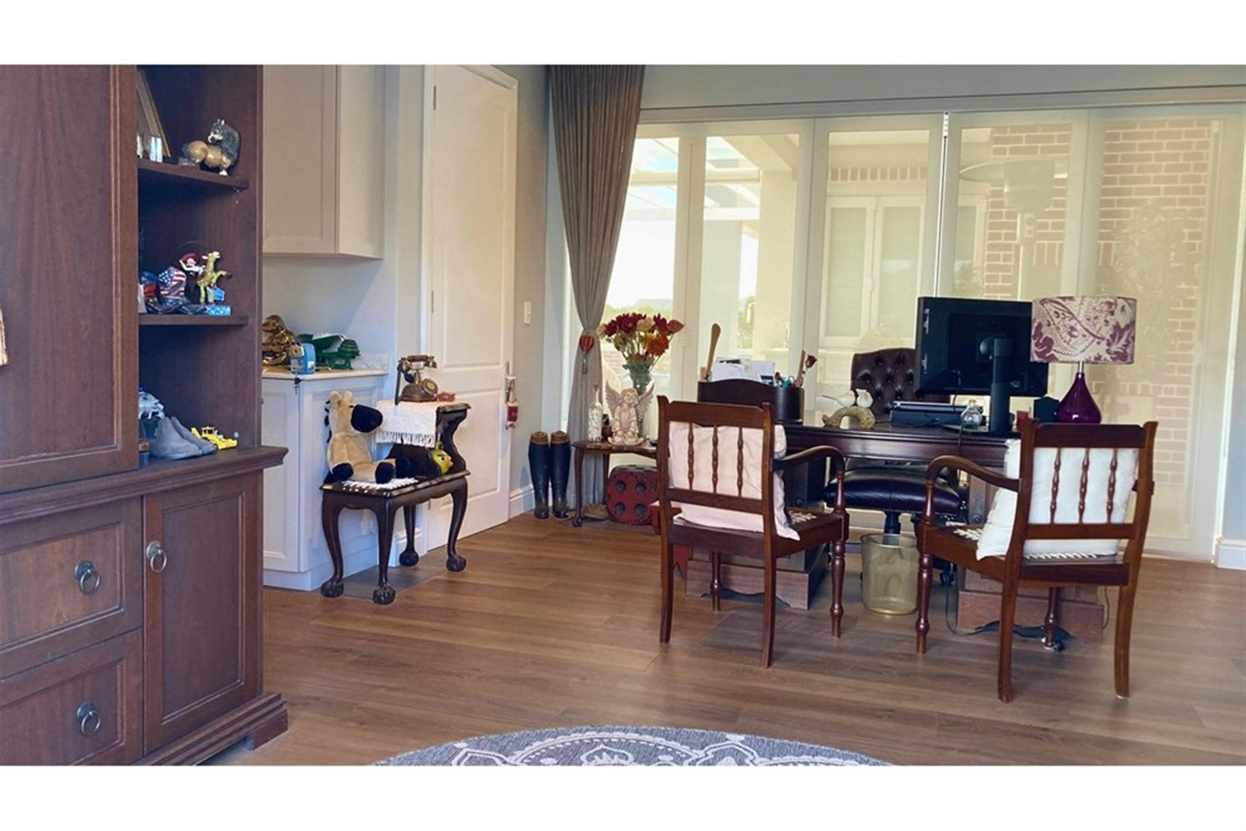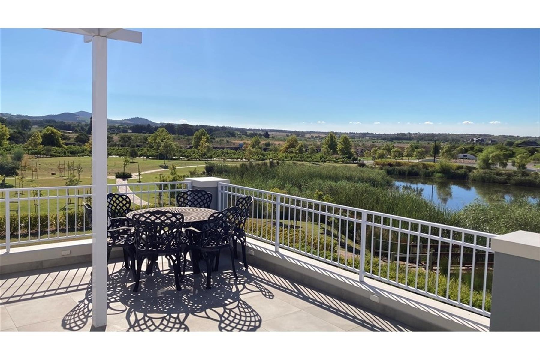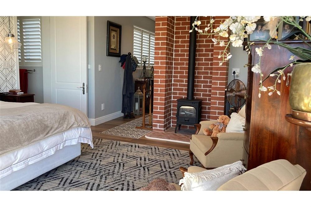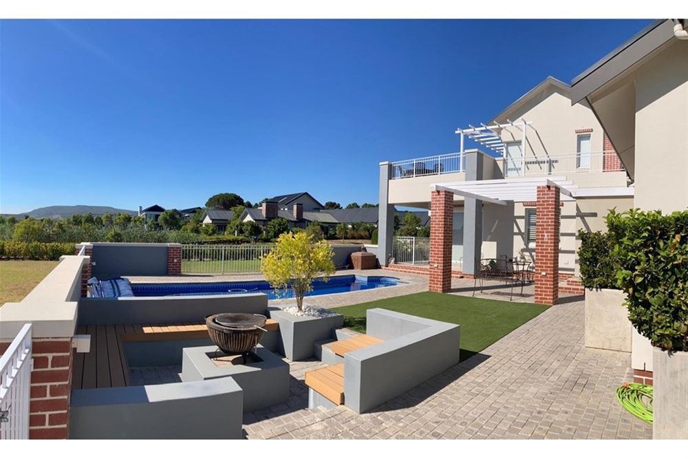 Perfectly positioned to capture panoramic views of a serene dam, vibrant greenbelt, and awe-inspiring mountain ranges, this property offers a lifestyle defined by comfort, elegance, and effortless family living. The design of this home exemplifies thoughtful, functional family living with meticulously crafted spaces. Enter through the grand foyer, where an elegant double staircase gracefully leads you to the upper level. Here, a spacious pyjama lounge and three generously sized en-suite bedrooms await, each tailored for both comfort and convenience. The master suite is a true retreat, featuring a private study or lounge, his and her dressing rooms, a lavish bathroom, and a cozy wood-burning fireplace.