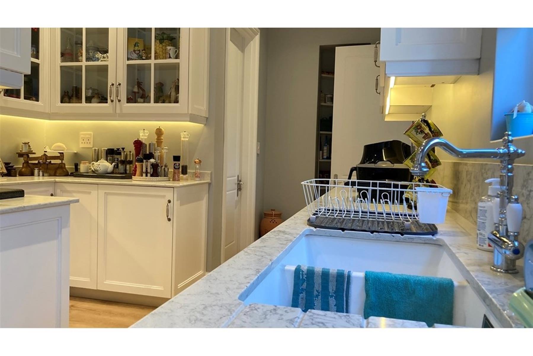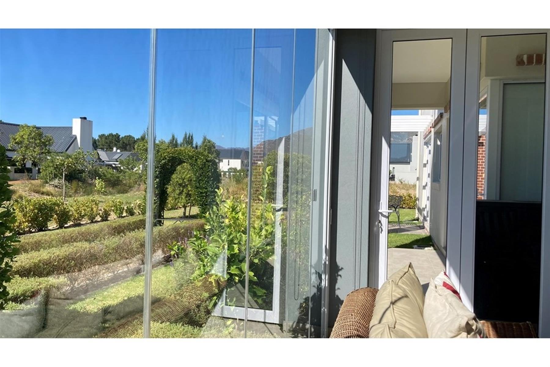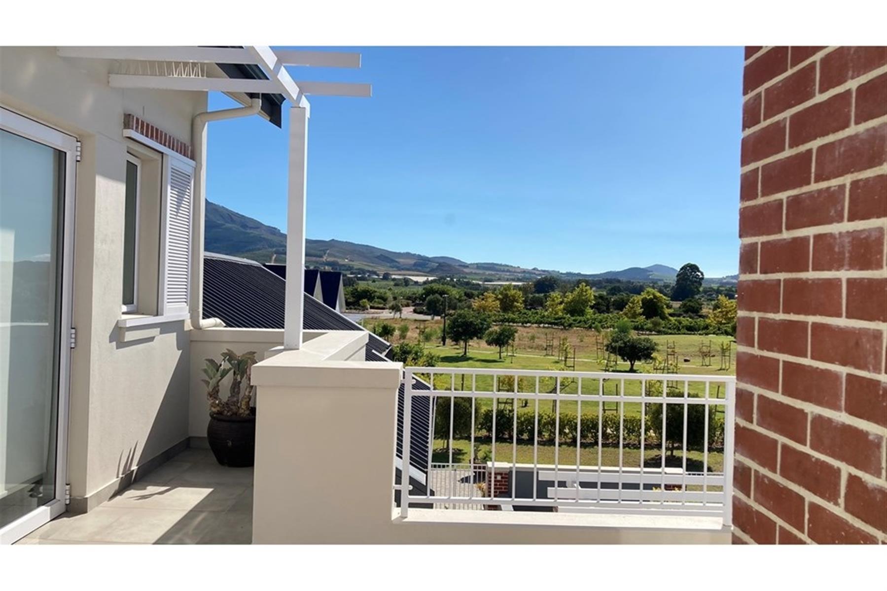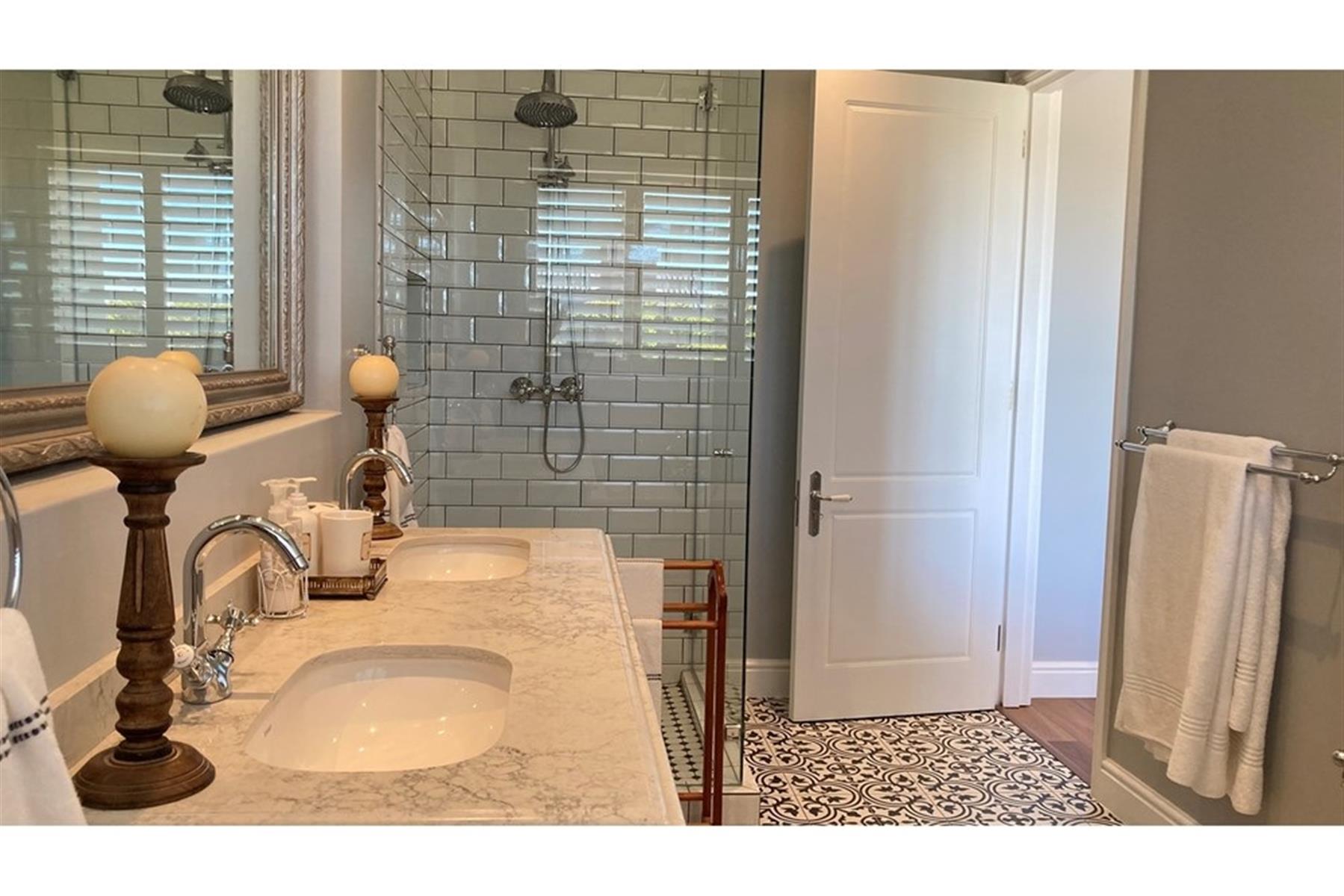 A wraparound balcony further enhances the peaceful ambiance, offering breathtaking views at every turn. The ground floor serves as both a sanctuary for everyday living and an entertainer`s dream. The Provincial Français-style kitchen is the heart of the home, equipped with a large pantry and scullery, and adjoins a remarkable wine cellar that separates the kitchen from the open-plan dining and living areas. These spaces flow effortlessly into a natural light-drenched enclosed patio and a custom-designed bar, with a convenient serving hatch connecting to the outdoor entertainment area. The private garden is ideal for family gatherings, complete with a sparkling pool, built-in braai, and firepit area.