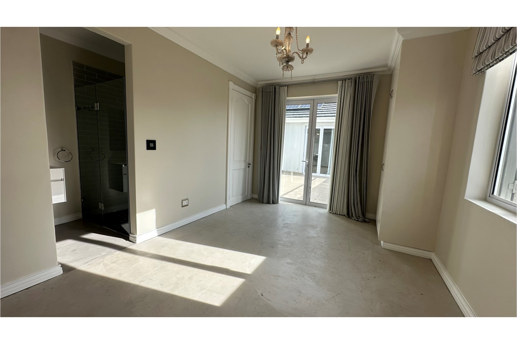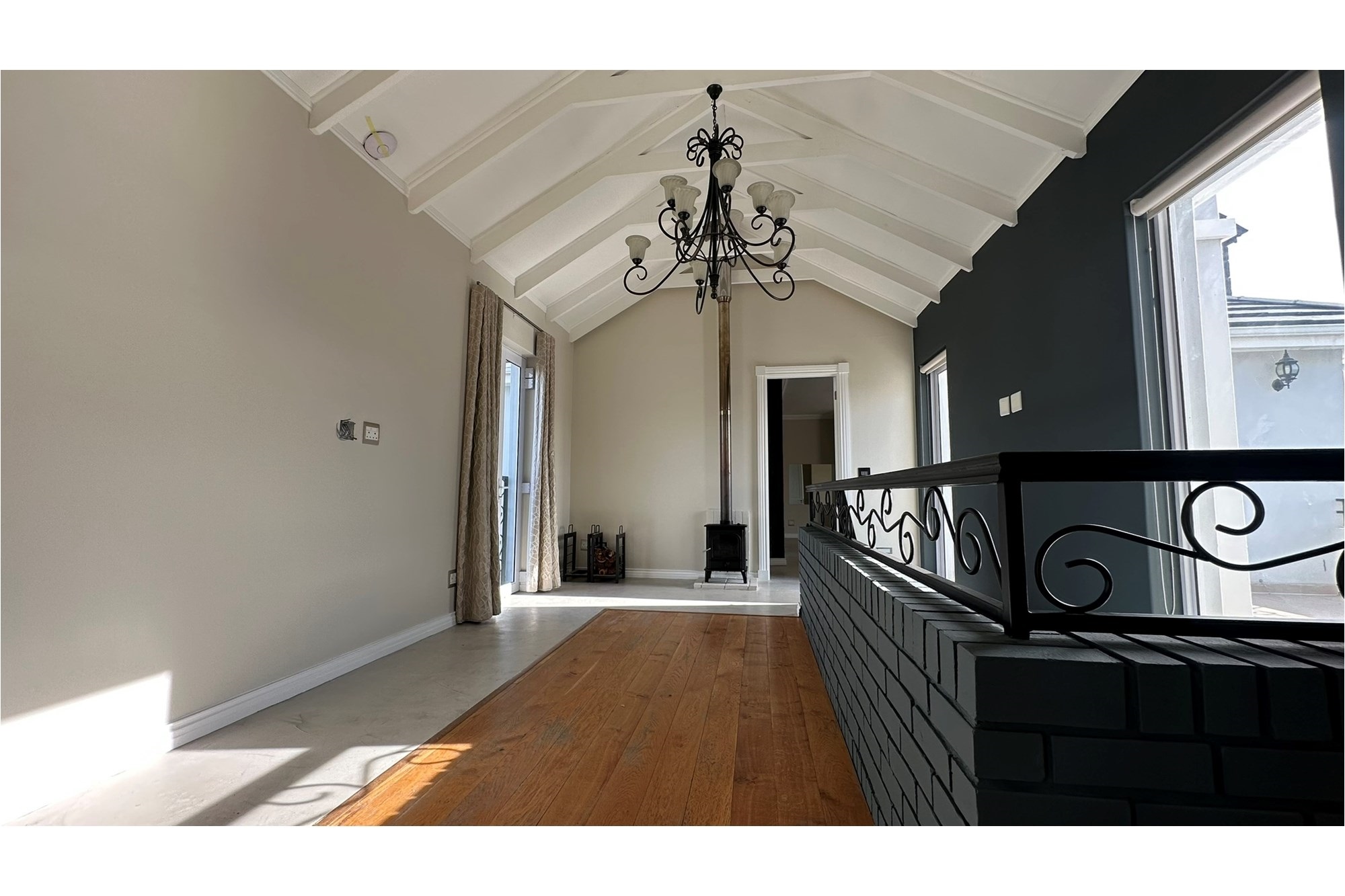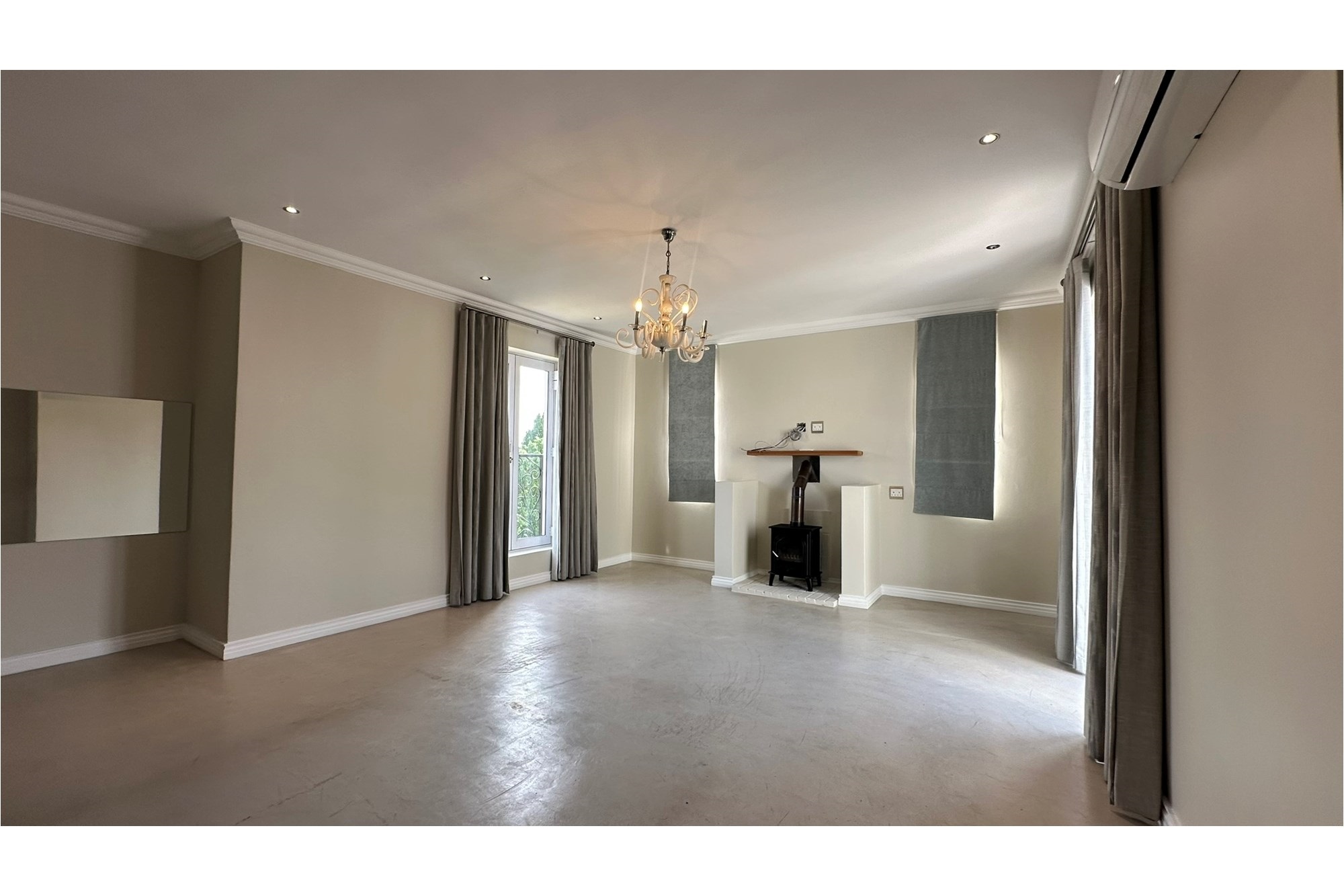 Upstairs, a spacious pyjama lounge with its own fireplace offers a peaceful retreat and can easily double as a study. Three generous en-suite bedrooms complete the upper level, two opening onto a sun-drenched balcony—perfect for enjoying your morning coffee or evening sundowners. The luxurious master suite features a fireplace, walk-in dressing room, and a spa-like en-suite bathroom for ultimate indulgence.