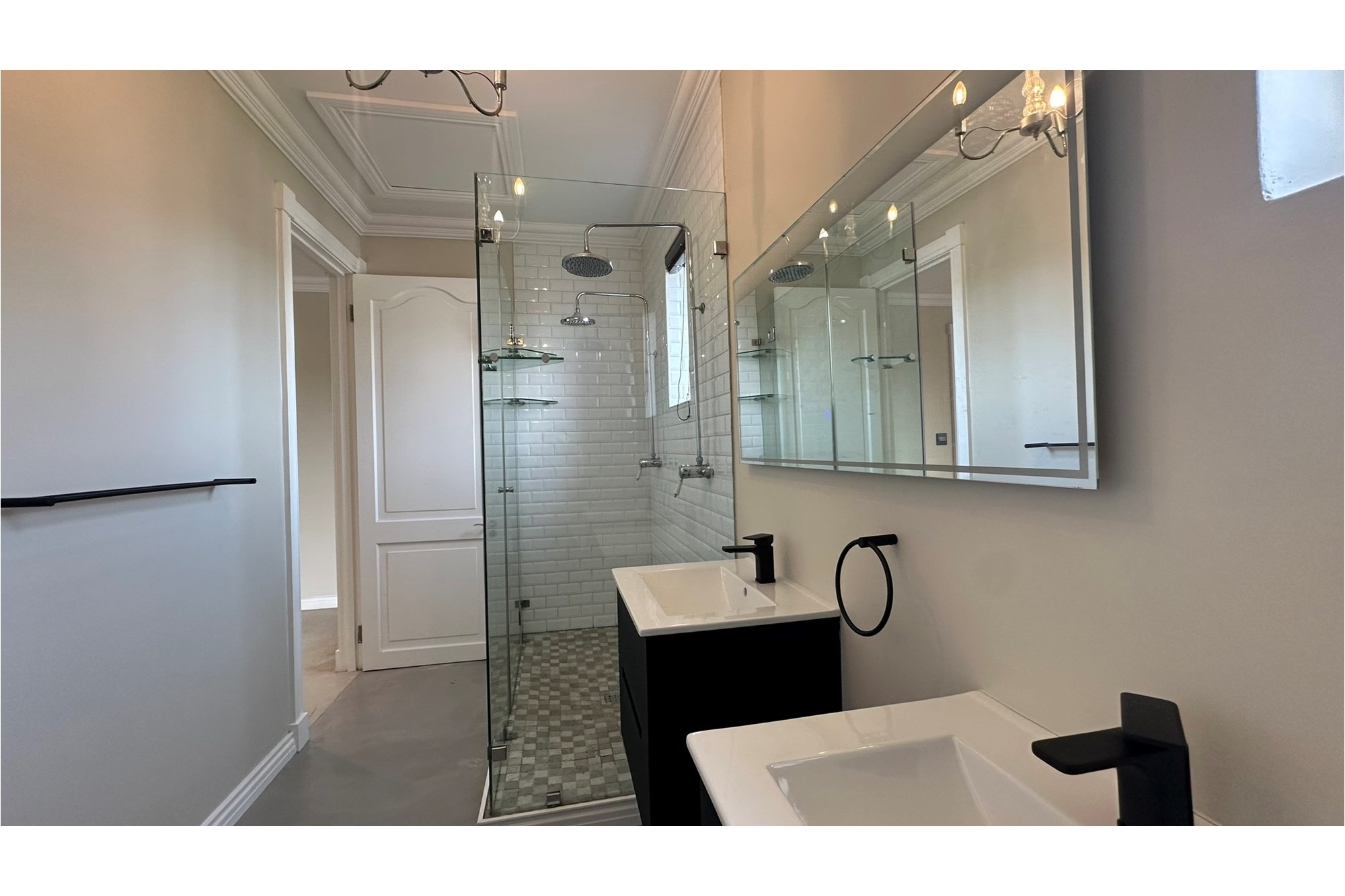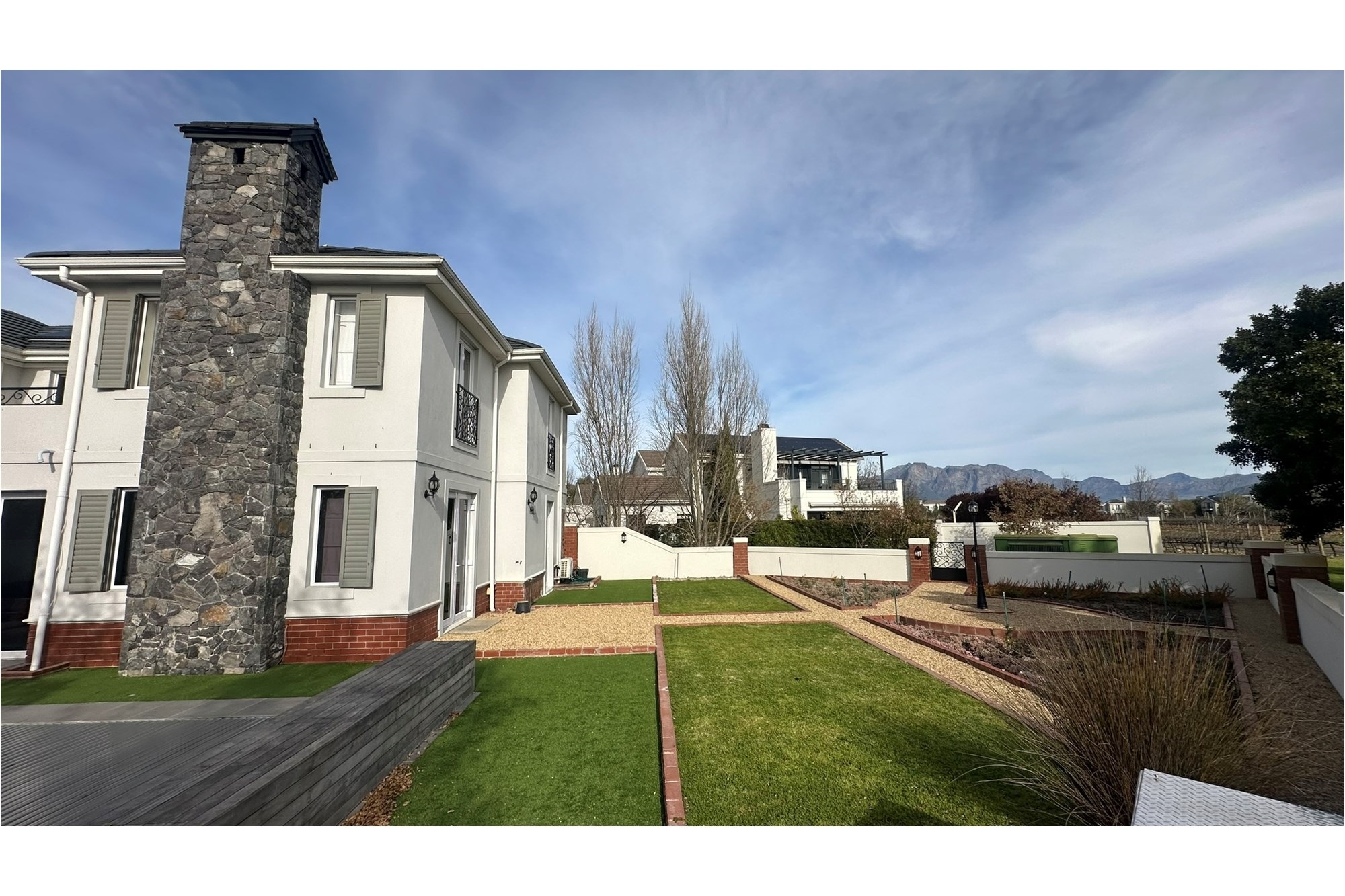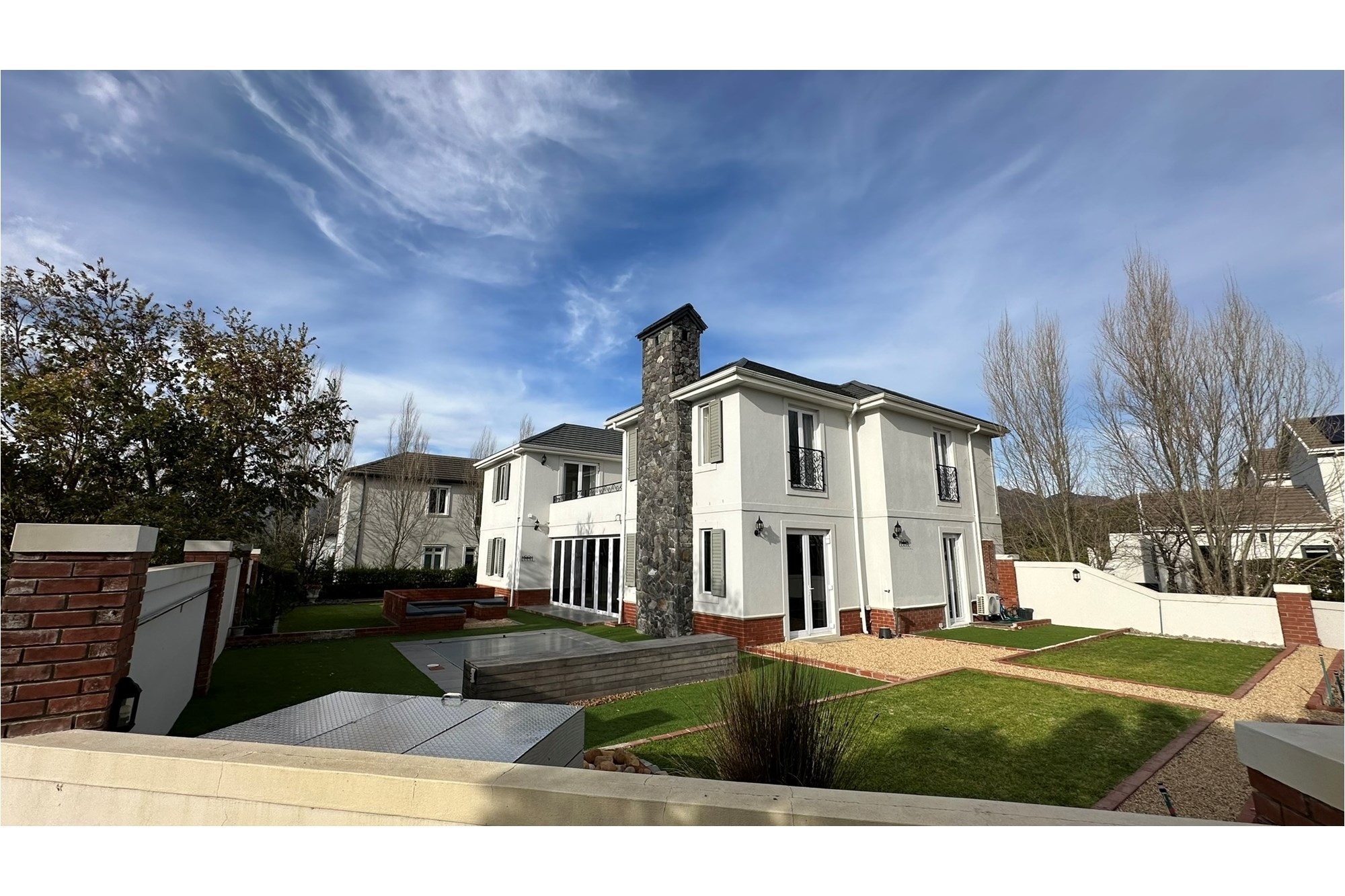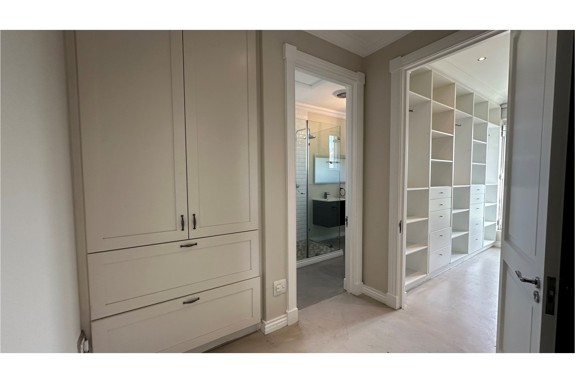 Upstairs, a spacious pyjama lounge with its own fireplace offers a peaceful retreat and can easily double as a study. Three generous en-suite bedrooms complete the upper level, two opening onto a sun-drenched balcony—perfect for enjoying your morning coffee or evening sundowners. The luxurious master suite features a fireplace, walk-in dressing room, and a spa-like en-suite bathroom for ultimate indulgence.