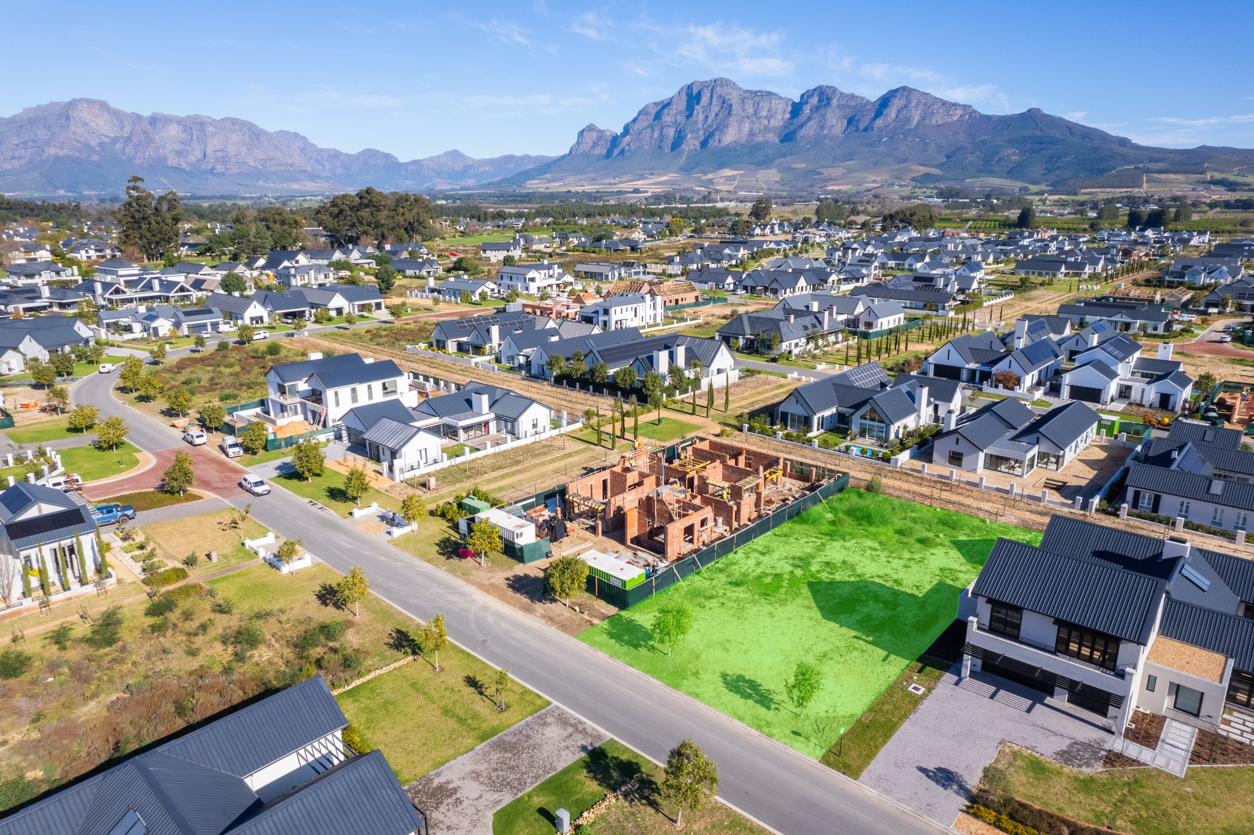 Exclusive Dual Mandate. One of the last few remaining plots nestled in the well-established area of La Vue II within the Estate, this east entrance property borders vineyards and has beautiful views of the breathtaking Simonsberg mountains.