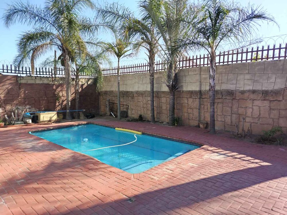 A large enclosed patio serves as a play area for the children and provides easy access to the enclosed pool.
