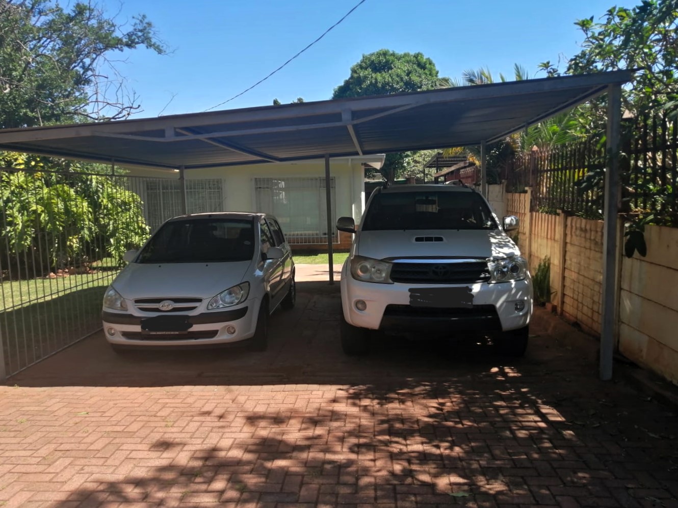 Motorized gate and a double carport.