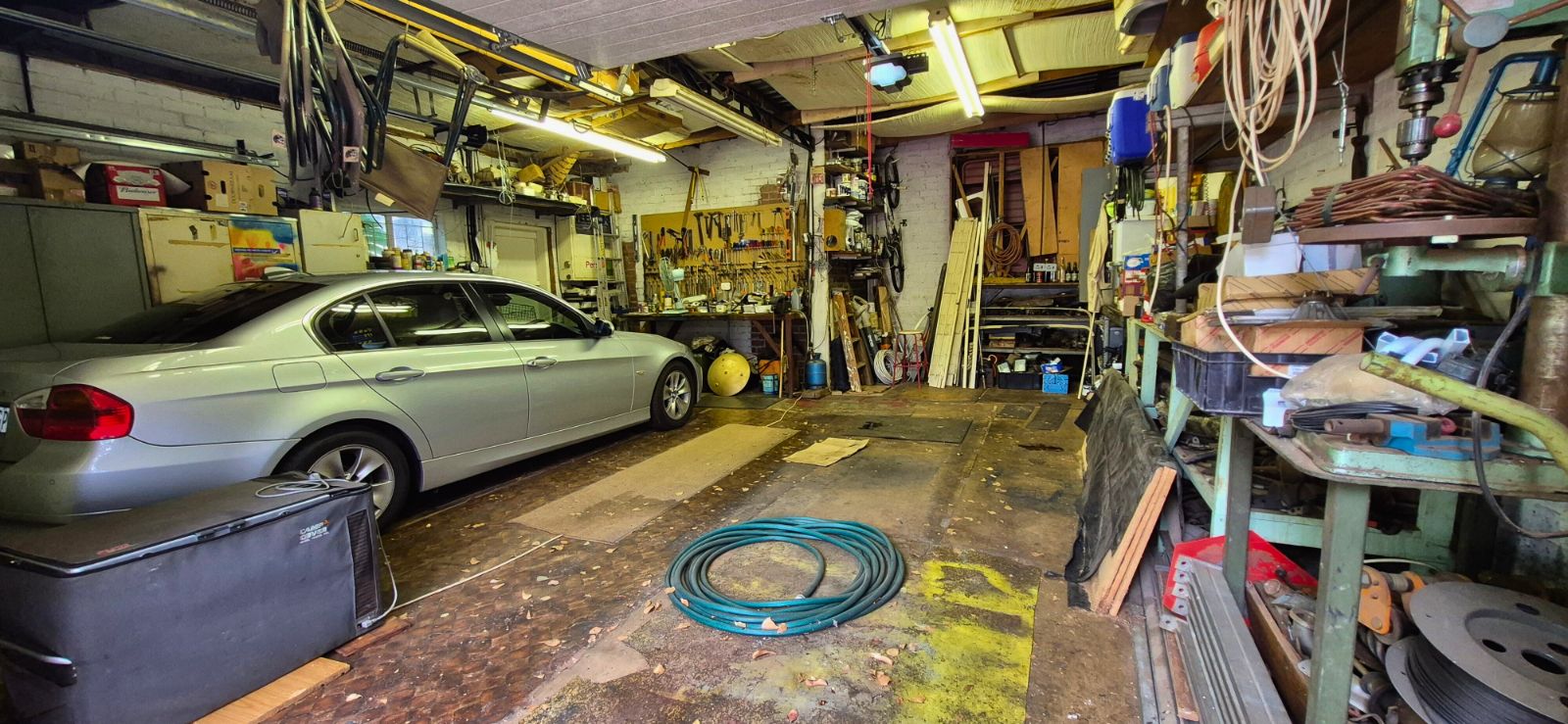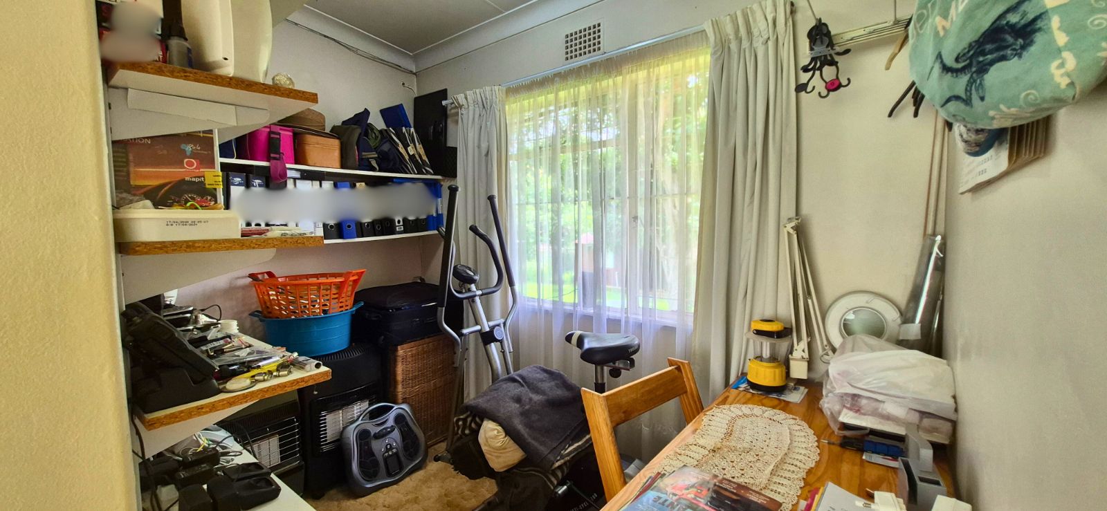 - Two large lock-up garages with built-in shelving for all your storage needs.