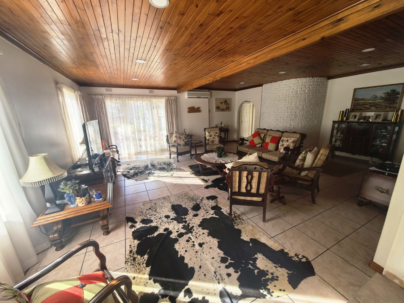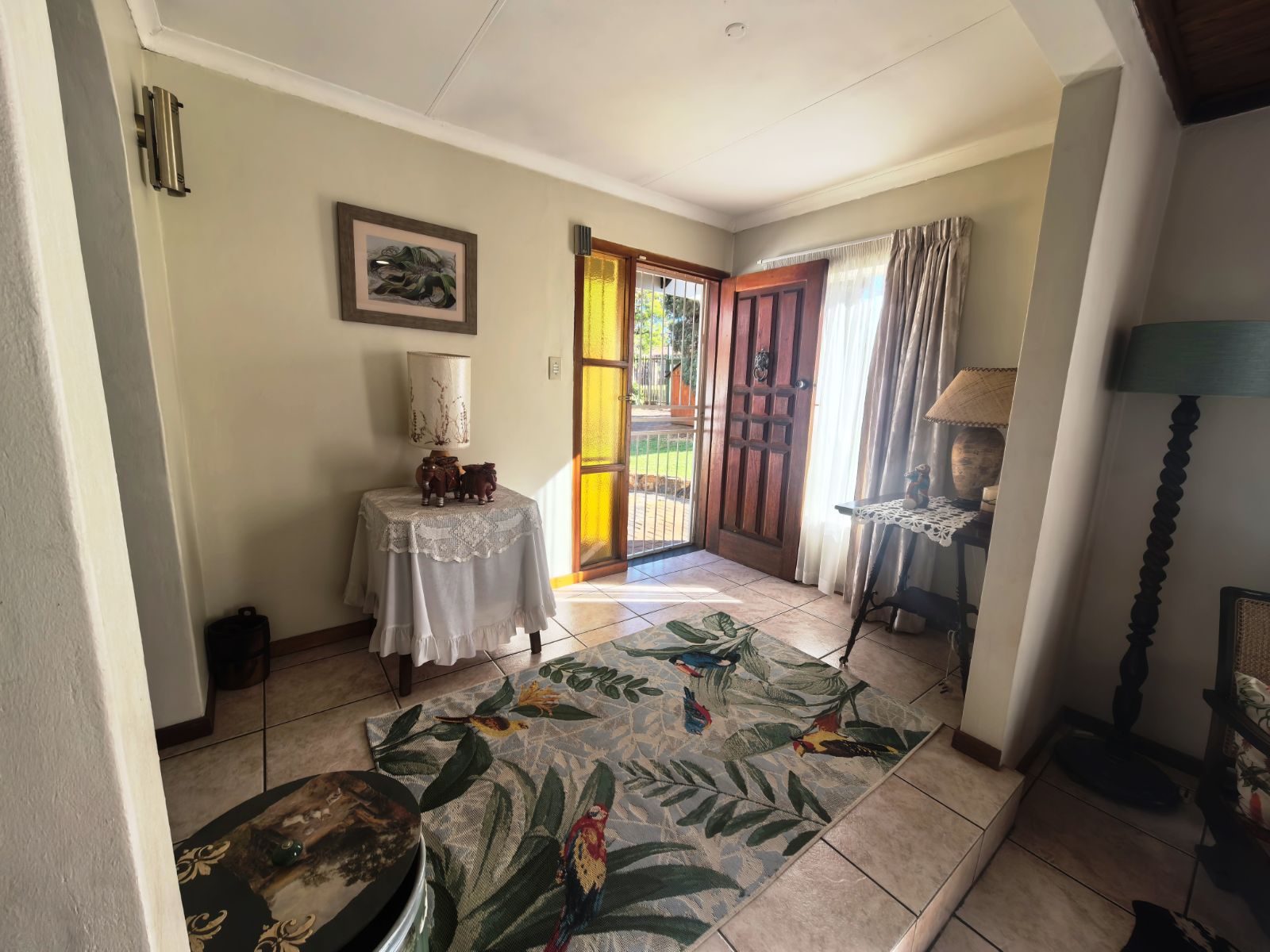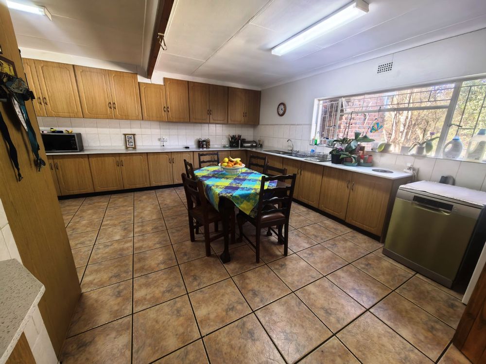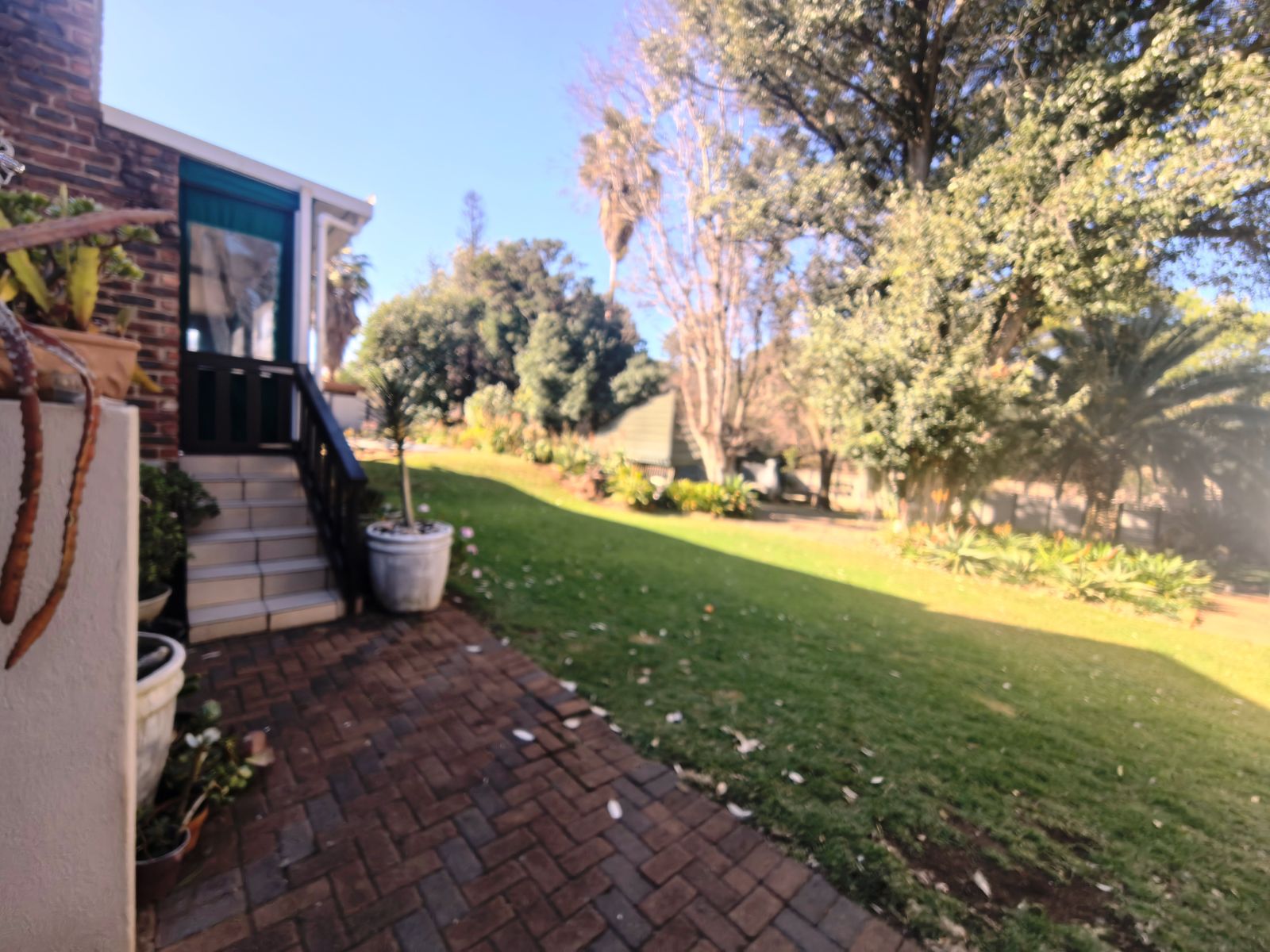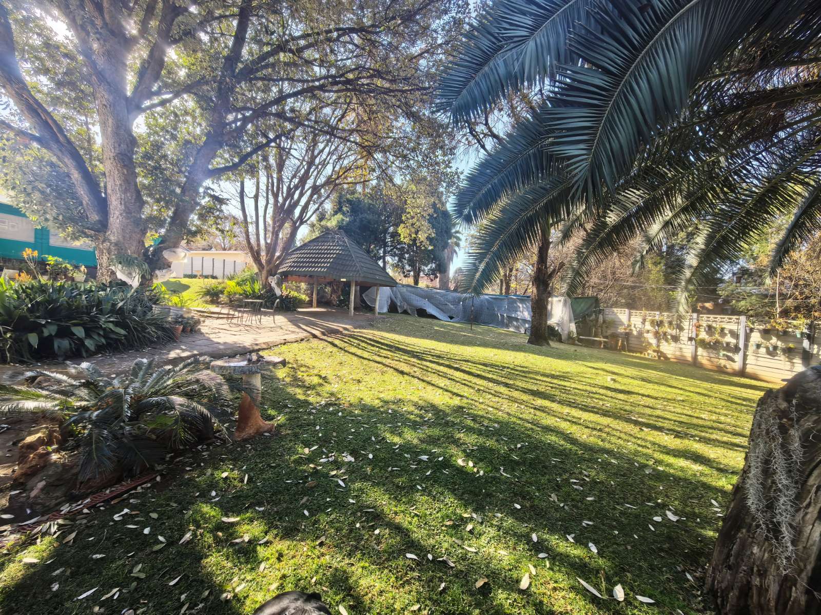 The entertainment area features a built-in bar and flows out to a private patio with weather sails and a built-in braai, creating the perfect setting for year-round social gatherings. The lush garden with mature trees surrounds a sparkling swimming pool (fitted with a safety net) and a lapa, offering a tranquil outdoor retreat. Parking is ample with four garages and a carport accommodating up to five vehicles. Ideally located near major routes, shopping centres, and all essential amenities, the property also boasts a solar system and borehole for added efficiency and sustainability.