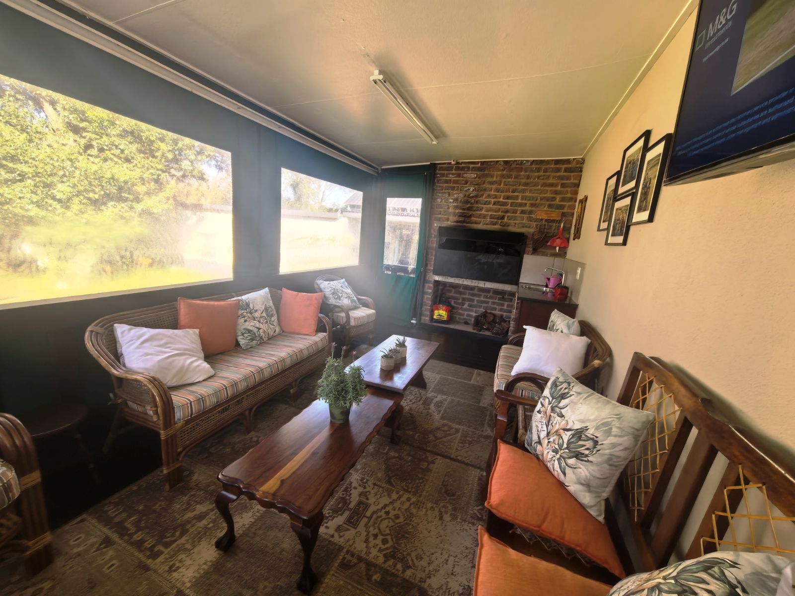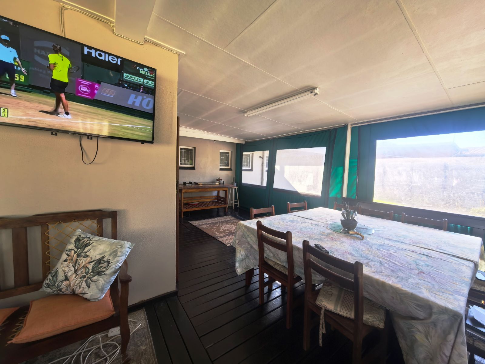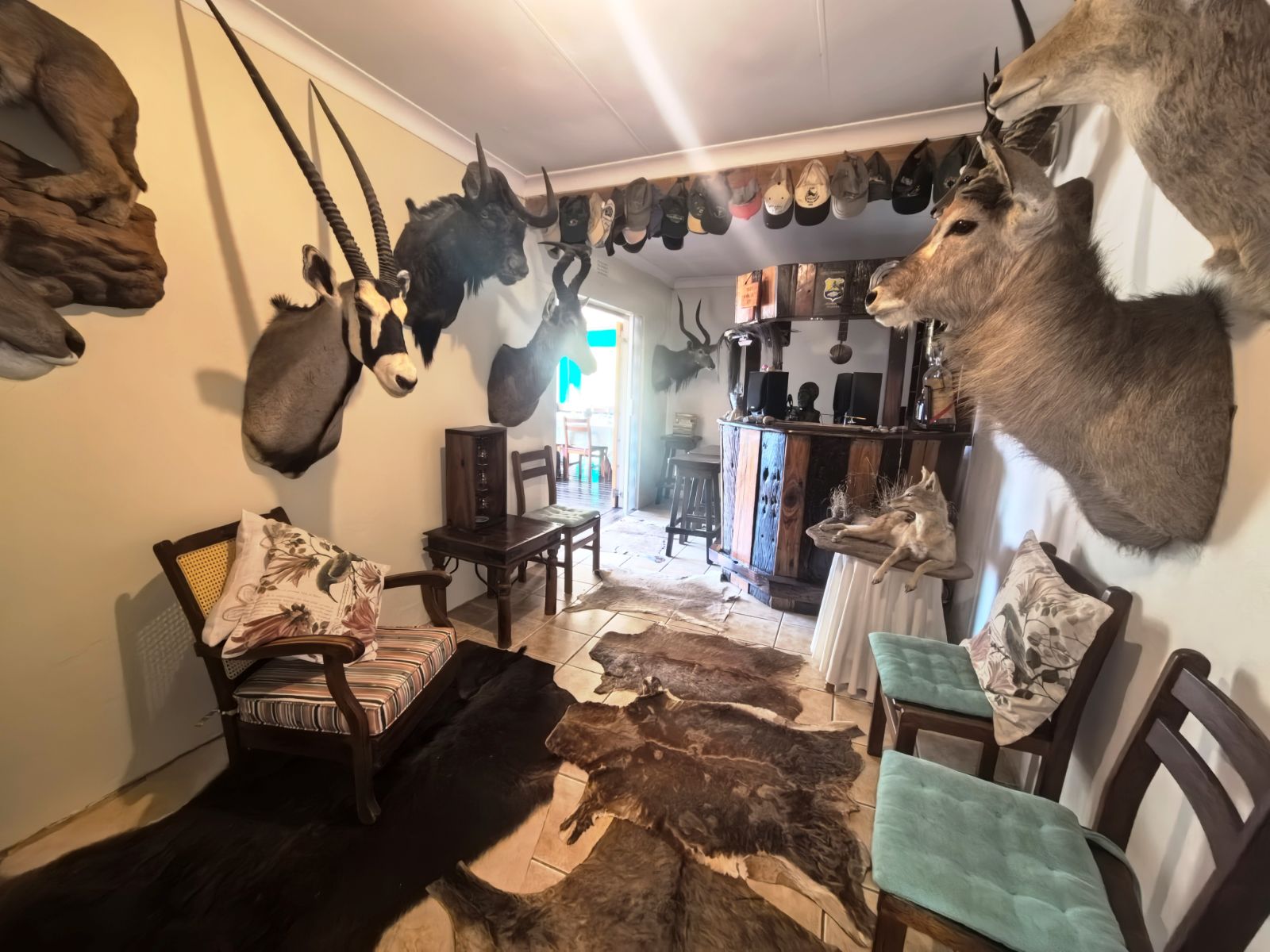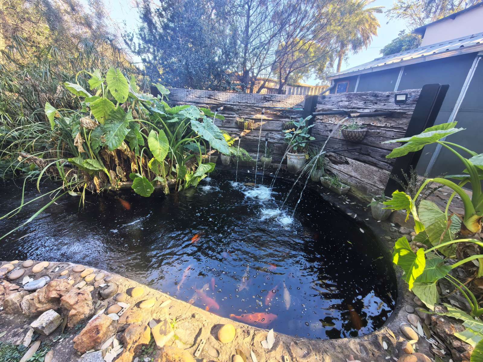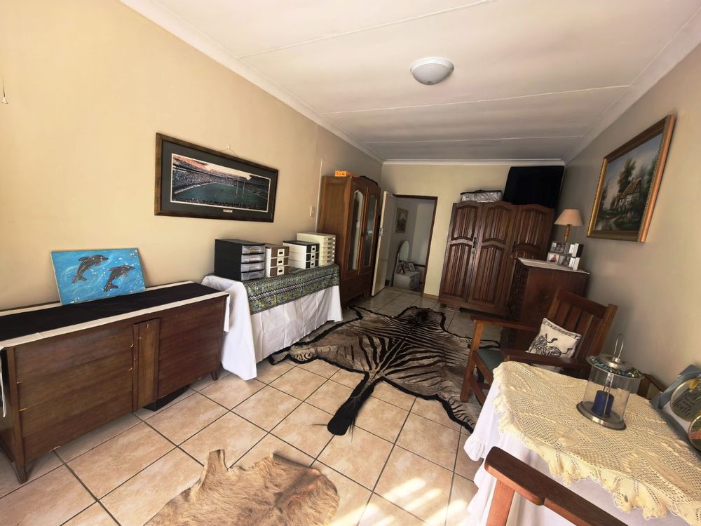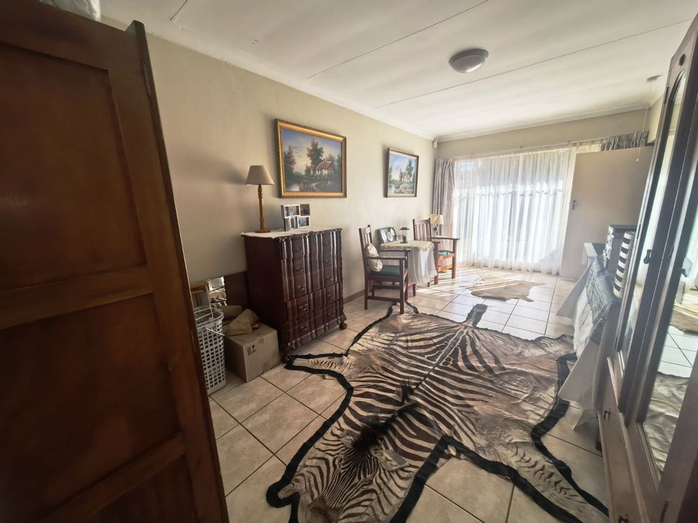 The entertainment area features a built-in bar and flows out to a private patio with weather sails and a built-in braai, creating the perfect setting for year-round social gatherings. The lush garden with mature trees surrounds a sparkling swimming pool (fitted with a safety net) and a lapa, offering a tranquil outdoor retreat. Parking is ample with four garages and a carport accommodating up to five vehicles. Ideally located near major routes, shopping centres, and all essential amenities, the property also boasts a solar system and borehole for added efficiency and sustainability.