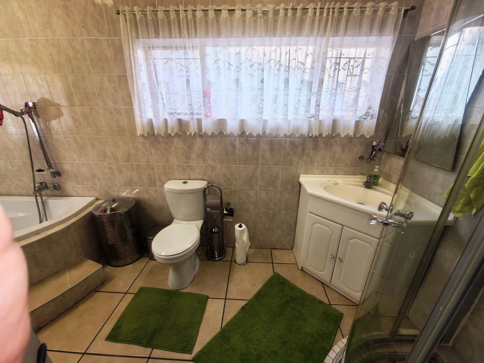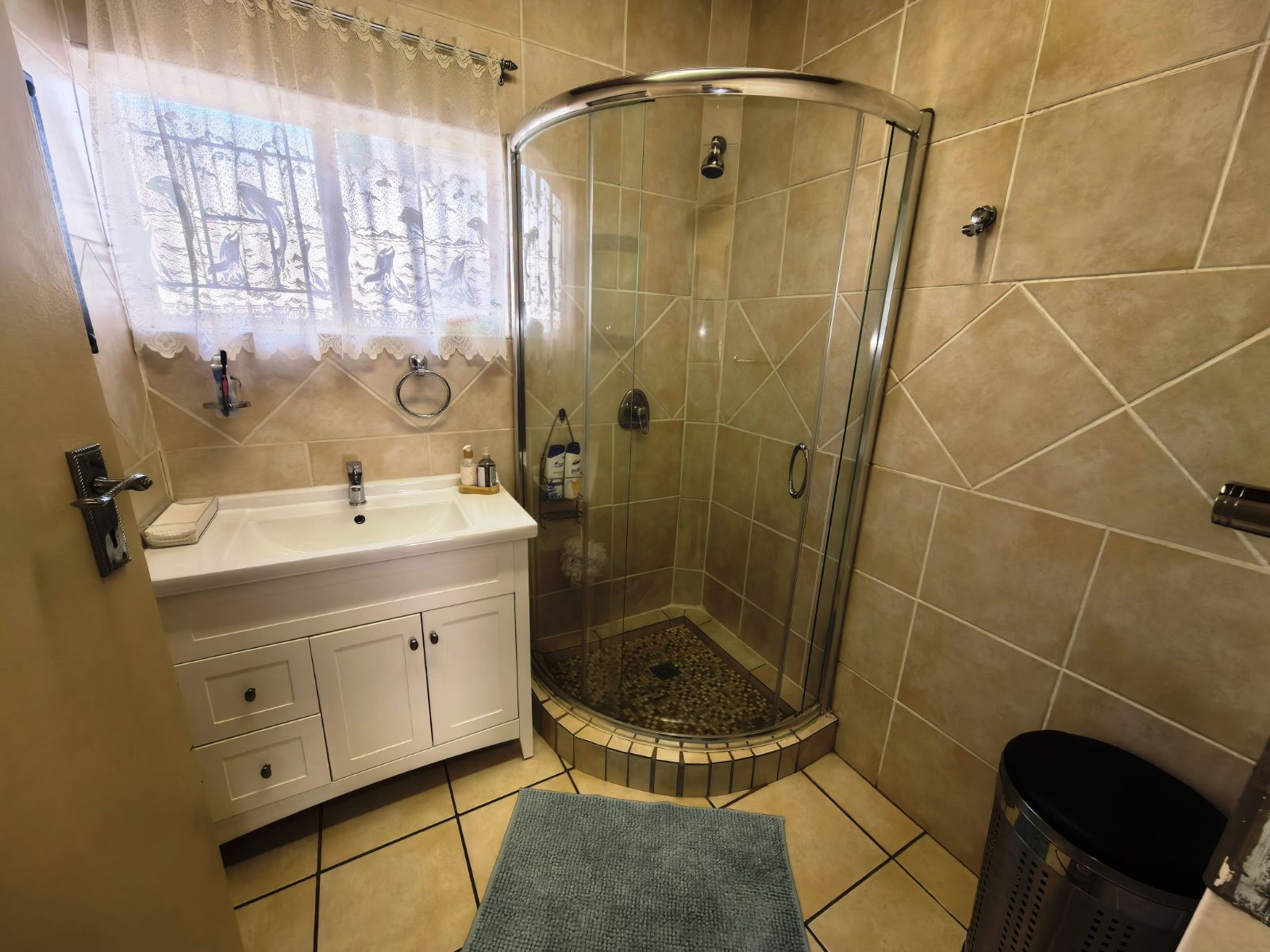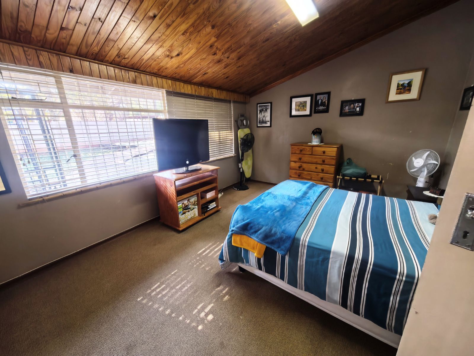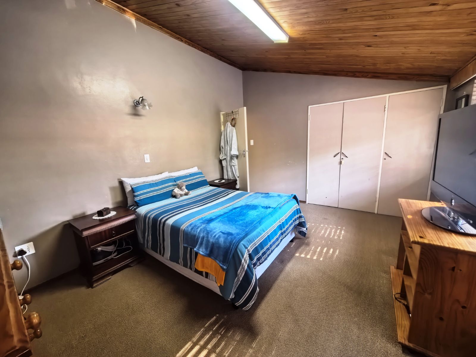 The kitchen is well-appointed with ample cupboard space, ideal for family cooking and gatherings. Accommodation includes three well-sized bedrooms, complemented by two bathrooms, with the main en-suite featuring a full bathroom. Parking is a breeze with a double garage as well as a double carport,