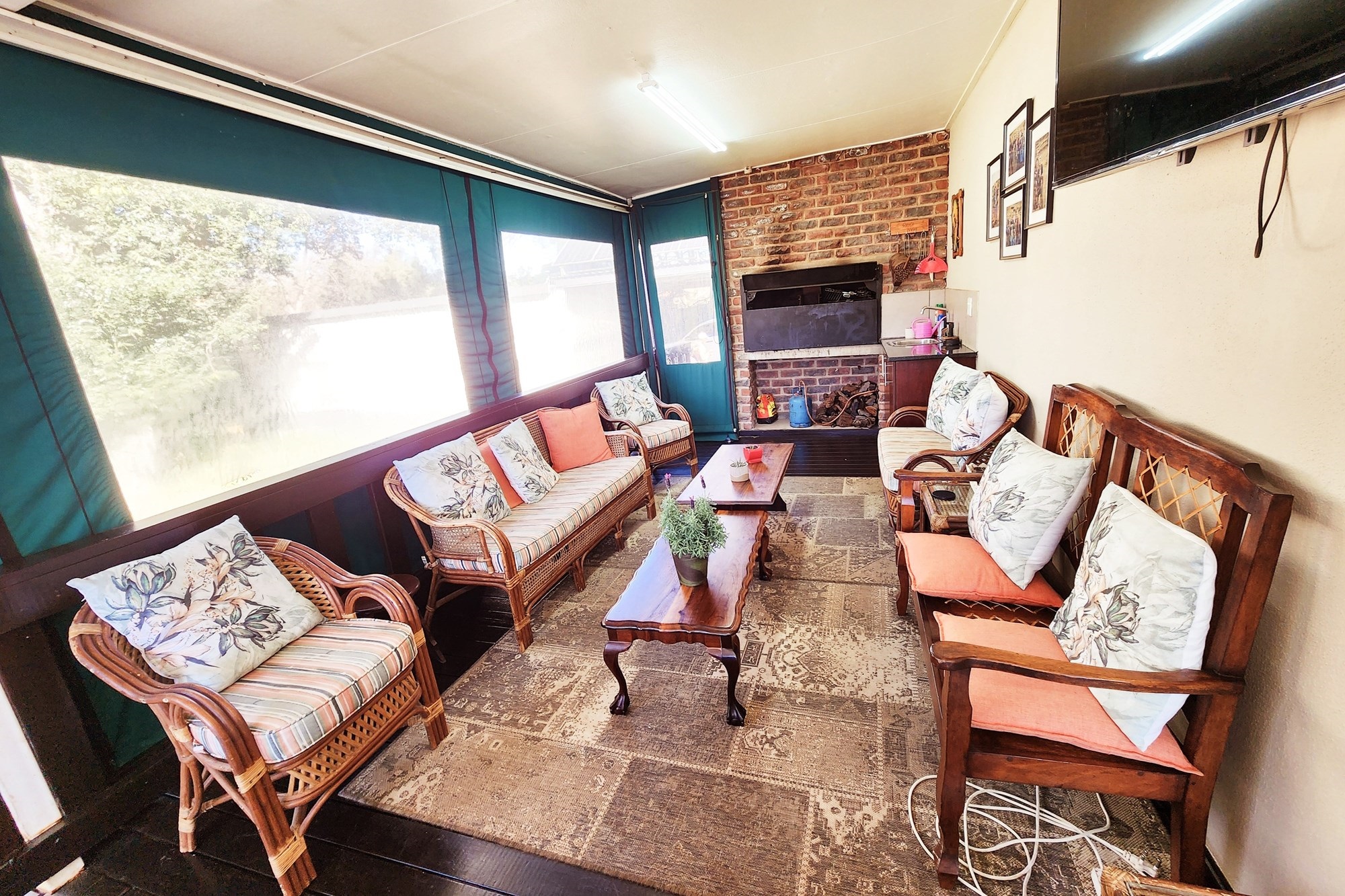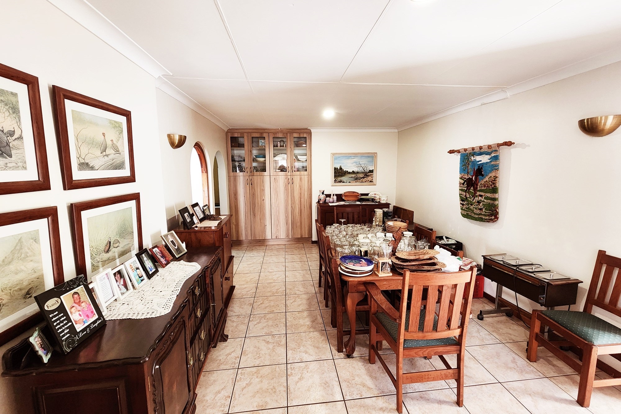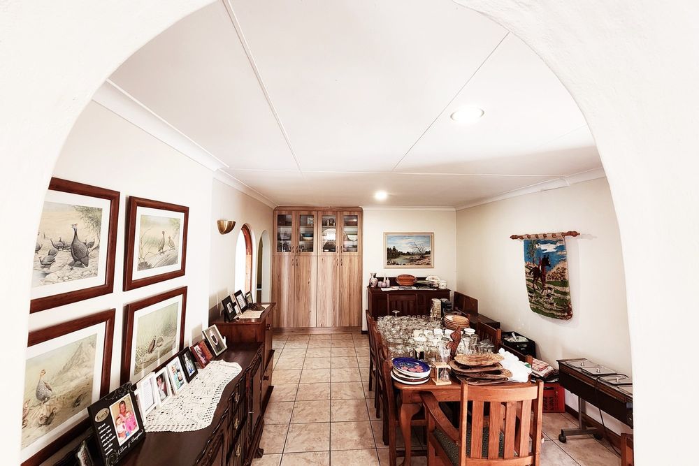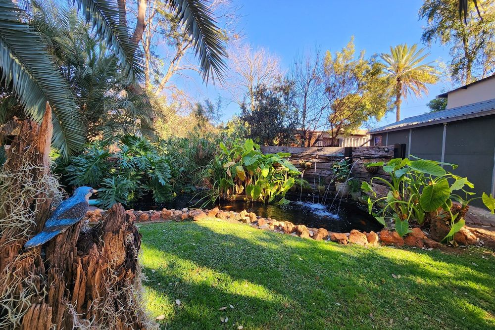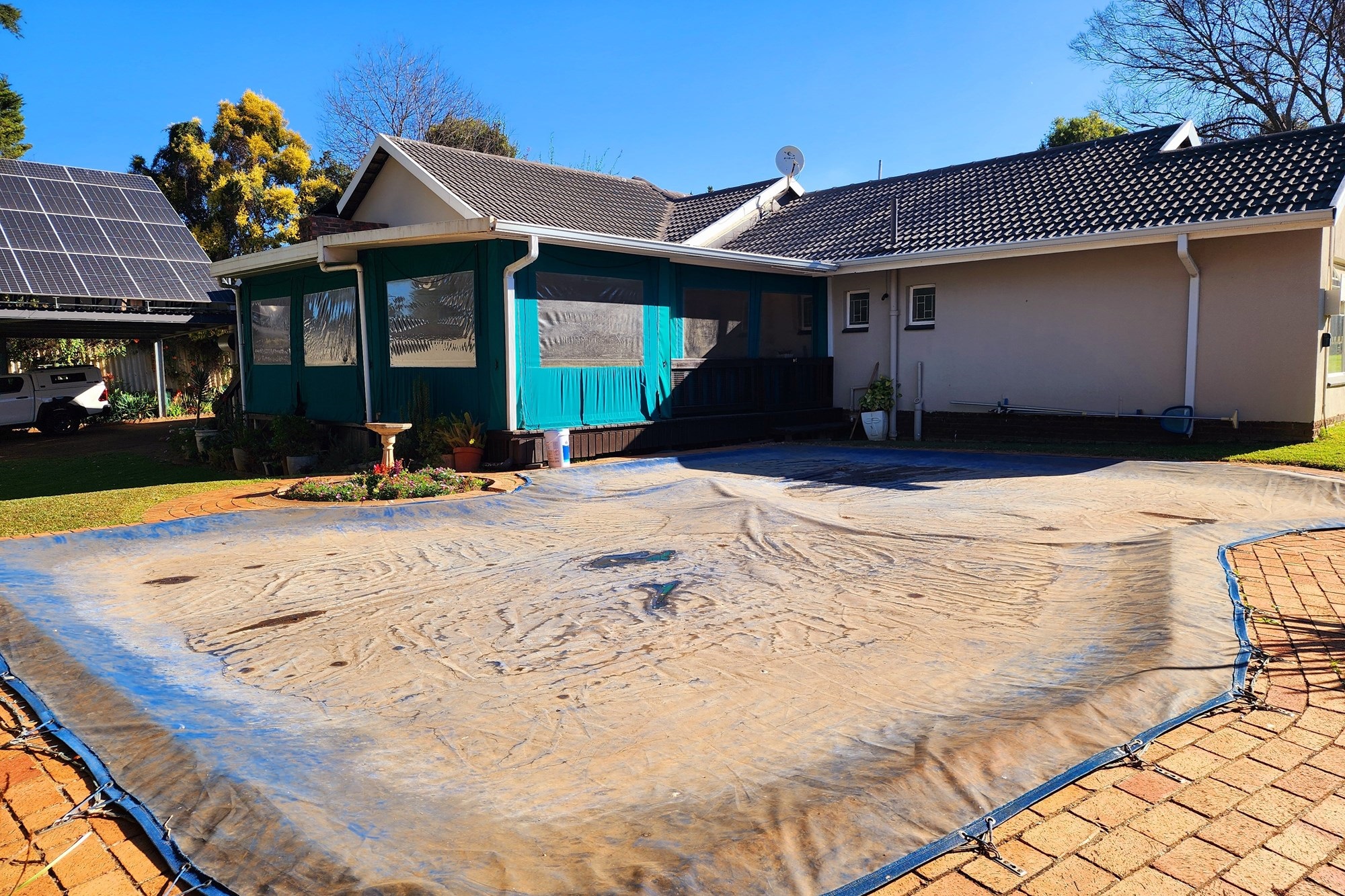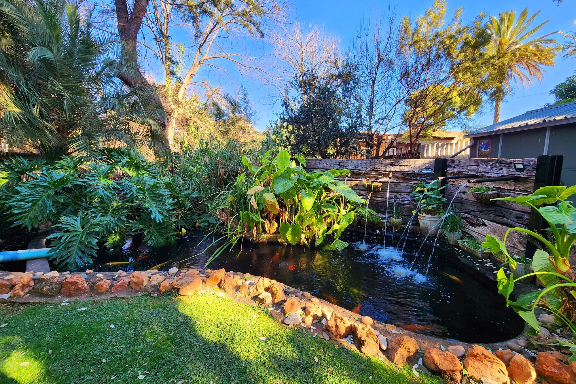Outdoors, the property shines with a range of amenities designed for leisure and relaxation. Dive into the swimming pool, host gatherings at the barbeque pit, or enjoy serene moments on the patio or veranda. The beautifully landscaped garden is supported by an strong bore hole and a irrigation system. There is also a Koi pond complete with koi fish while the playground offers entertainment for the younger members of the family. For convenience, the estate includes a 4-car garage with automatic doors and a 4 car covered carport plus another 2 car covered carport providing covered parking and space for up to 6 vehicles.