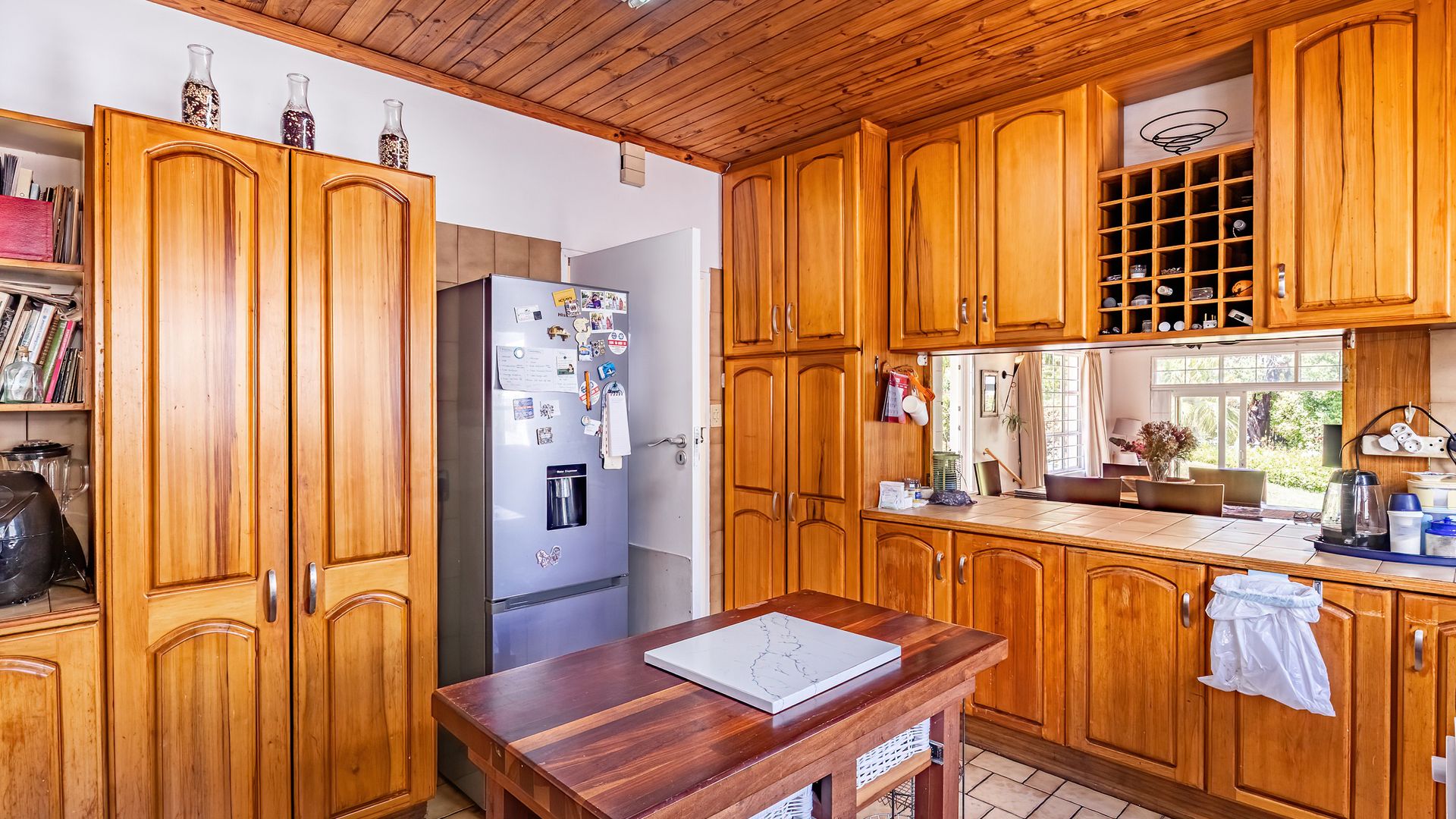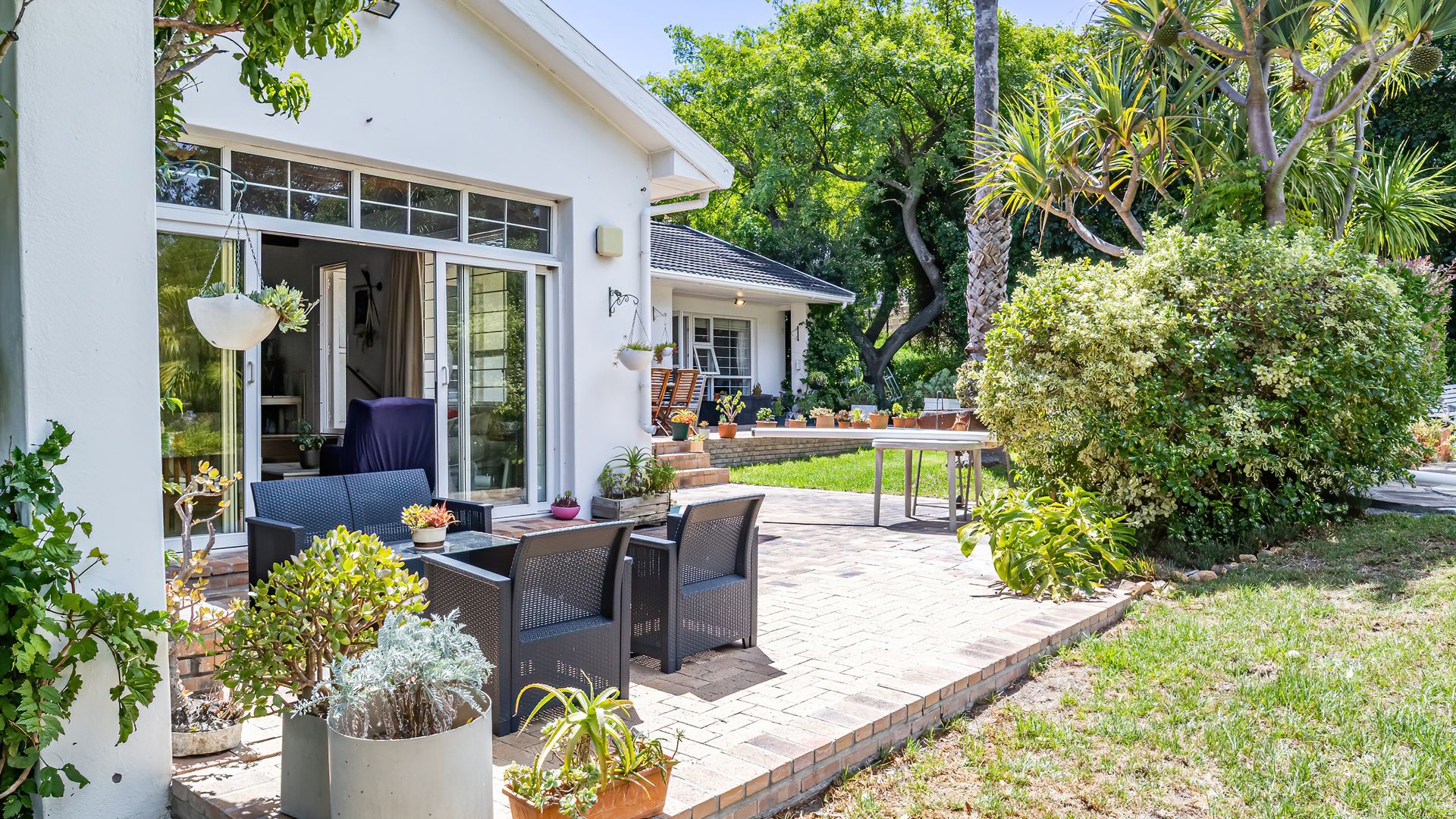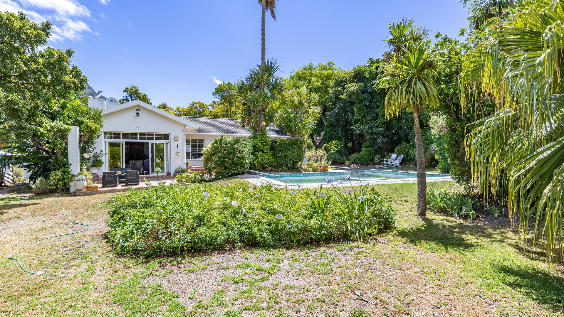 The open-plan, light and airy lounge and dining area, complete with wood burning fireplace, open onto patios from both sides and flow seamlessly to the peaceful garden and pool area creating a desirable indoor-outdoor lifestyle. The current separate kitchen lends itself to being opened up to the living areas, creating a modern open-plan feel and a fabulous space for happy gatherings.