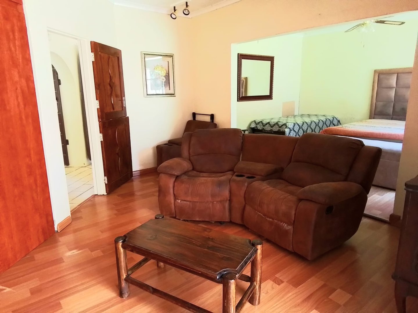 The heart of the home is undoubtedly the open-concept kitchen, a chef's dream adorned with ample cupboard space and a convenient scullery/laundry area. Gather with loved ones in the glass-panelled enclosed entertainment/lounge area, where laughter echoes against the backdrop of a built-in braai. Here, floor-to-ceiling windows invite the beauty of the garden indoors, creating an atmosphere of seamless indoor-outdoor living.
