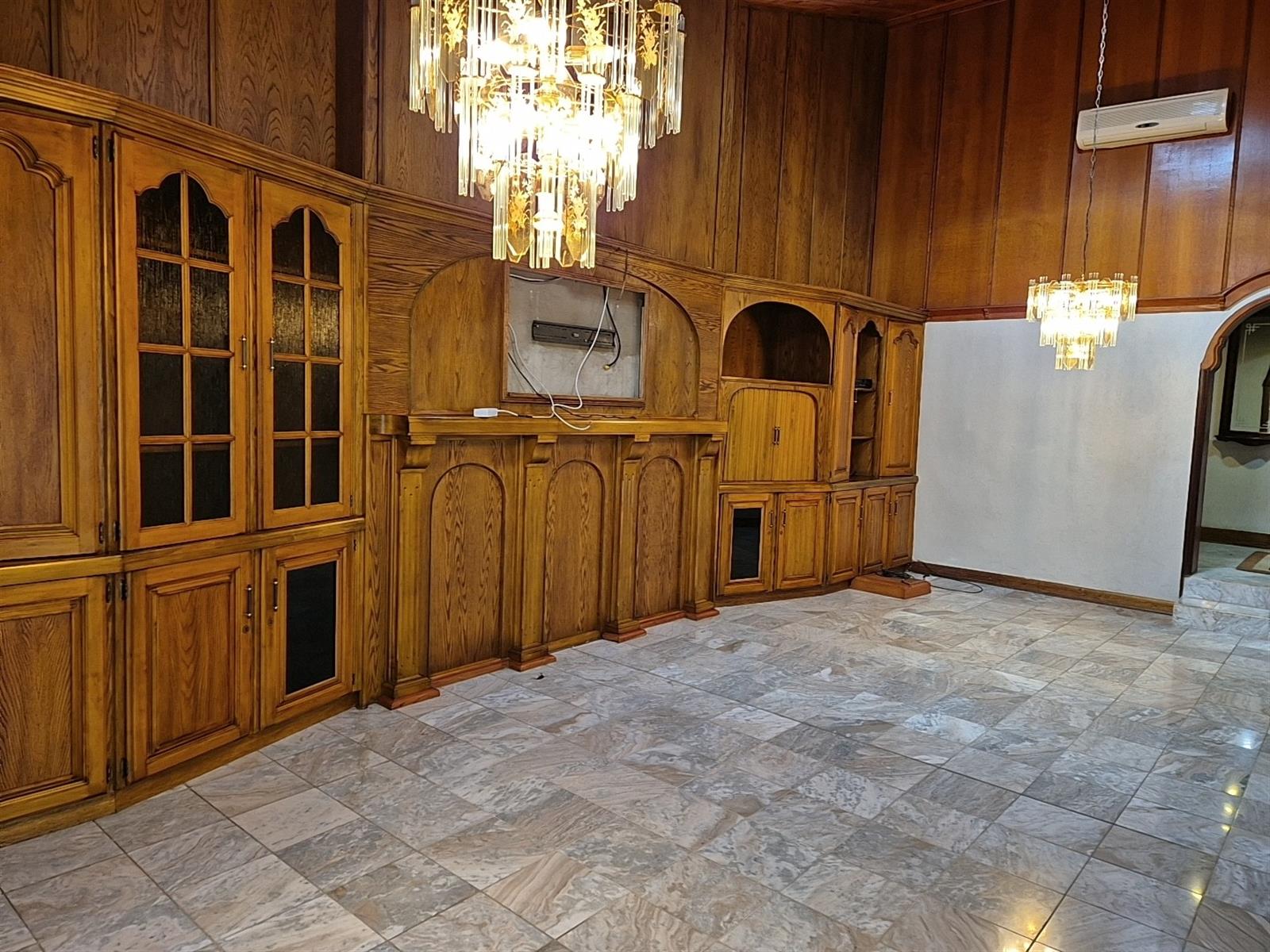 A stylish TV room with built-in units (included) offers both practicality and design appeal, the elegant dining room connects to a second lounge featuring a state-of-the-art slow wood-burning fireplace — ideal for cozy evenings.