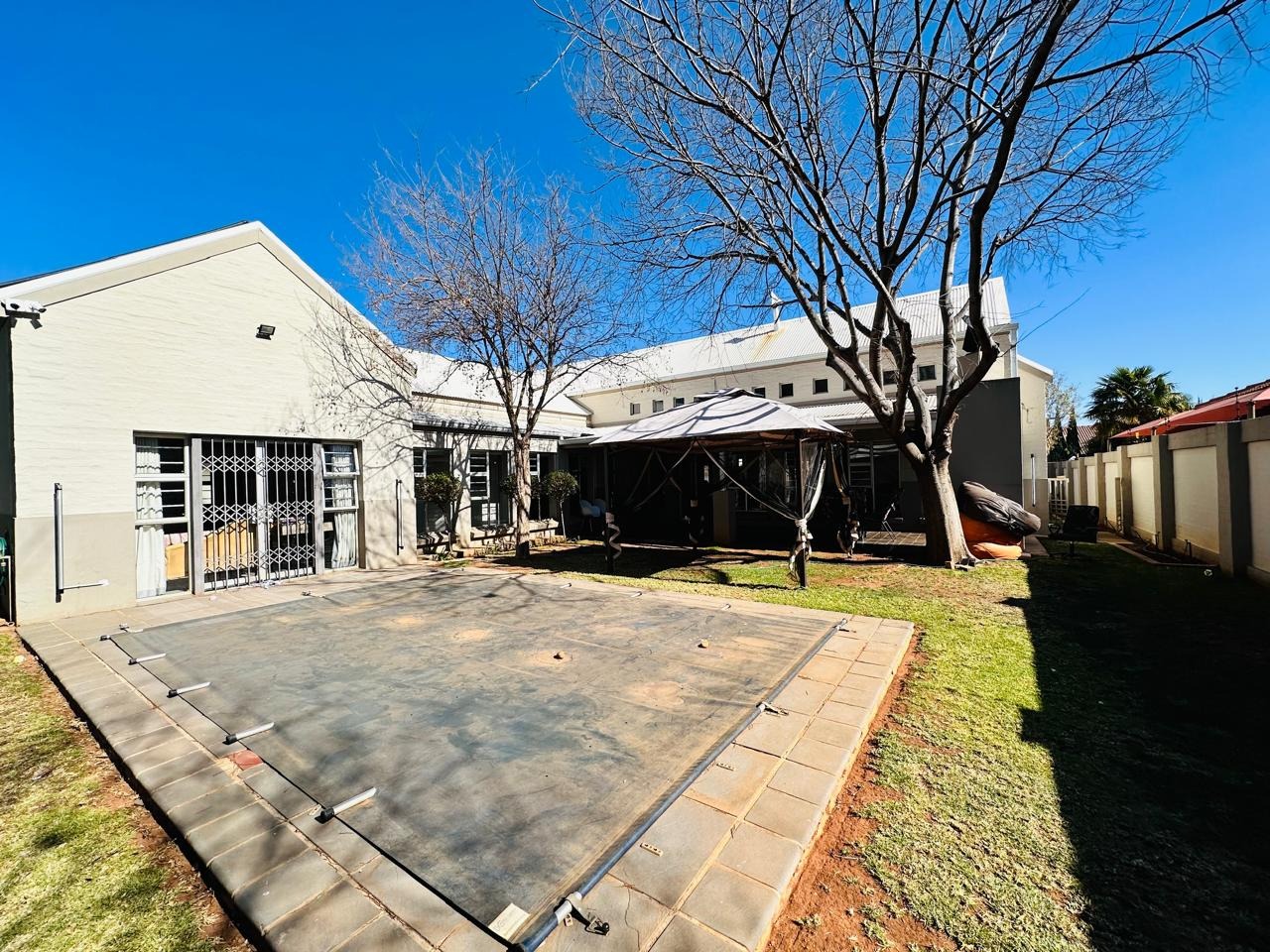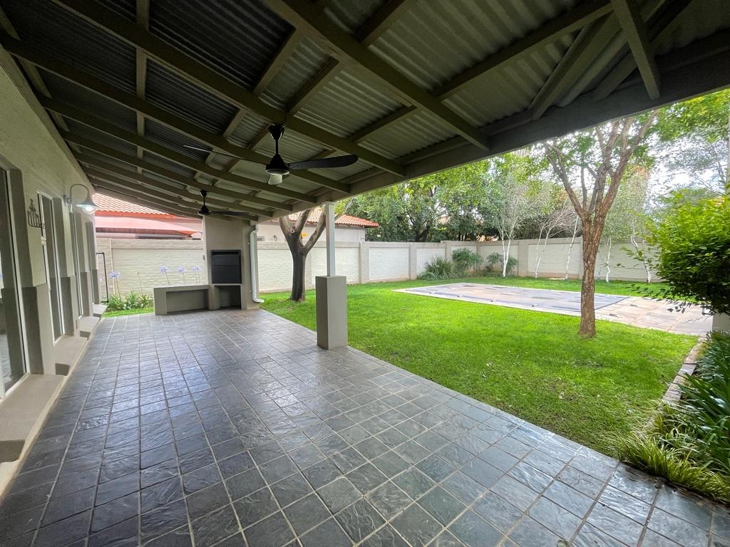 Step outside onto the covered patio, where you can enjoy al fresco dining or simply unwind while taking in the view of the beautifully landscaped garden. A sparkling swimming pool beckons for summer dips, providing the perfect backdrop for outdoor fun.