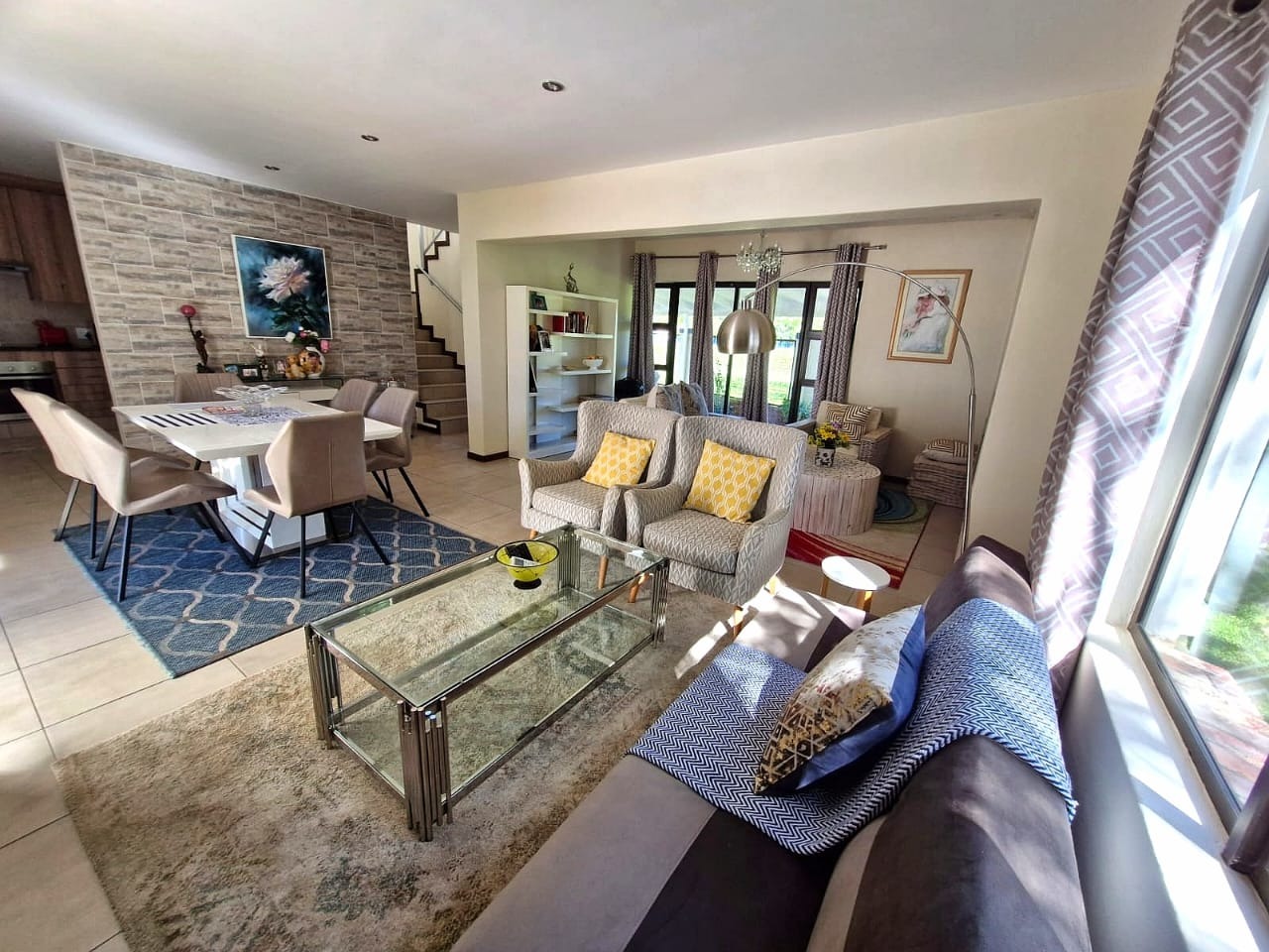 The heart of the home lies in the airy, open-plan living space, where the living room, dining area, and modern kitchen blend seamlessly. Large windows flood the area with natural light, creating an inviting space for both relaxation and entertainment. The sleek kitchen, designed for both style and functionality, invites you to cook and gather with ease.