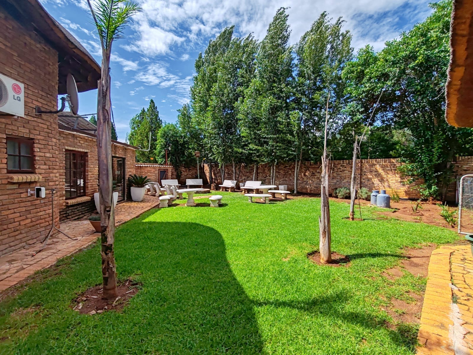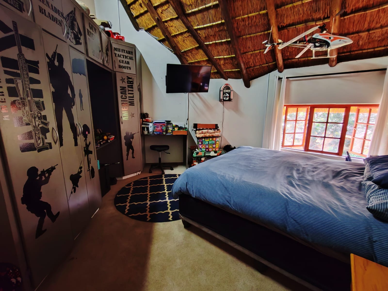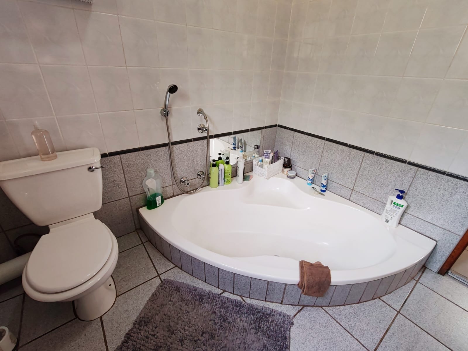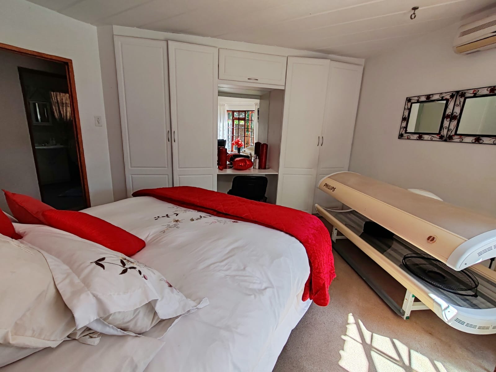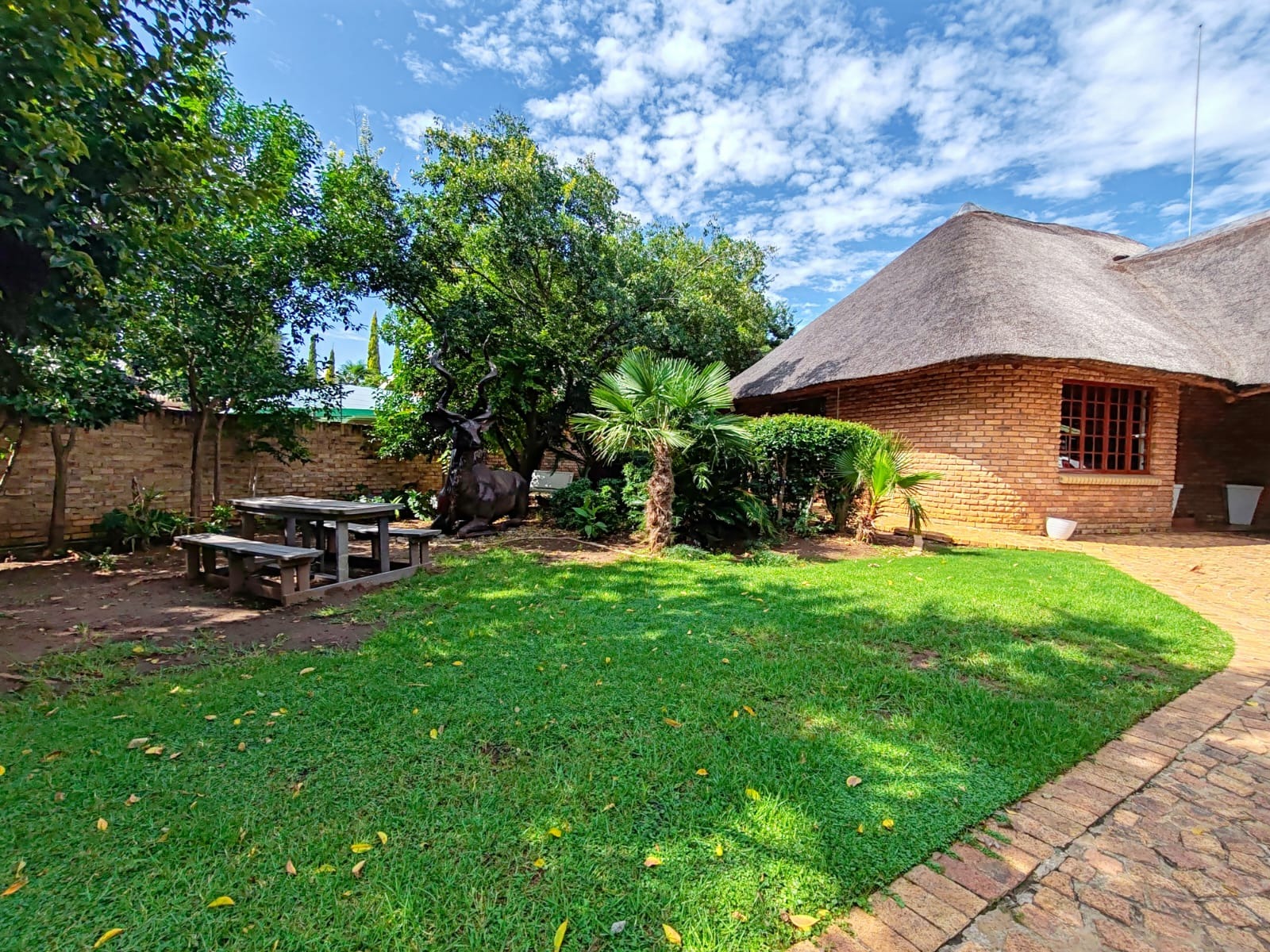 Outside, a world of leisure awaits. Unwind on the spacious patio with a built-in braai, heated swimming pool and take relaxation to the next level in your private jacuzzi. The generous garden, with a borehole-fed irrigation system, ensures lush greenery all year round.