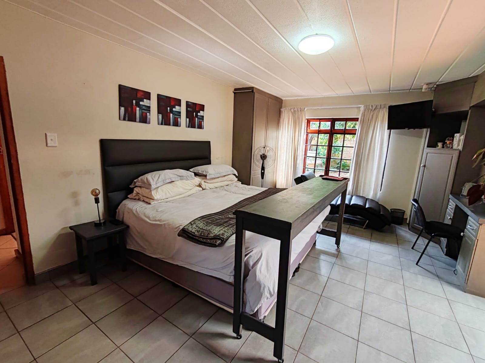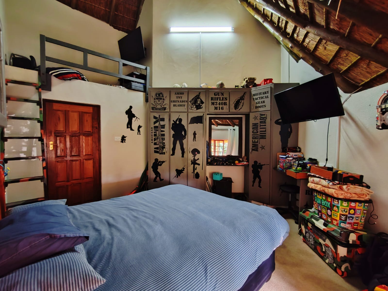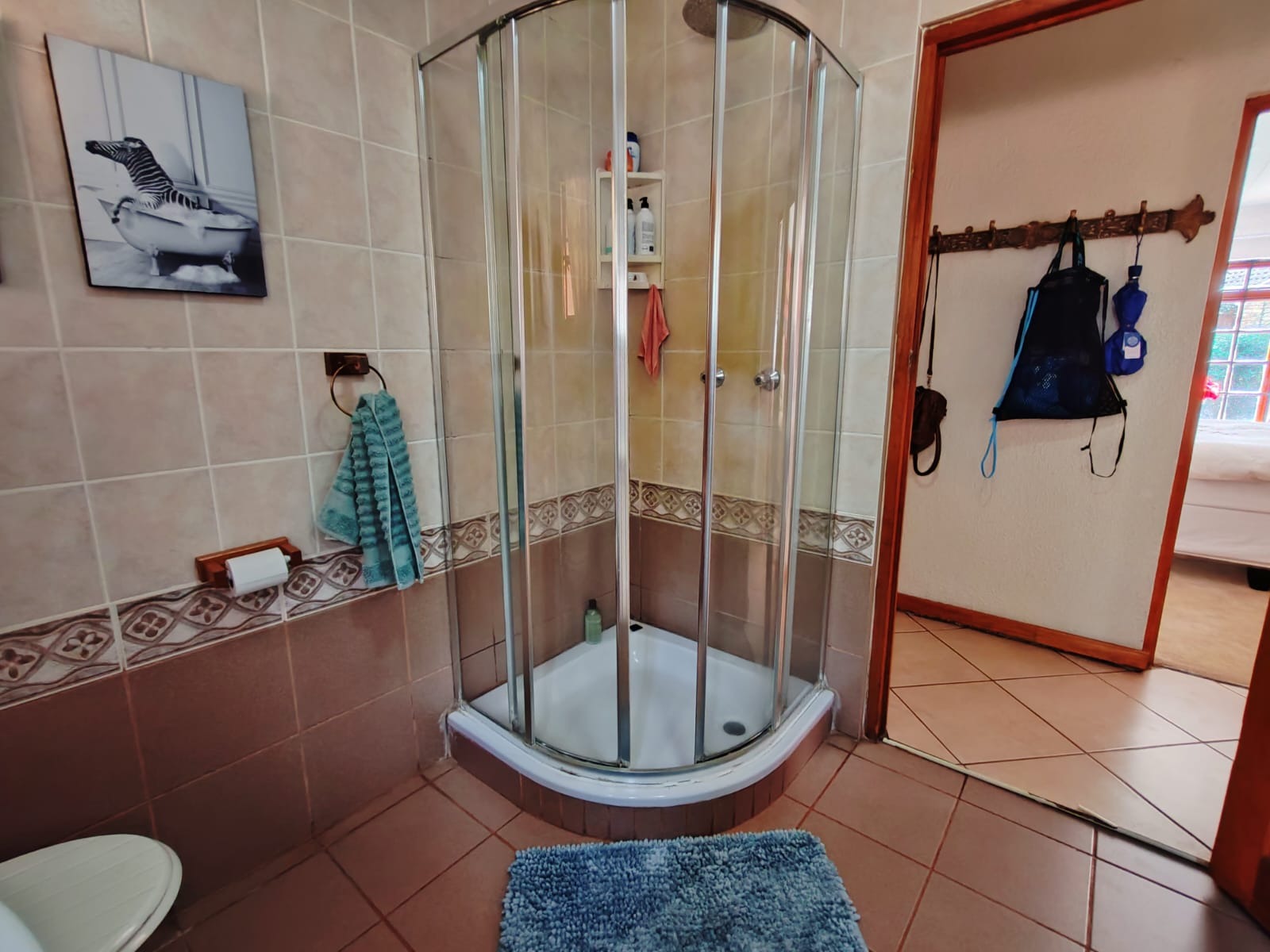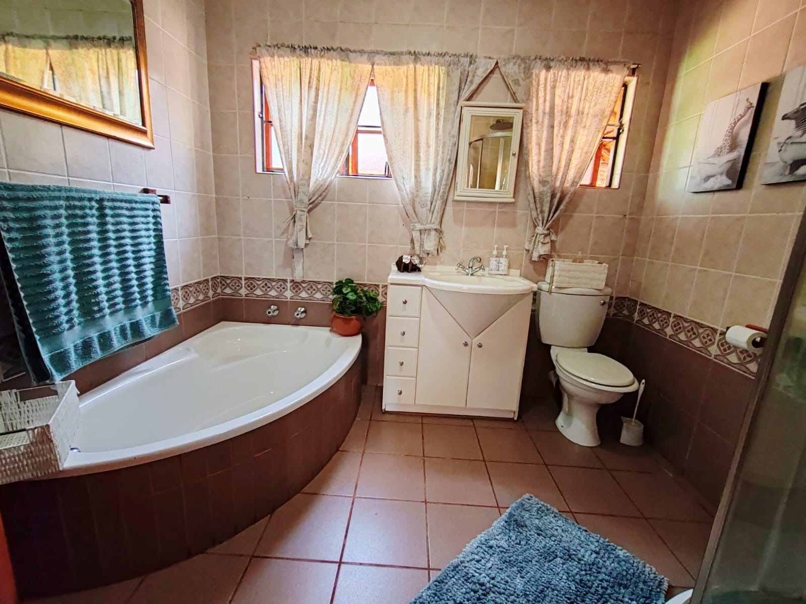 Outside, a world of leisure awaits. Unwind on the spacious patio with a built-in braai, heated swimming pool and take relaxation to the next level in your private jacuzzi. The generous garden, with a borehole-fed irrigation system, ensures lush greenery all year round.