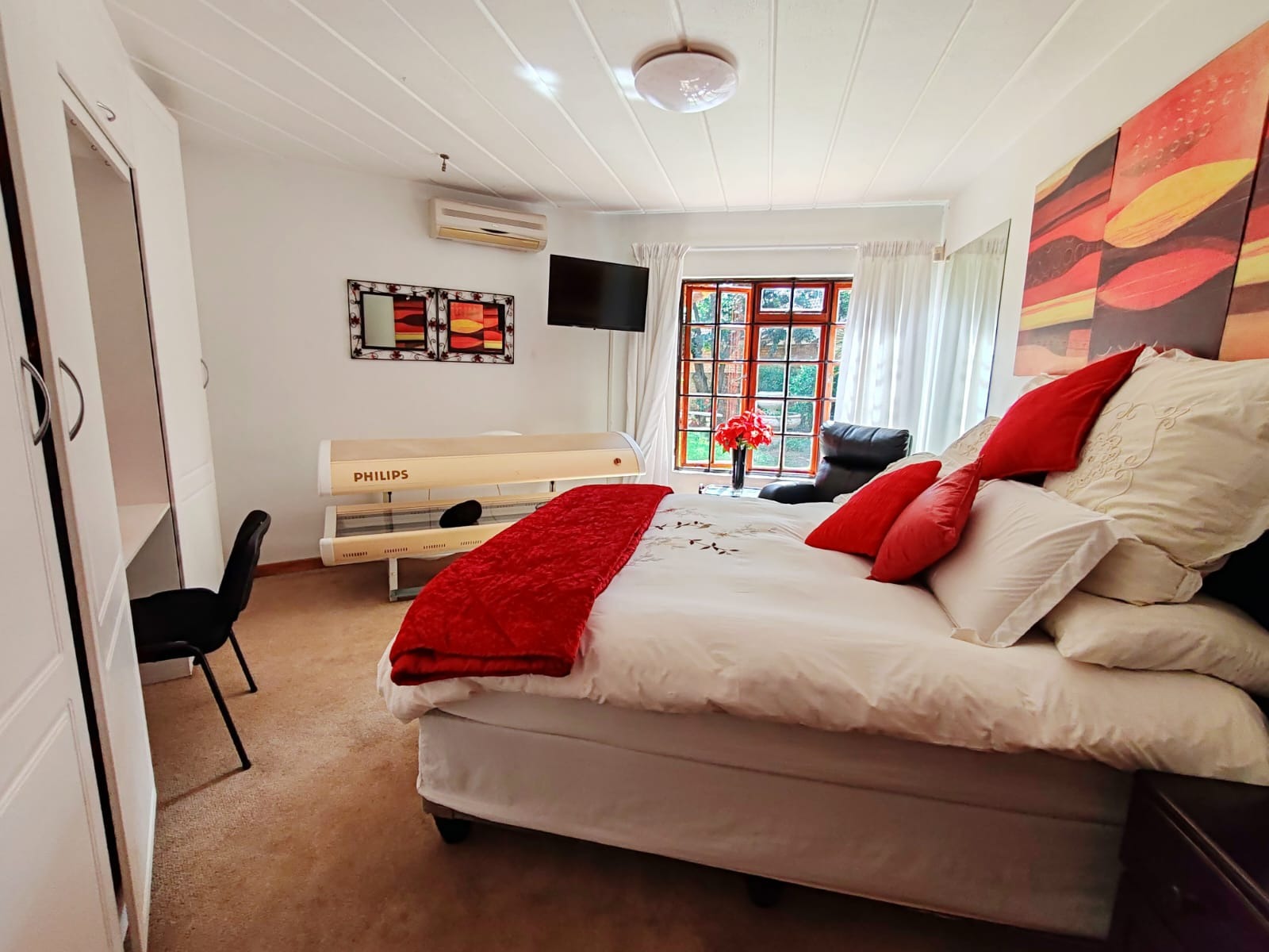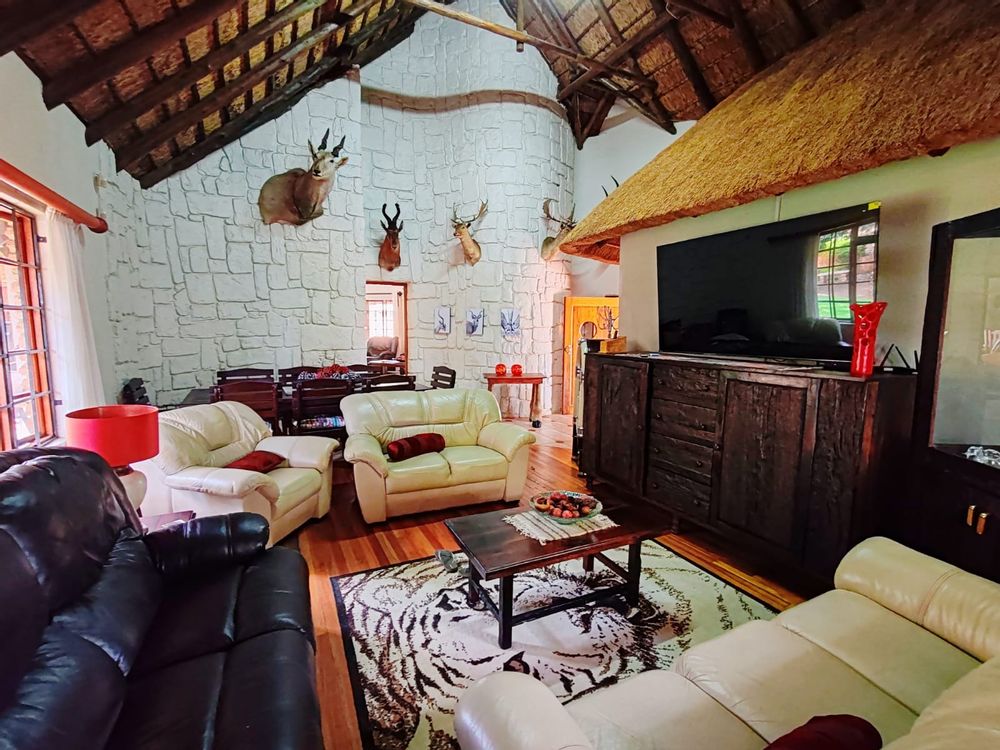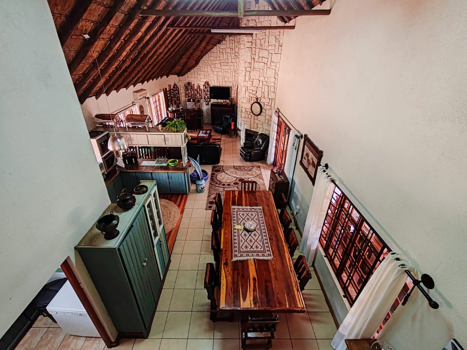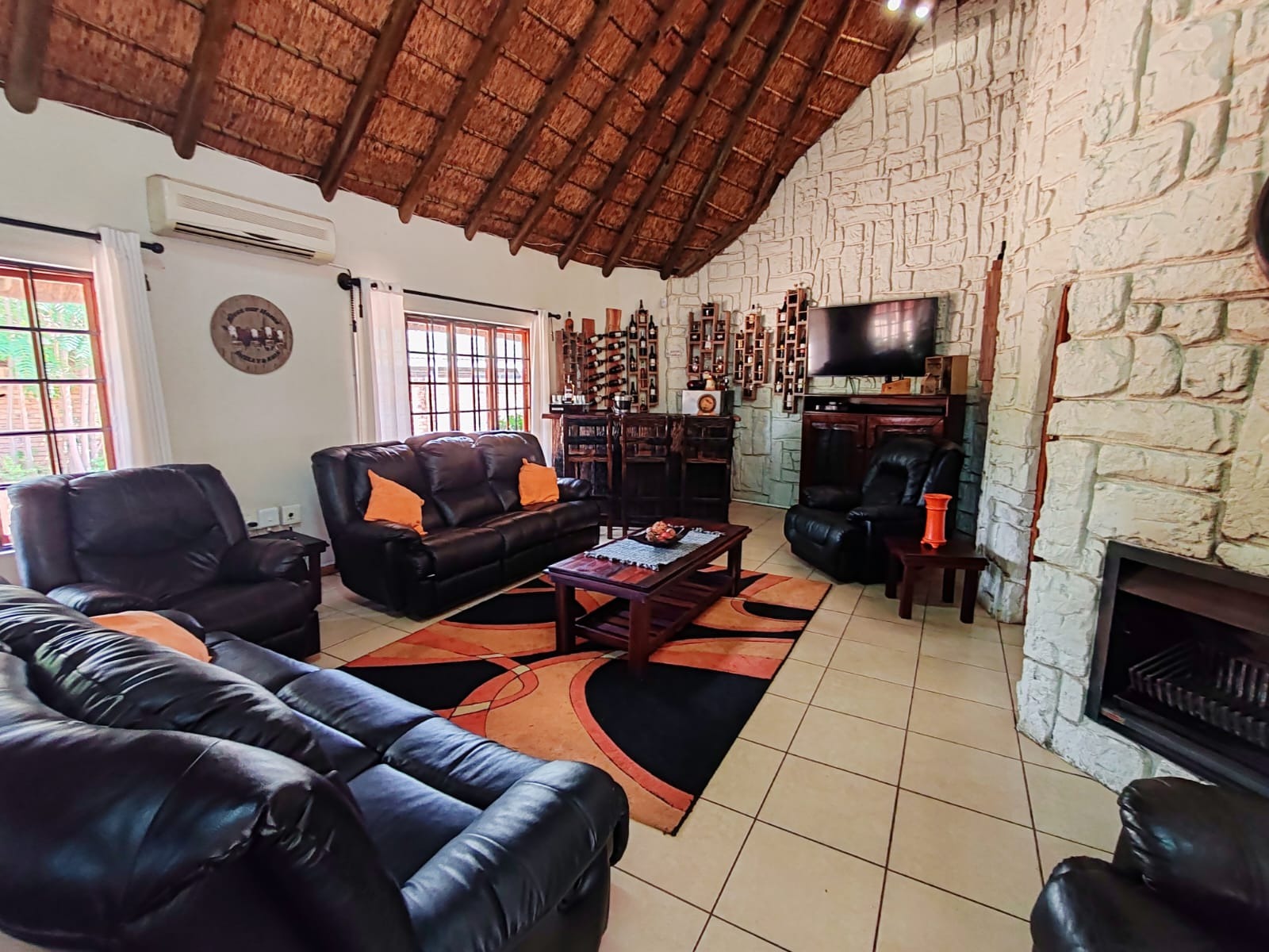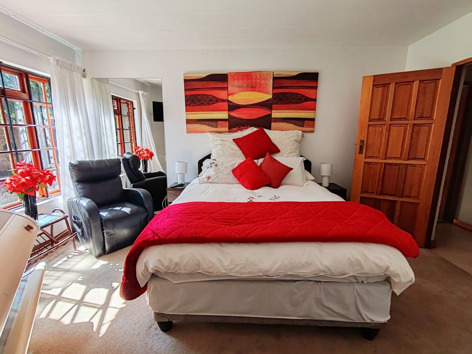 Outside, a world of leisure awaits. Unwind on the spacious patio with a built-in braai, heated swimming pool and take relaxation to the next level in your private jacuzzi. The generous garden, with a borehole-fed irrigation system, ensures lush greenery all year round.