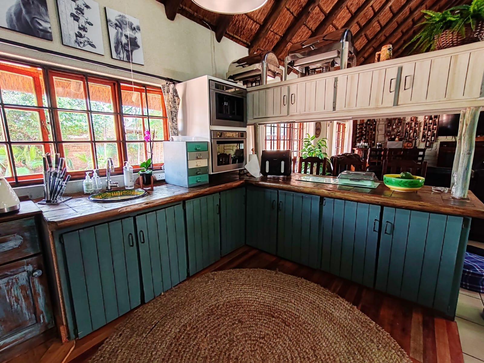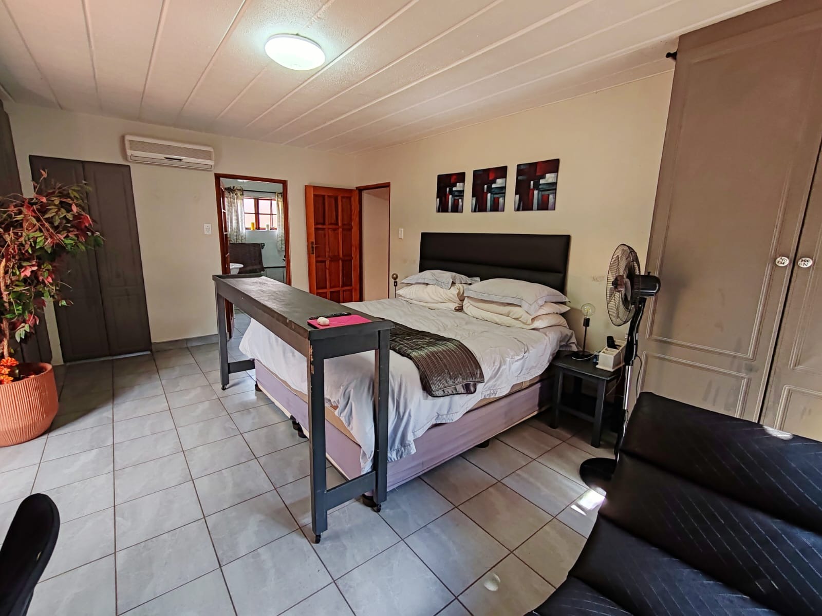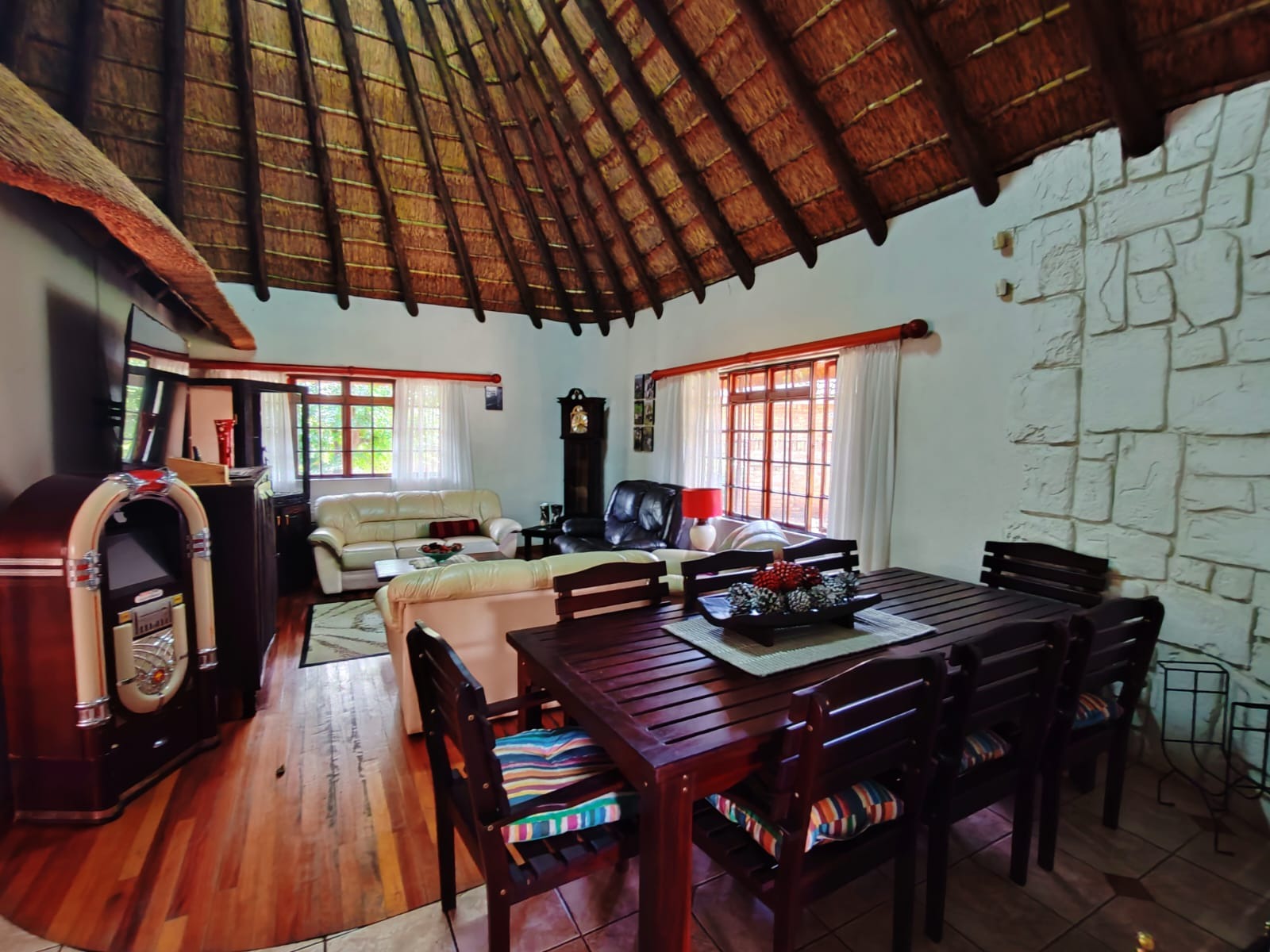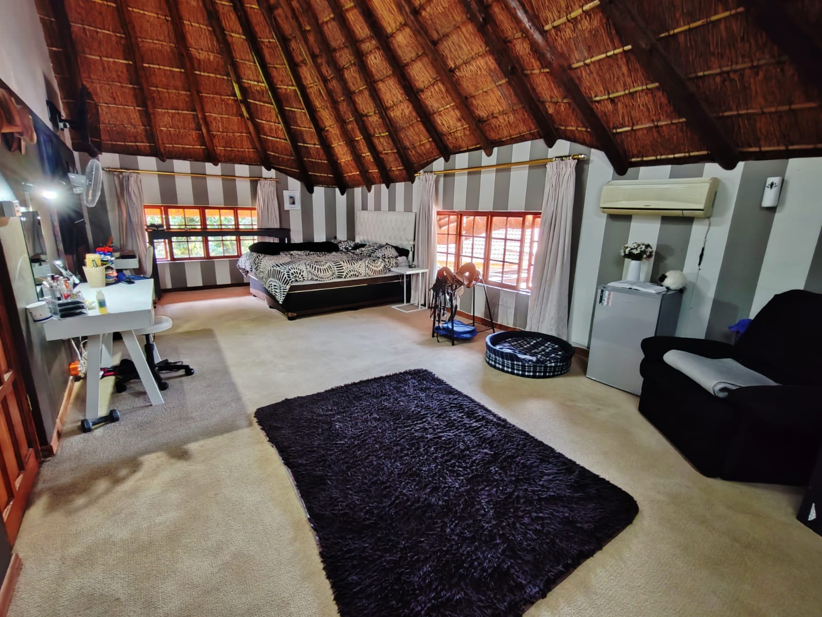 Outside, a world of leisure awaits. Unwind on the spacious patio with a built-in braai, heated swimming pool and take relaxation to the next level in your private jacuzzi. The generous garden, with a borehole-fed irrigation system, ensures lush greenery all year round.