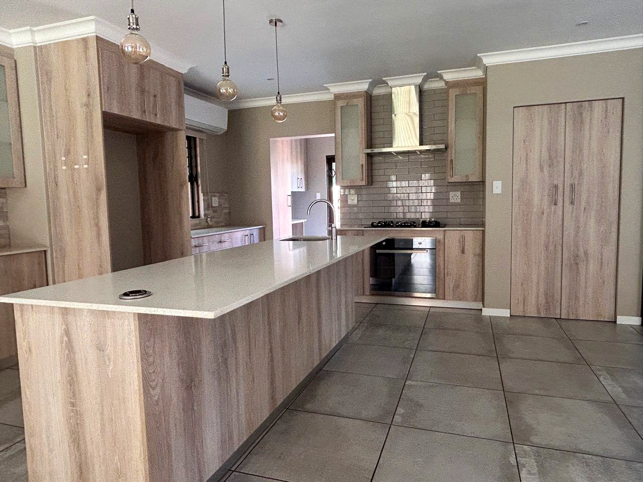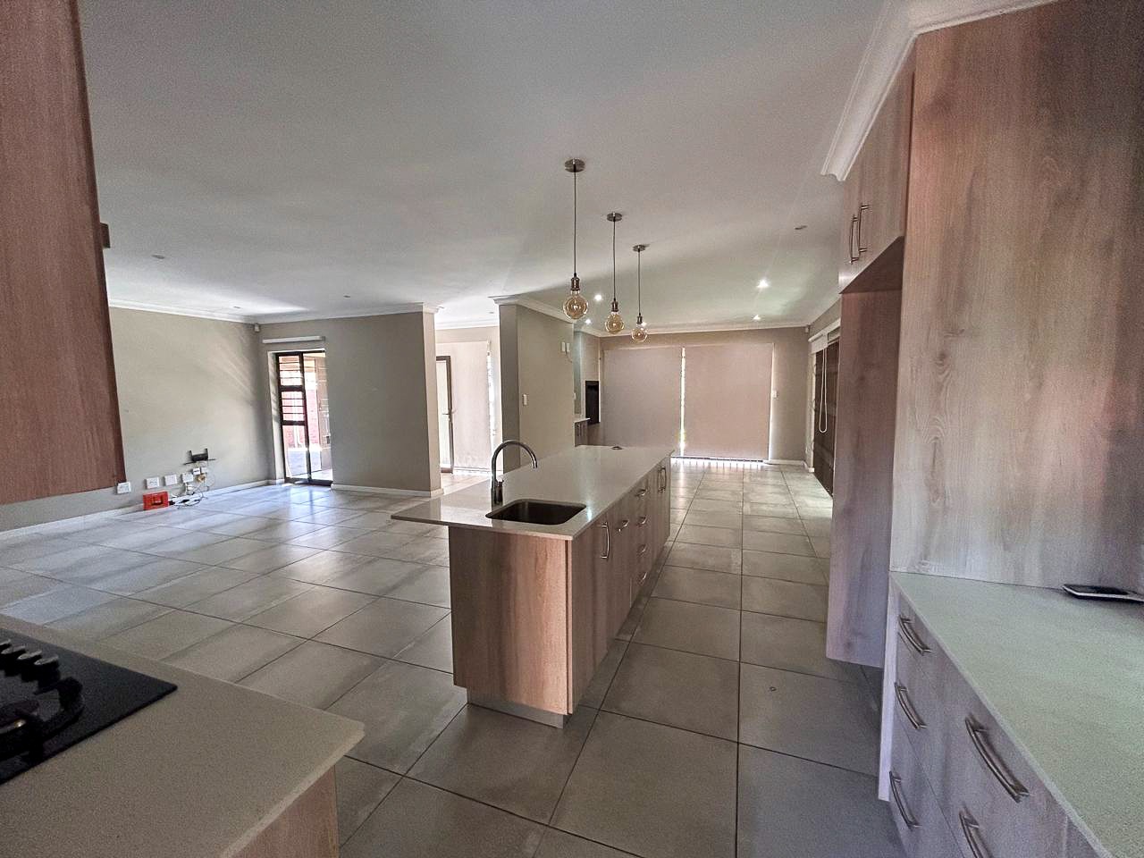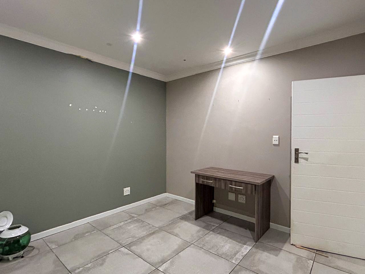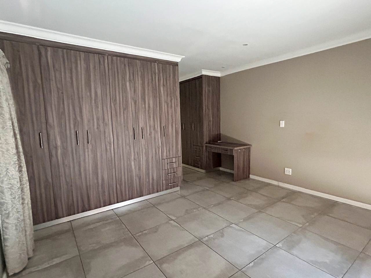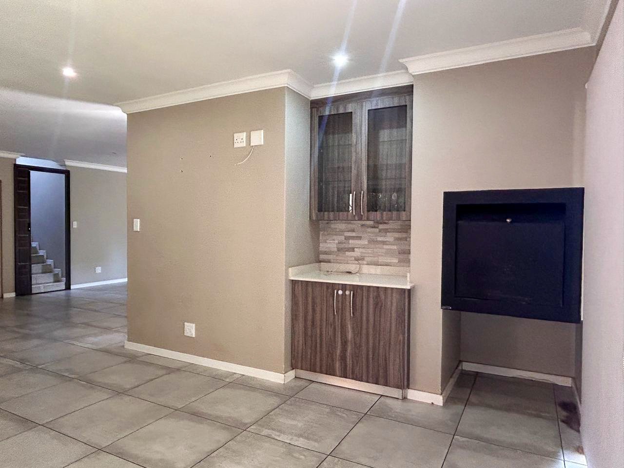 The heart of the home is the contemporary kitchen, fitted with sleek cabinetry, premium countertops, and top-quality appliances, designed to be both functional and visually striking. The open-plan living and dining areas invite natural light to flood the space, creating a warm and welcoming atmosphere ideal for gatherings. A built-in braai enhances the entertainment appeal, while a dedicated study provides a quiet corner for work or relaxation.