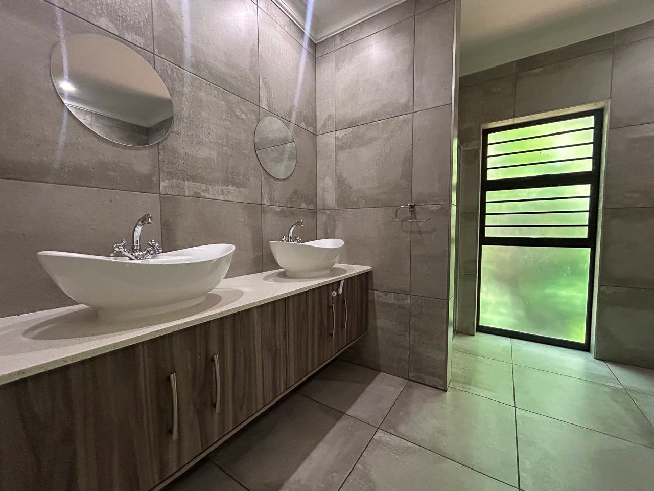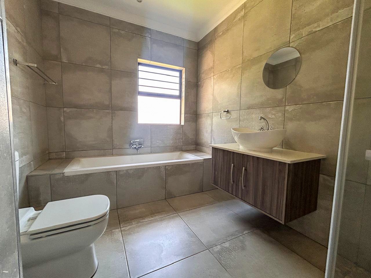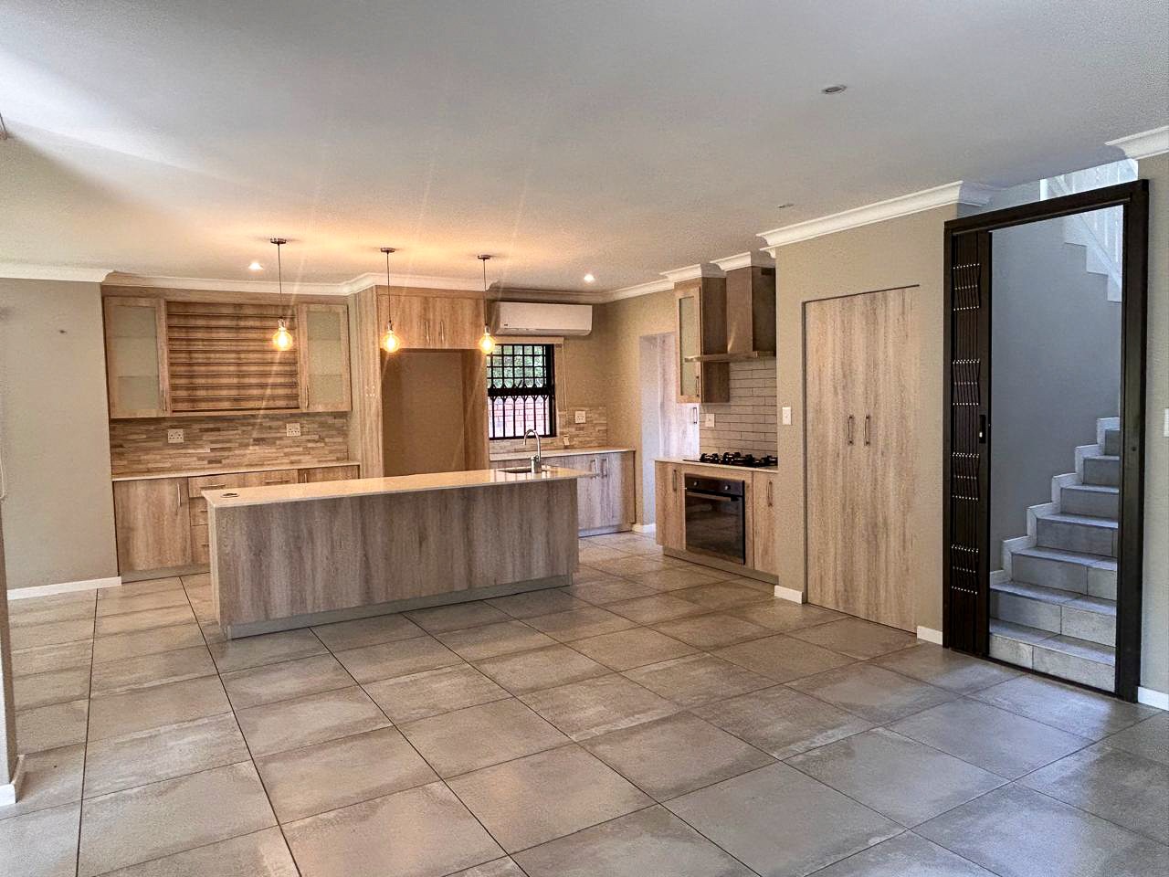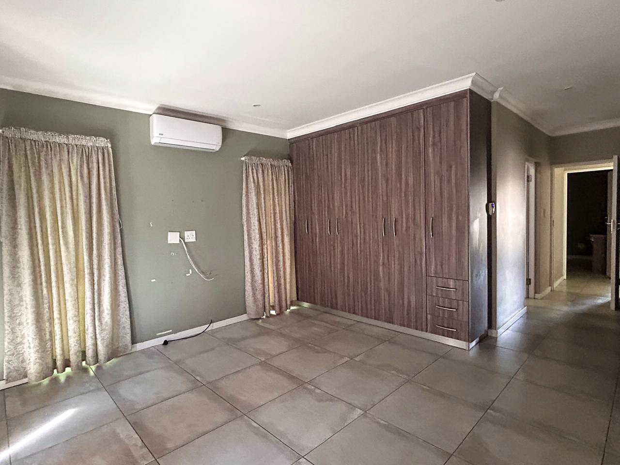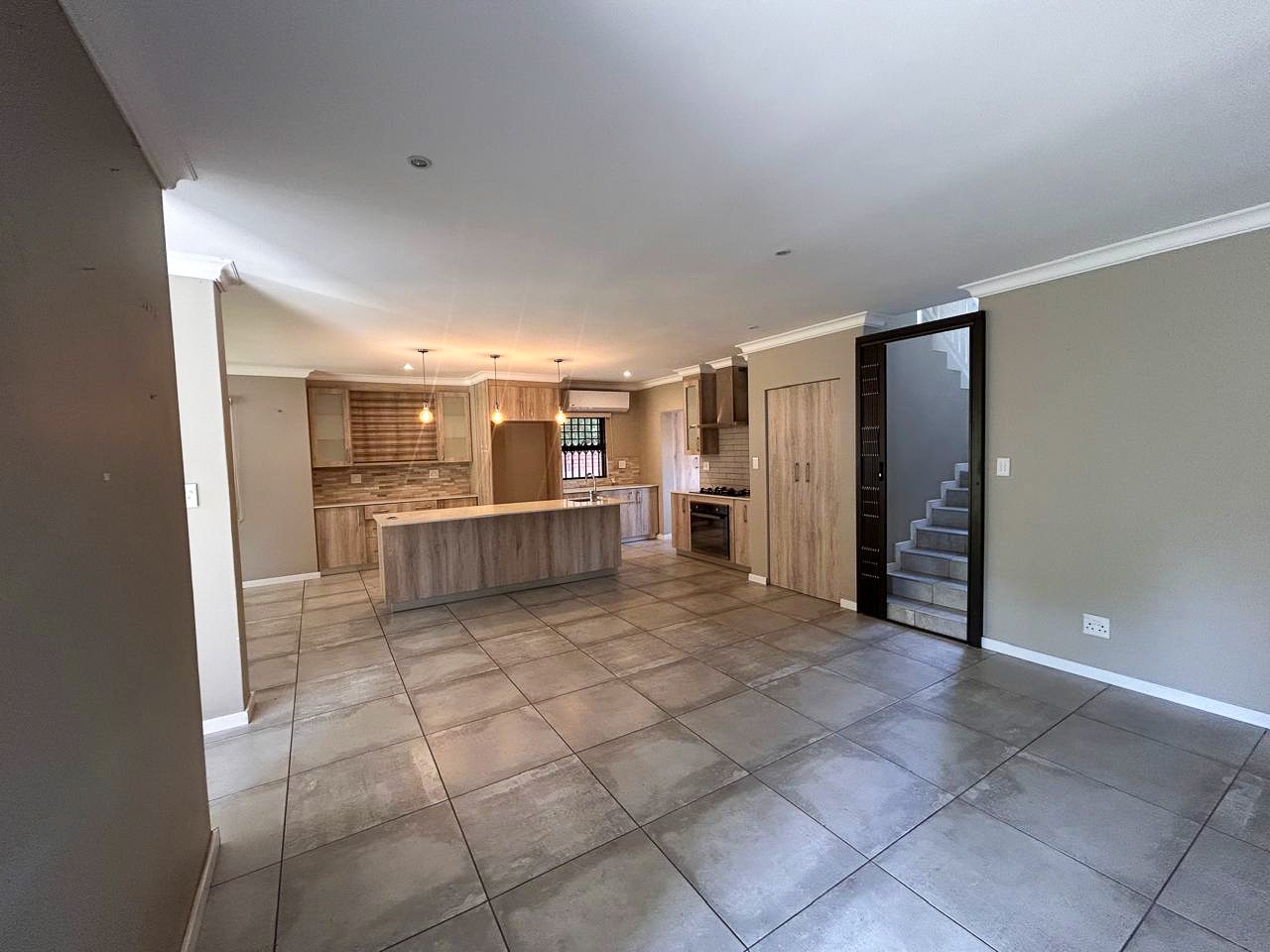The heart of the home is the contemporary kitchen, fitted with sleek cabinetry, premium countertops, and top-quality appliances, designed to be both functional and visually striking. The open-plan living and dining areas invite natural light to flood the space, creating a warm and welcoming atmosphere ideal for gatherings. A built-in braai enhances the entertainment appeal, while a dedicated study provides a quiet corner for work or relaxation.