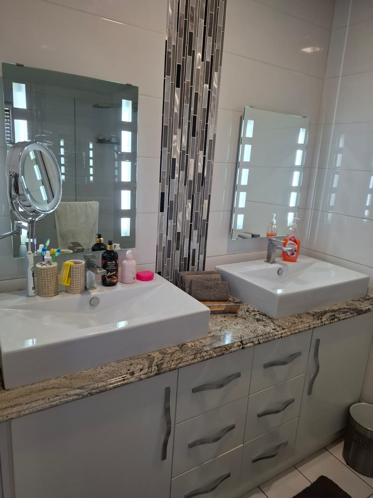 Car enthusiasts or large families will appreciate the double-volume garages that comfortably accommodate up to 8 vehicles. Outdoor living is a dream with a large swimming pool, established landscaped garden, a Lapa featuring a granite top and built-in seating, pergola, and two additional outdoor seating areas for year-round entertainment.
