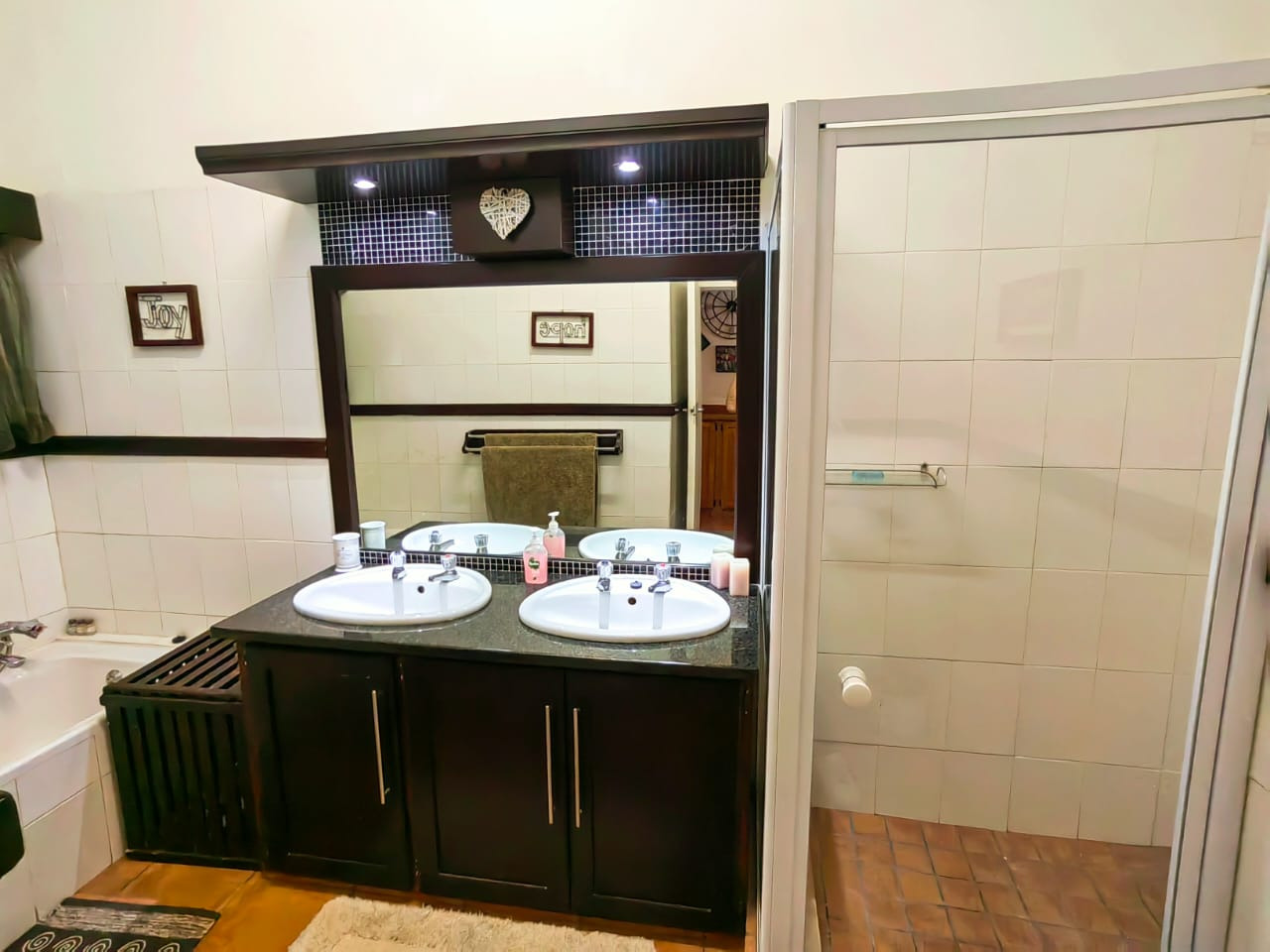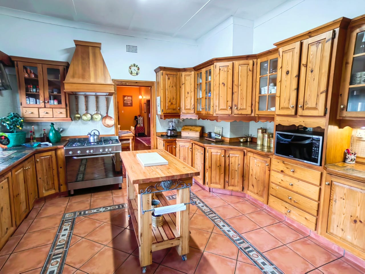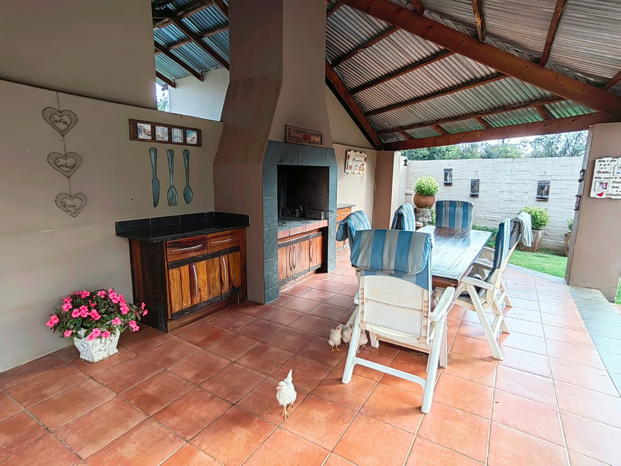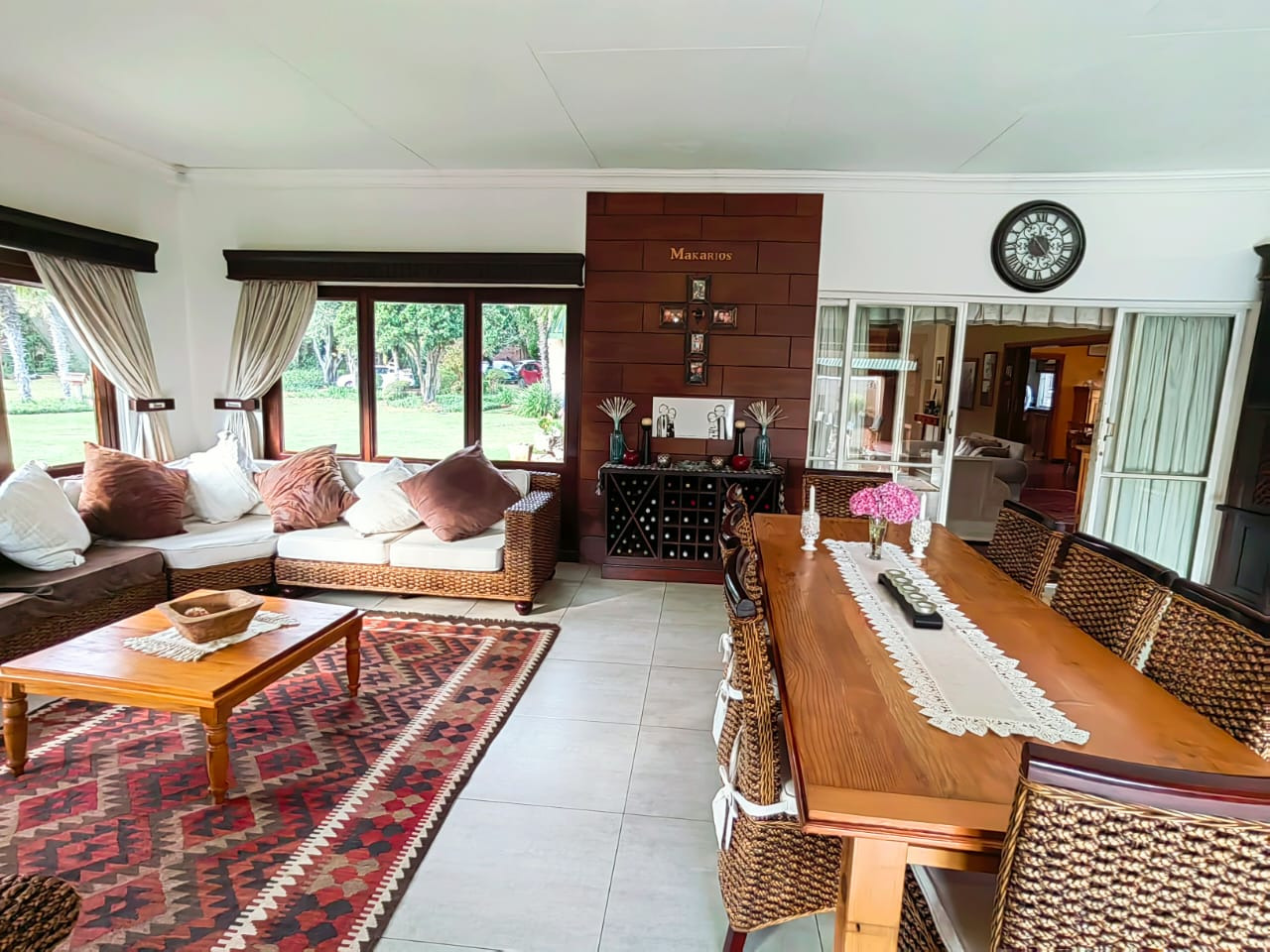 The house offers 5 spacious bedrooms, 3 bathrooms, dining room, 2 living rooms, a family room, a kitchen with a separate scullery, spacious braai area overlooking the swimming pool. 2 Garages, 2 carports, staff quarters, storage room and a massive warehouse.