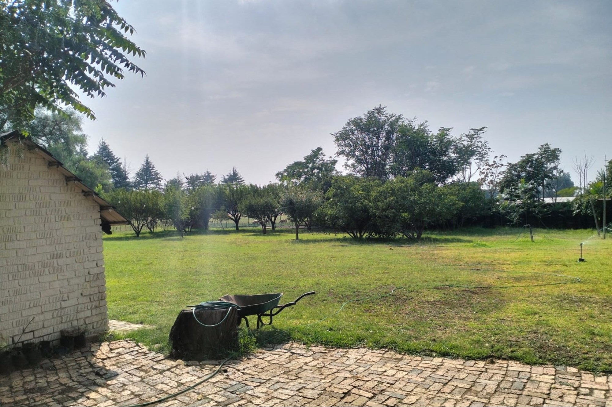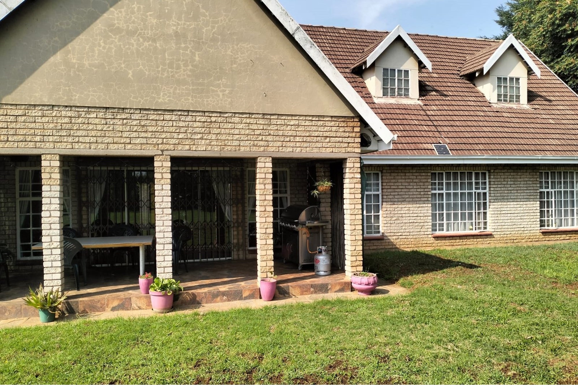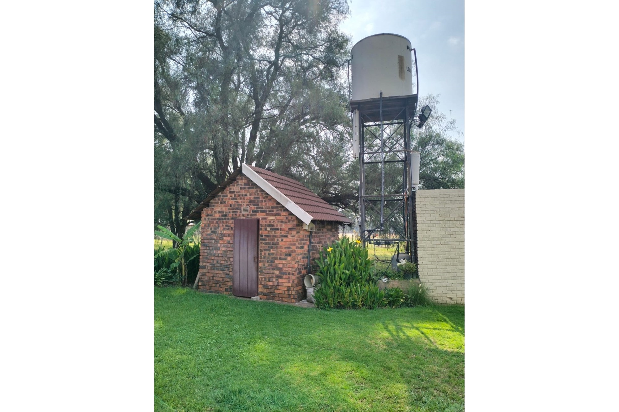Well maintained 2.2 ha plot with 5 spacious bedrooms, 2 bathrooms, gas geyser, solar backup lights in the rooms.