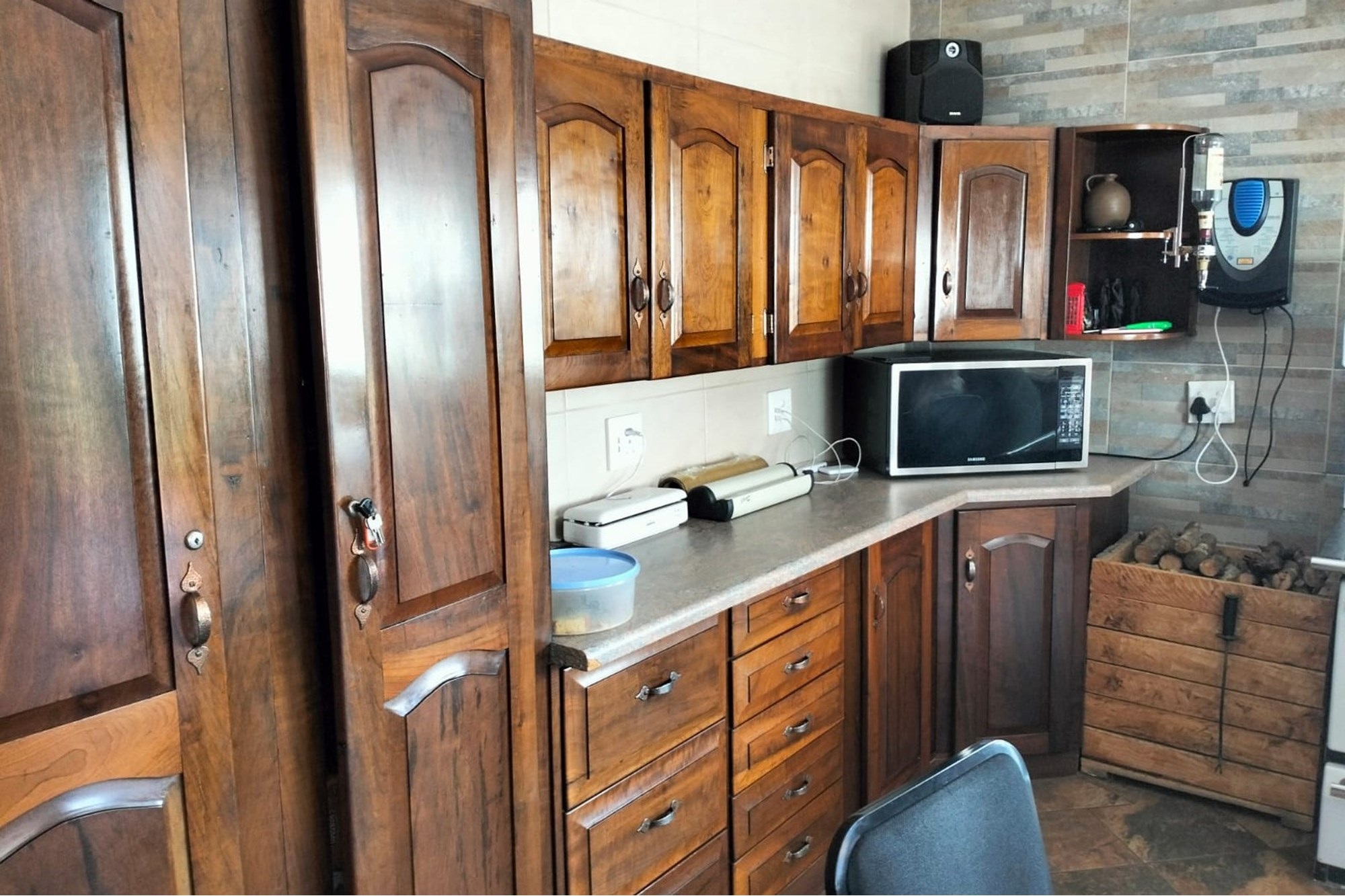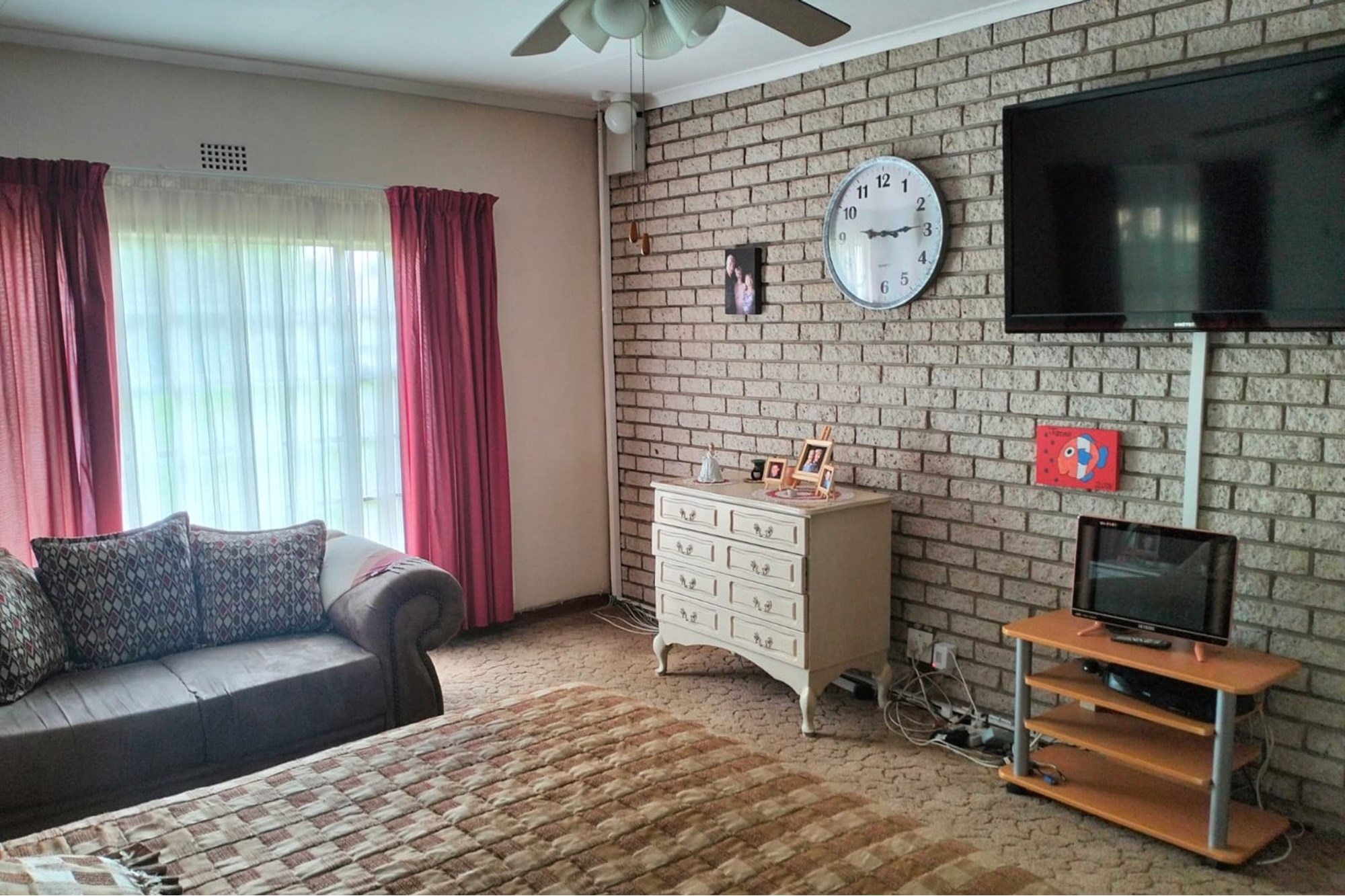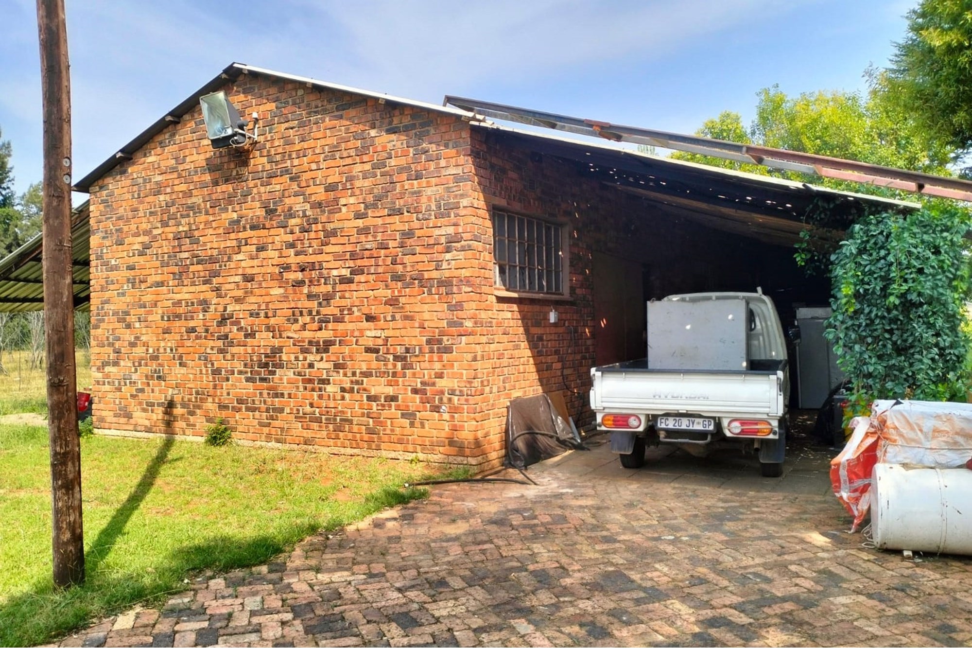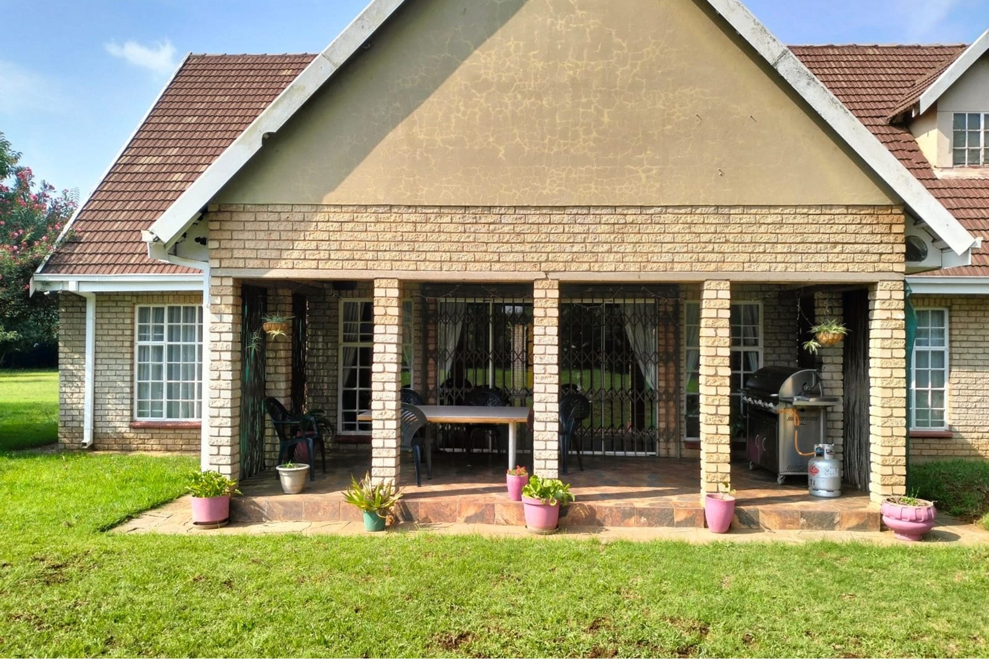 Well maintained 2.2 ha plot with 5 spacious bedrooms, 2 bathrooms, gas geyser, solar backup lights in the rooms.