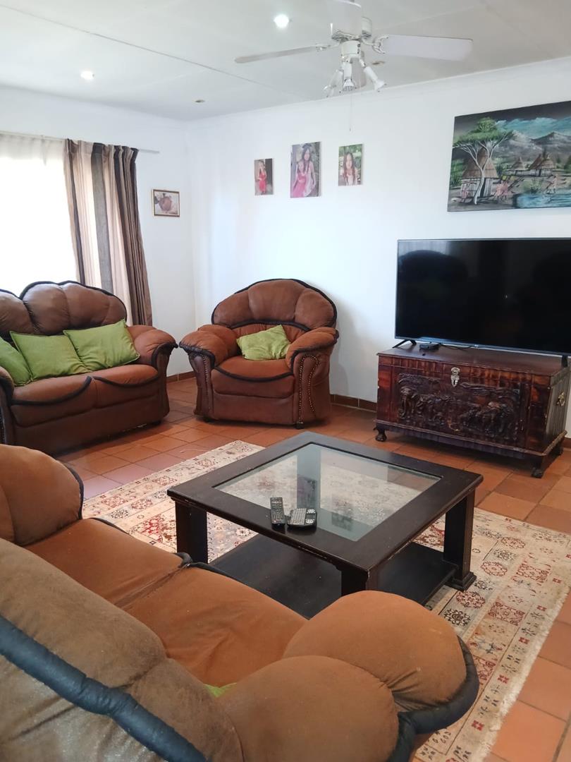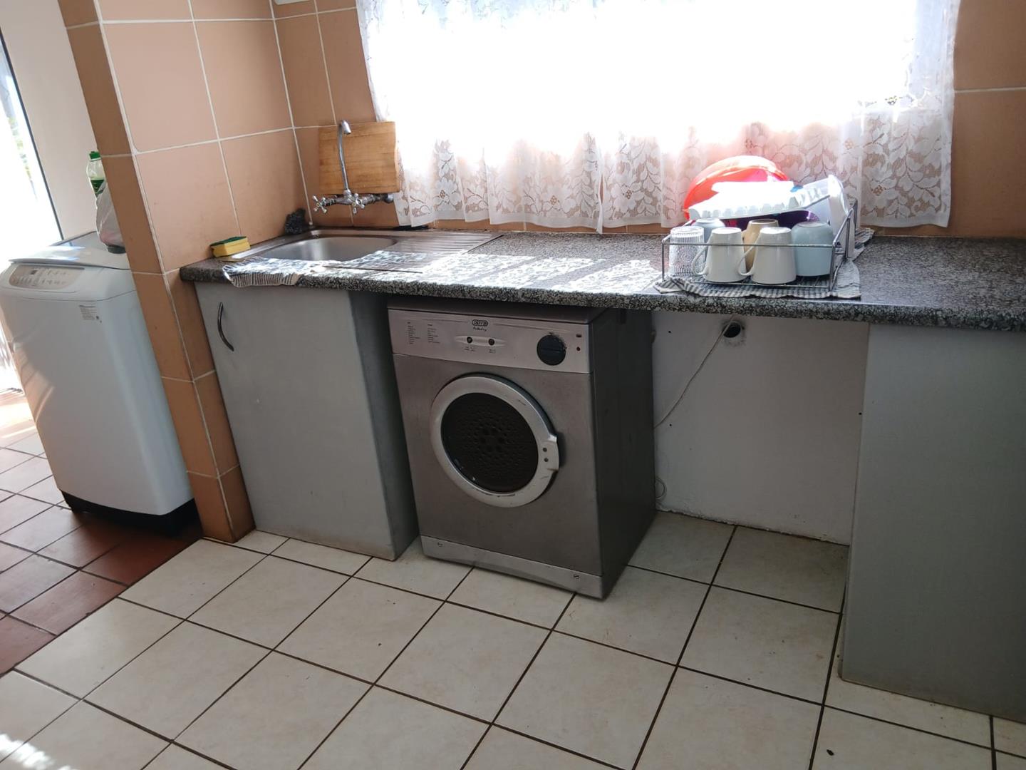 The well-appointed kitchen is designed with plenty of cupboard space for storage and appliances, making meal preparation a breeze. Tiled flooring throughout the house ensures easy maintenance and a clean aesthetic.