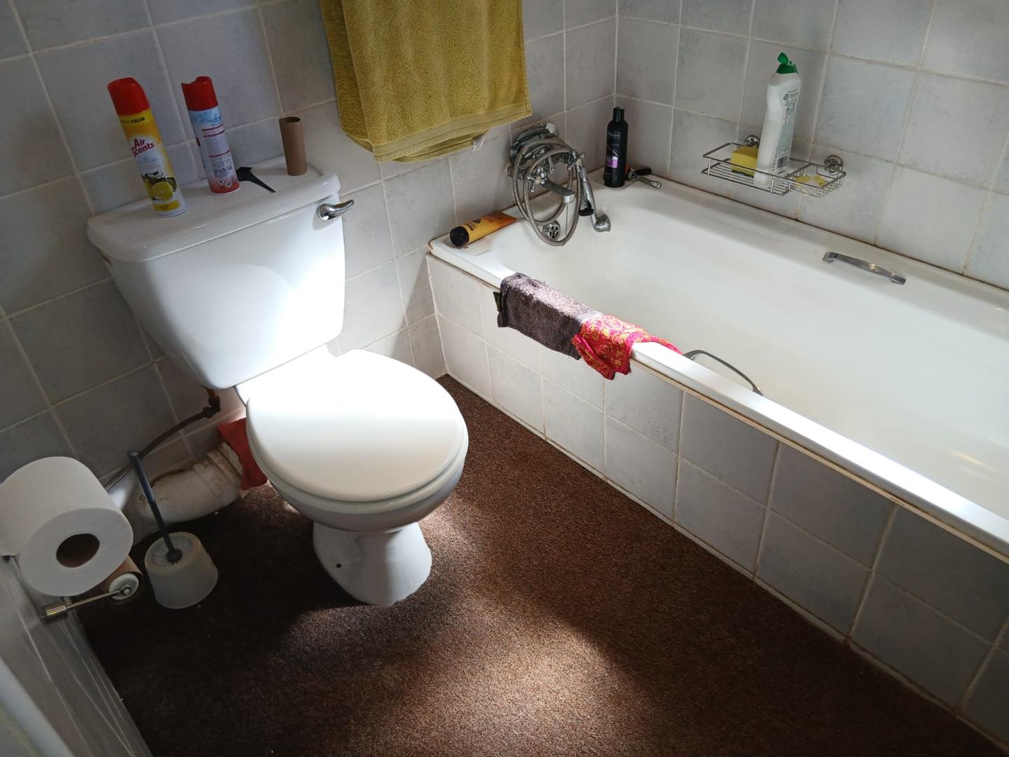 The home includes a full bathroom complete with a bathtub, shower, toilet, and basin, as well as a second bathroom with a separate toilet, ensuring convenience for a busy household. The generous living areas comprising a dining room and a lounge with a cozy fireplace offer ample space for relaxation and entertaining.