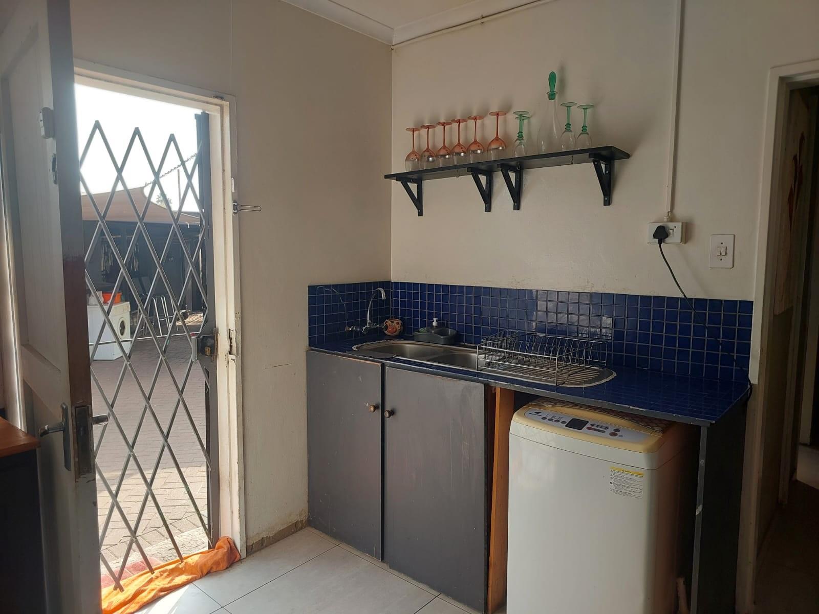 In the back garden, the previously single garage has been transformed into a gym room, which can easily be converted into a flatlet by connecting it to the outside toilet and storeroom. Adjacent to the gym room is a covered paved area, currently used as a patio for entertaining guests, but could also serve as additional covered parking.