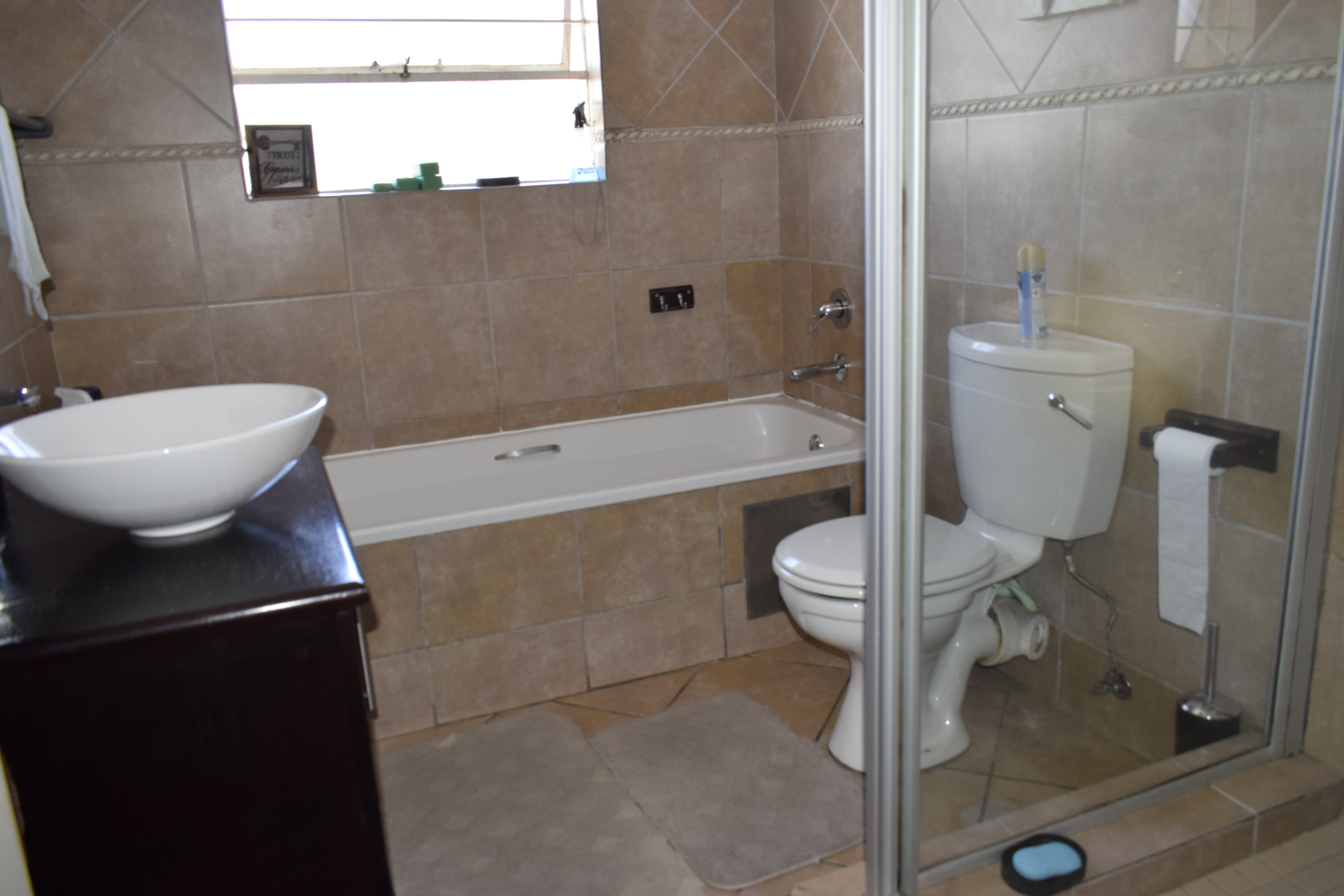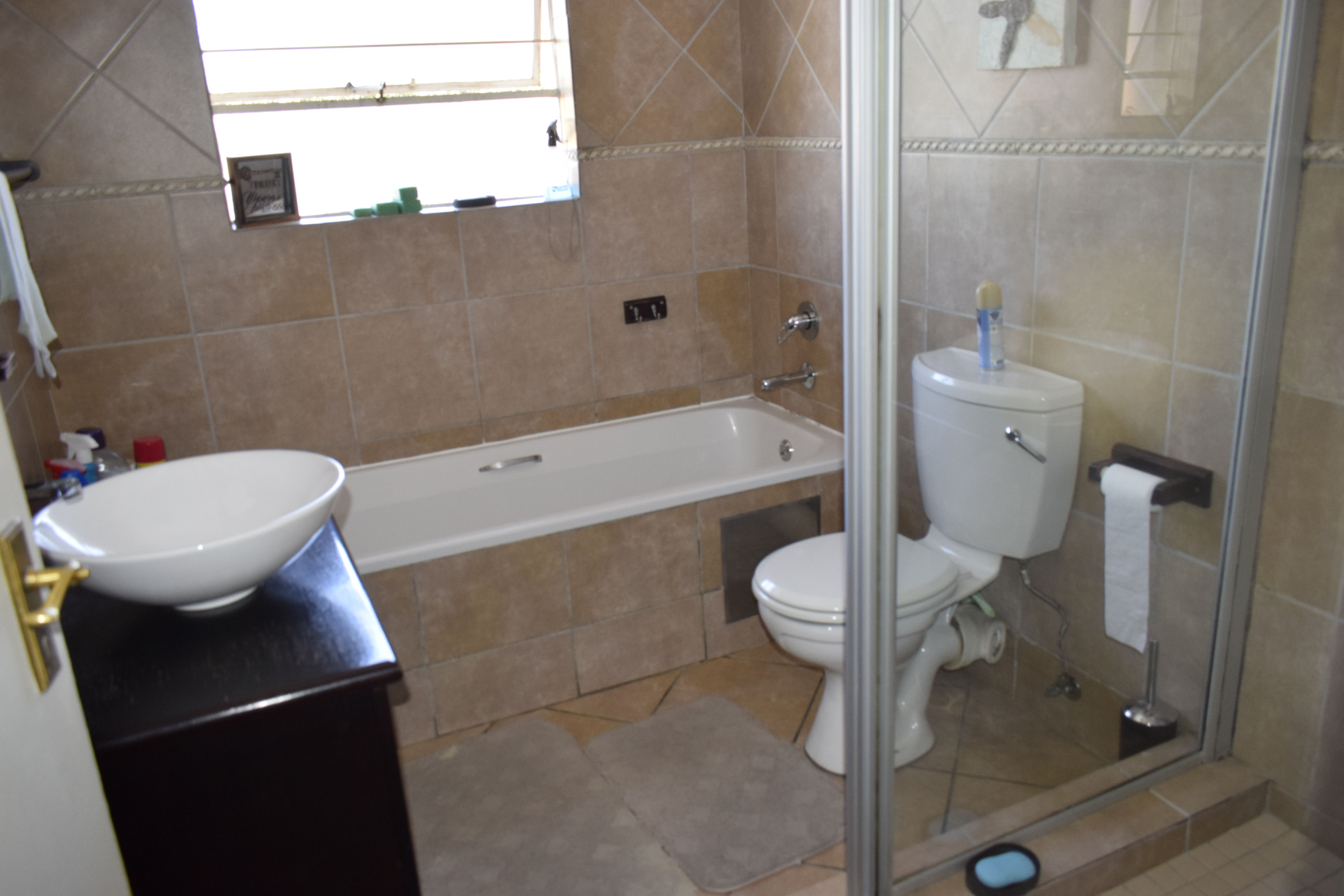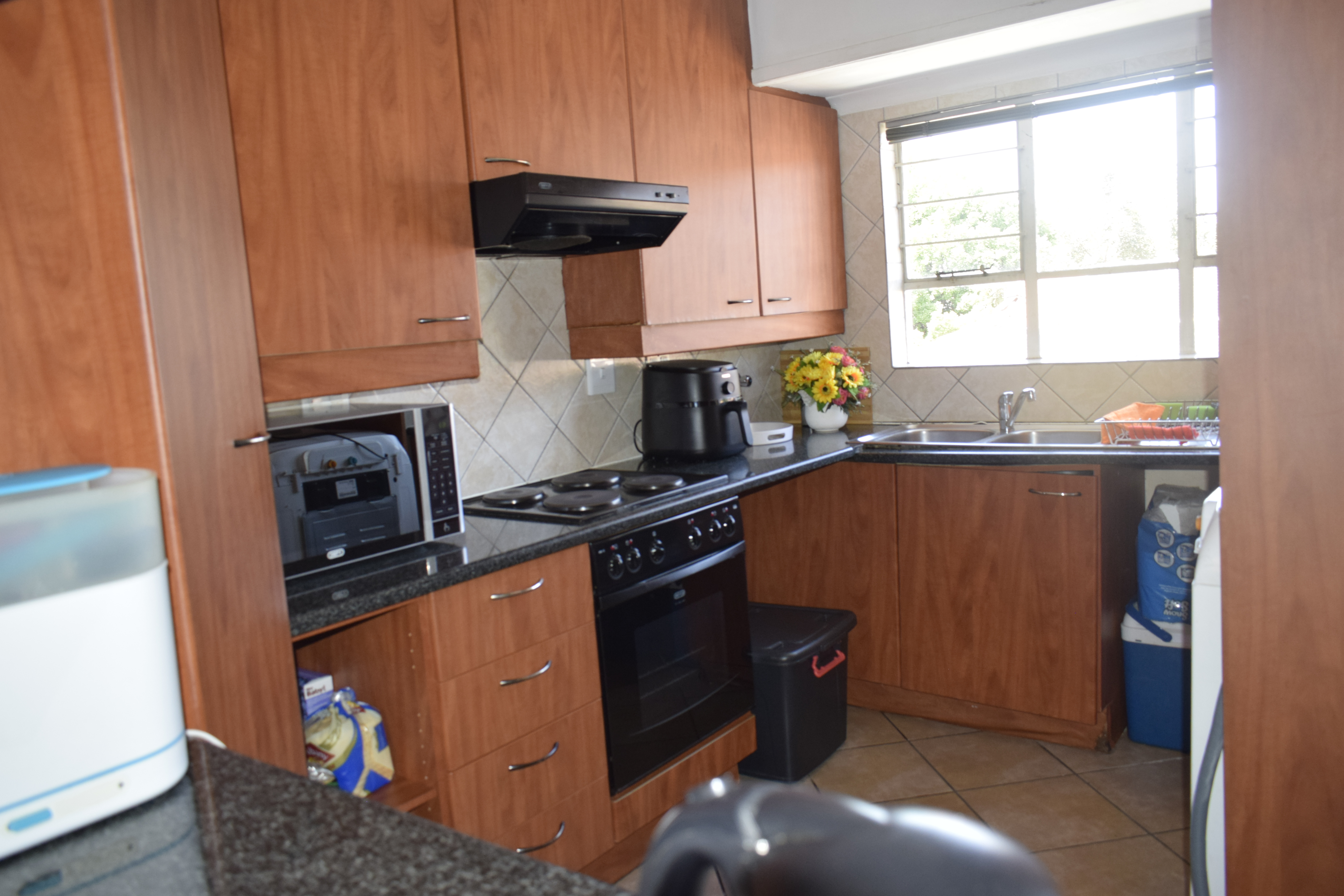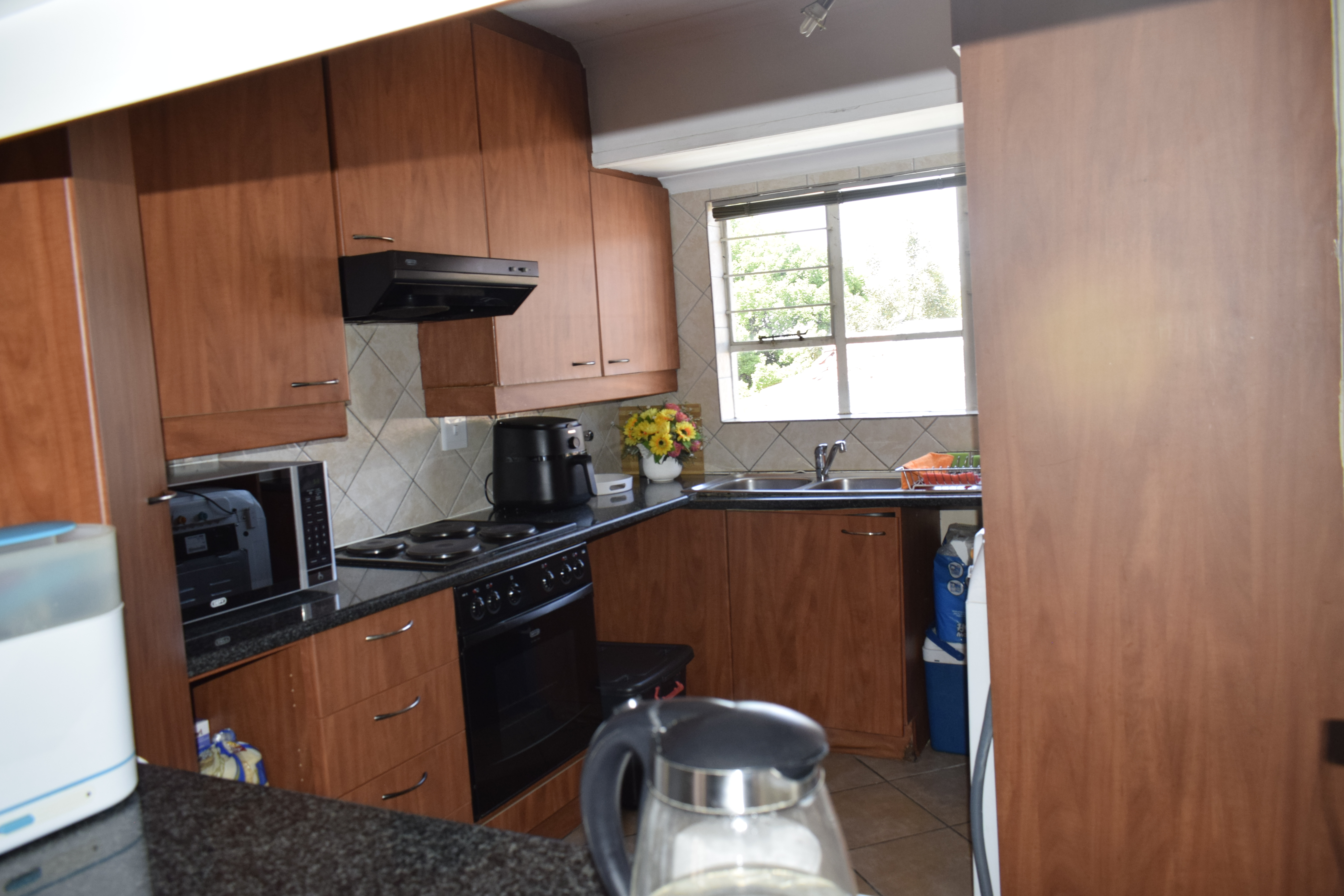 Patio is enclosed with build-in braai with extra cupboards